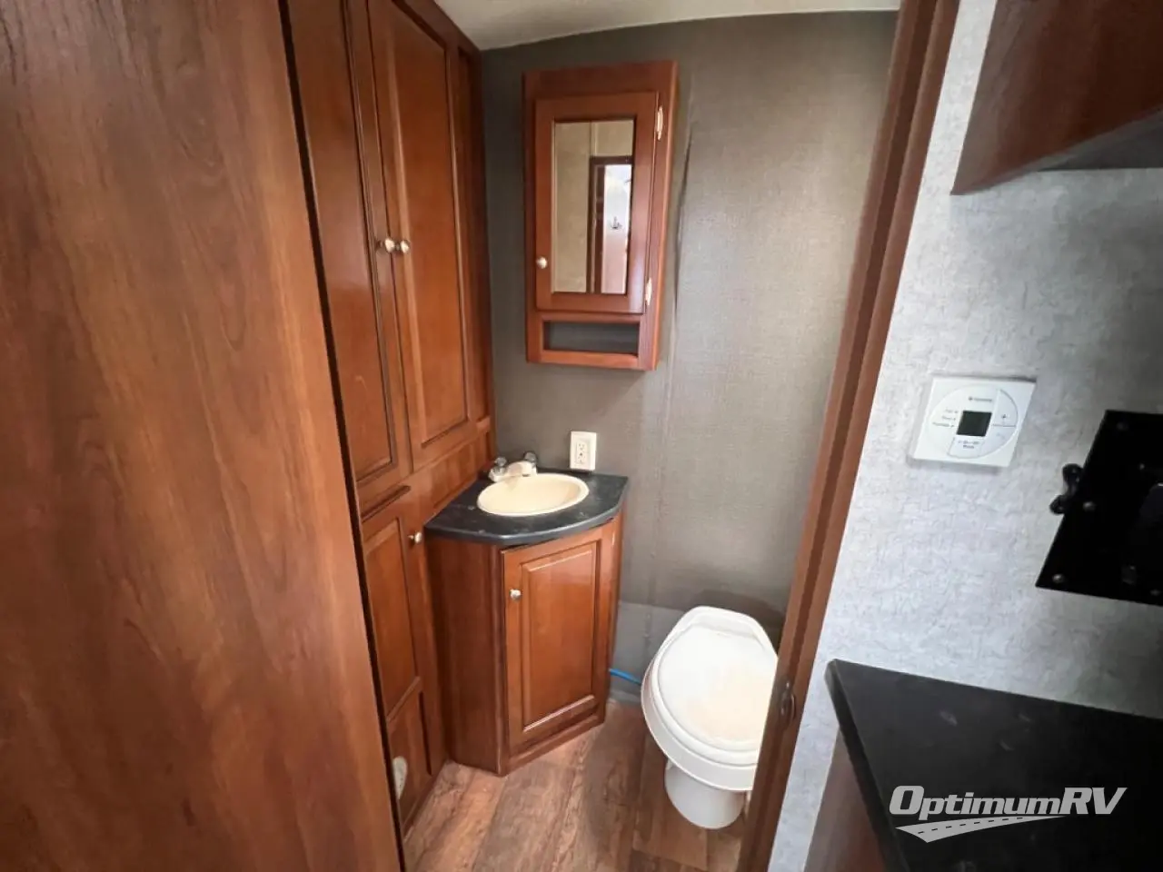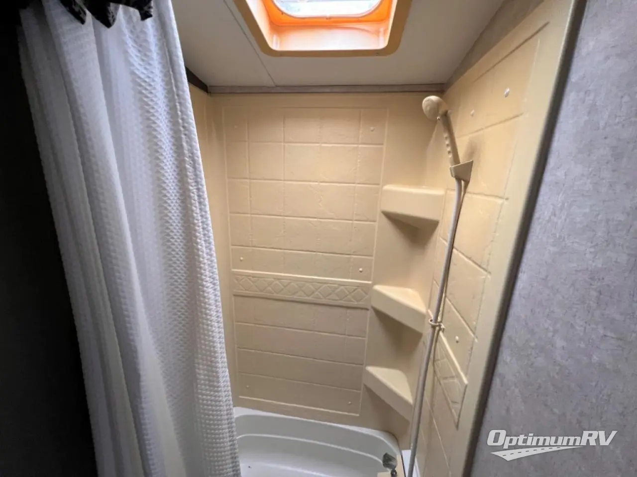 The rear features a bathroom with large wardrobe for storage. There is a tub/shower, toilet, sink, and so much more!