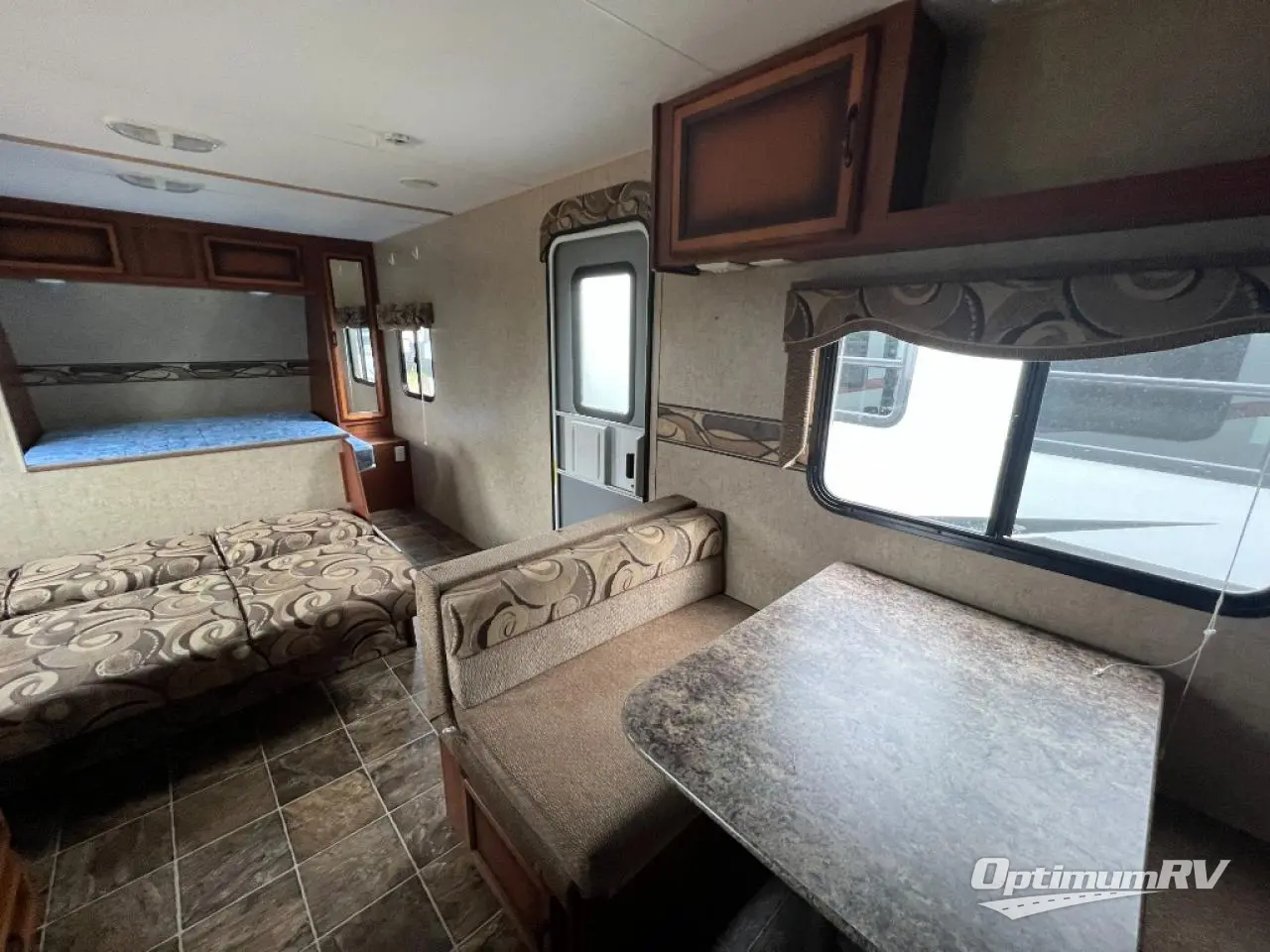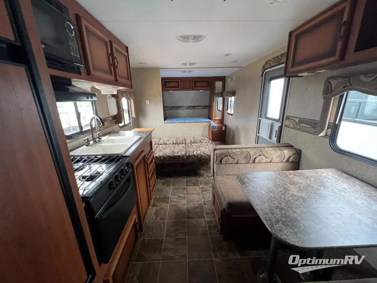 Sportsmen Travel Trailer, Rear Double Bed w/Bunk Above, Tub, Toilet, Lav., 3 Burner Range, Micro., Double Kitchen Sink, Refrig., Booth Dinette, Jiffy Sofa, Front Queen Bed w/Dbl. Ward., Pass Thru Storage, Rear Ext. Storage, 15' Awning & More. Available Options May Include: Twin Beds.