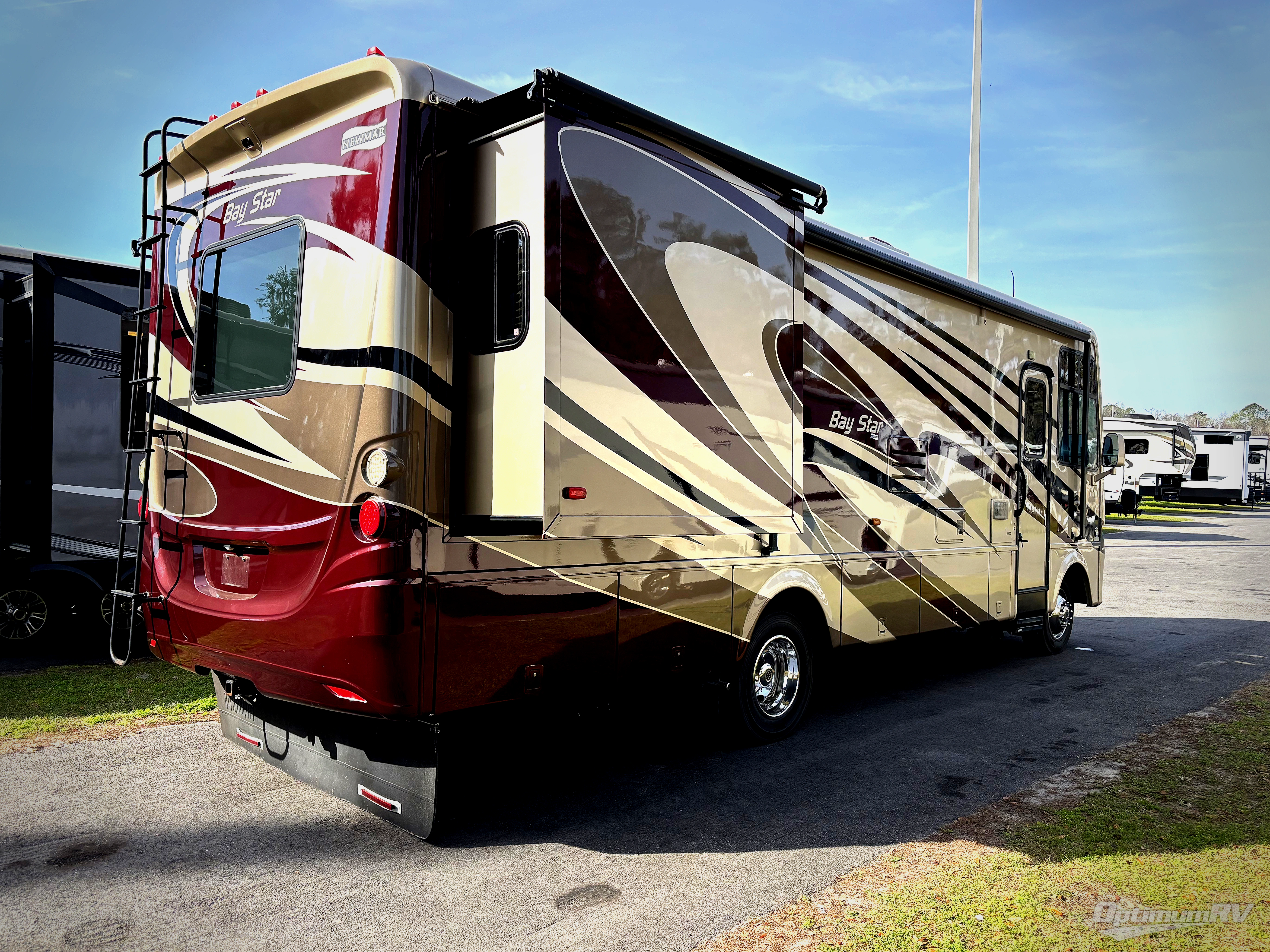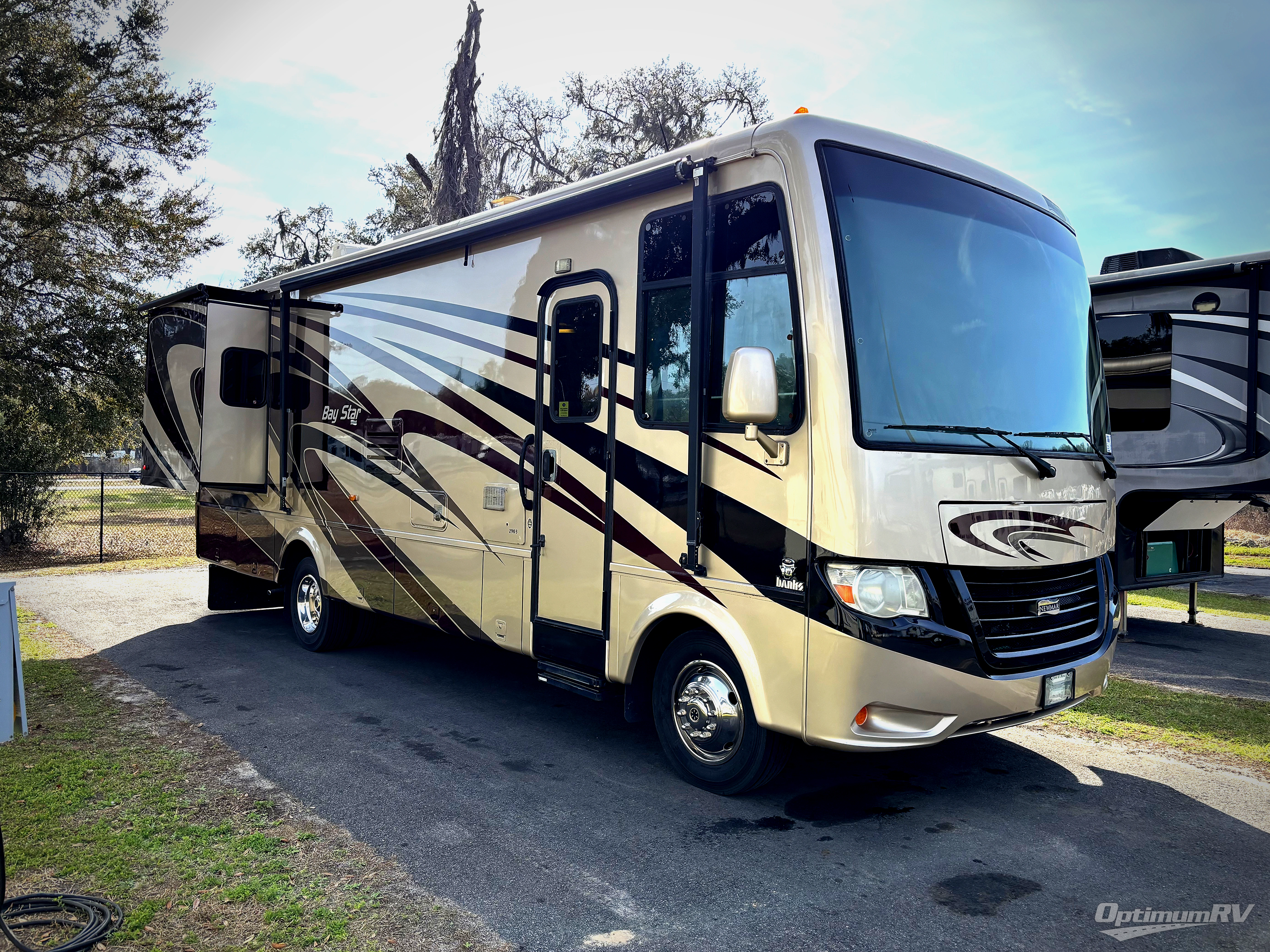 The Bay Star 2903 motor home by Newmar offers a full wall slide and an additional slide in the bedroom.
