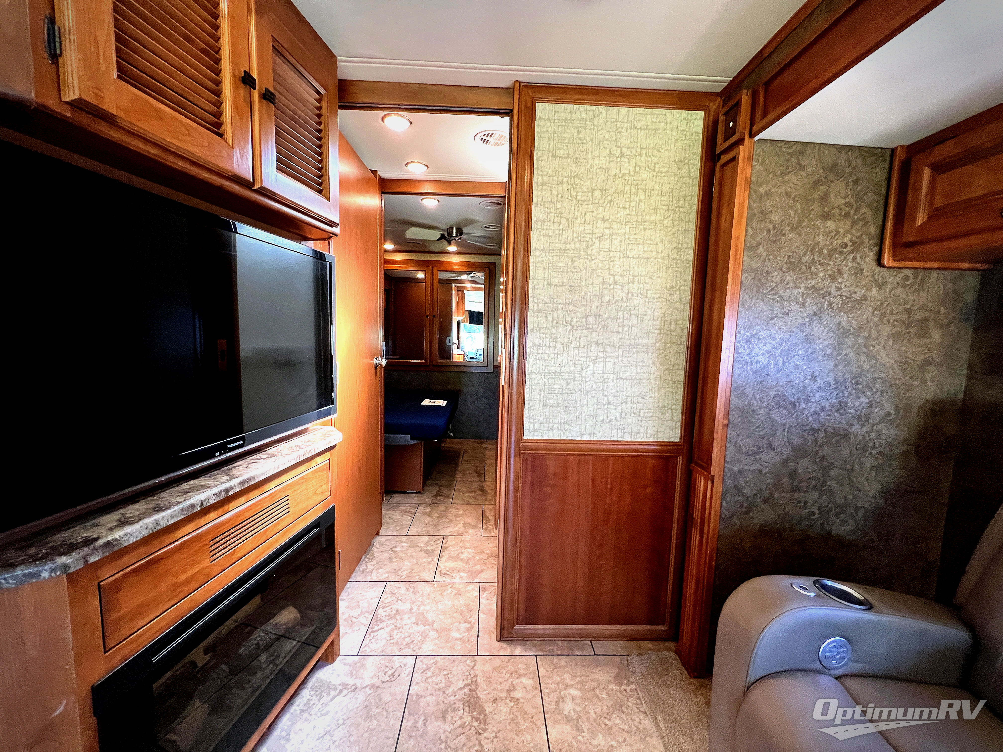 As you enter the coach, the front includes two captain's chairs, overhead cabinets at each side, an optional TV at the center front and an optional driver side door.