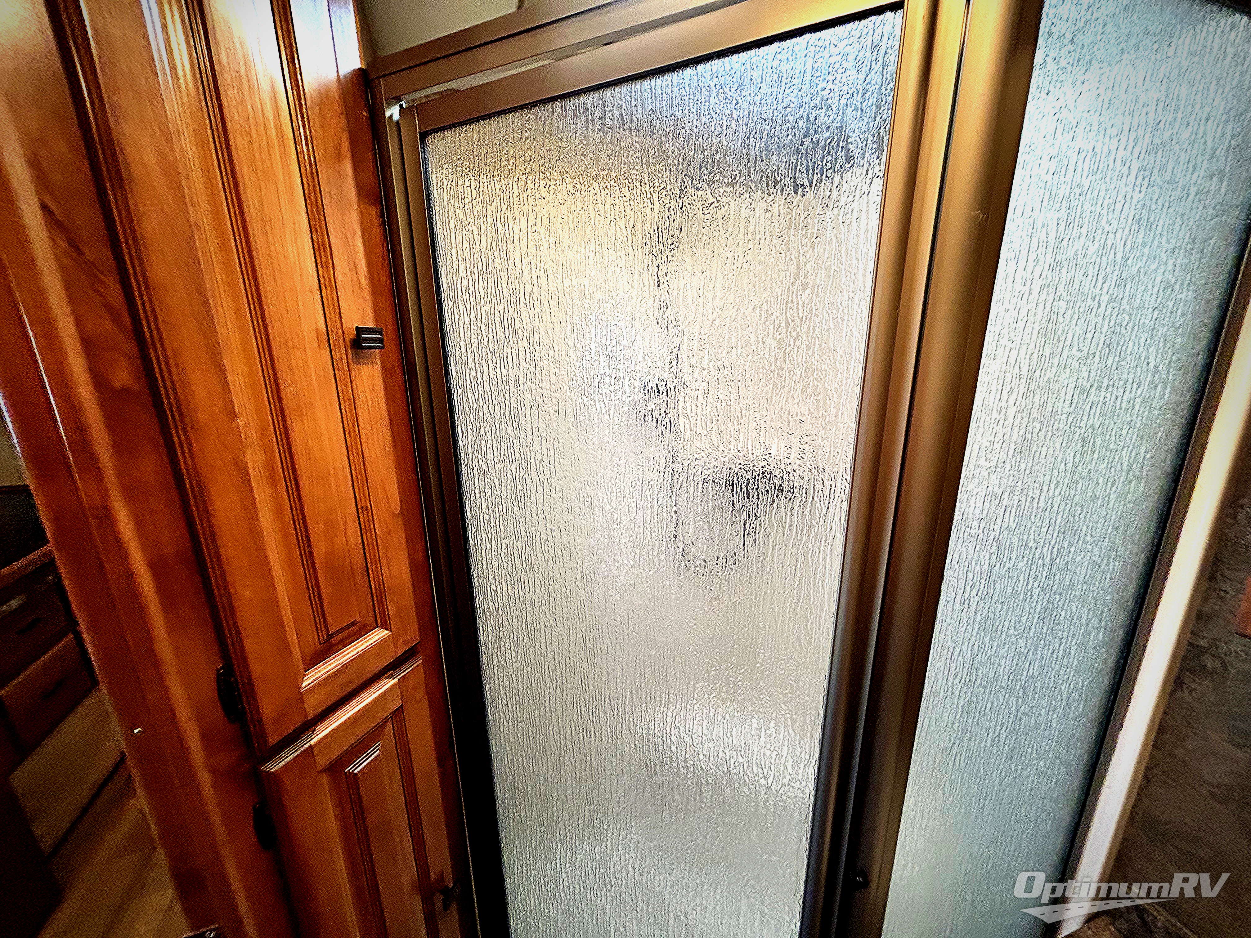 The front includes two captain's chairs with overhead cabinets at each side. You may also choose an optional TV at the center front and an optional driver side door.