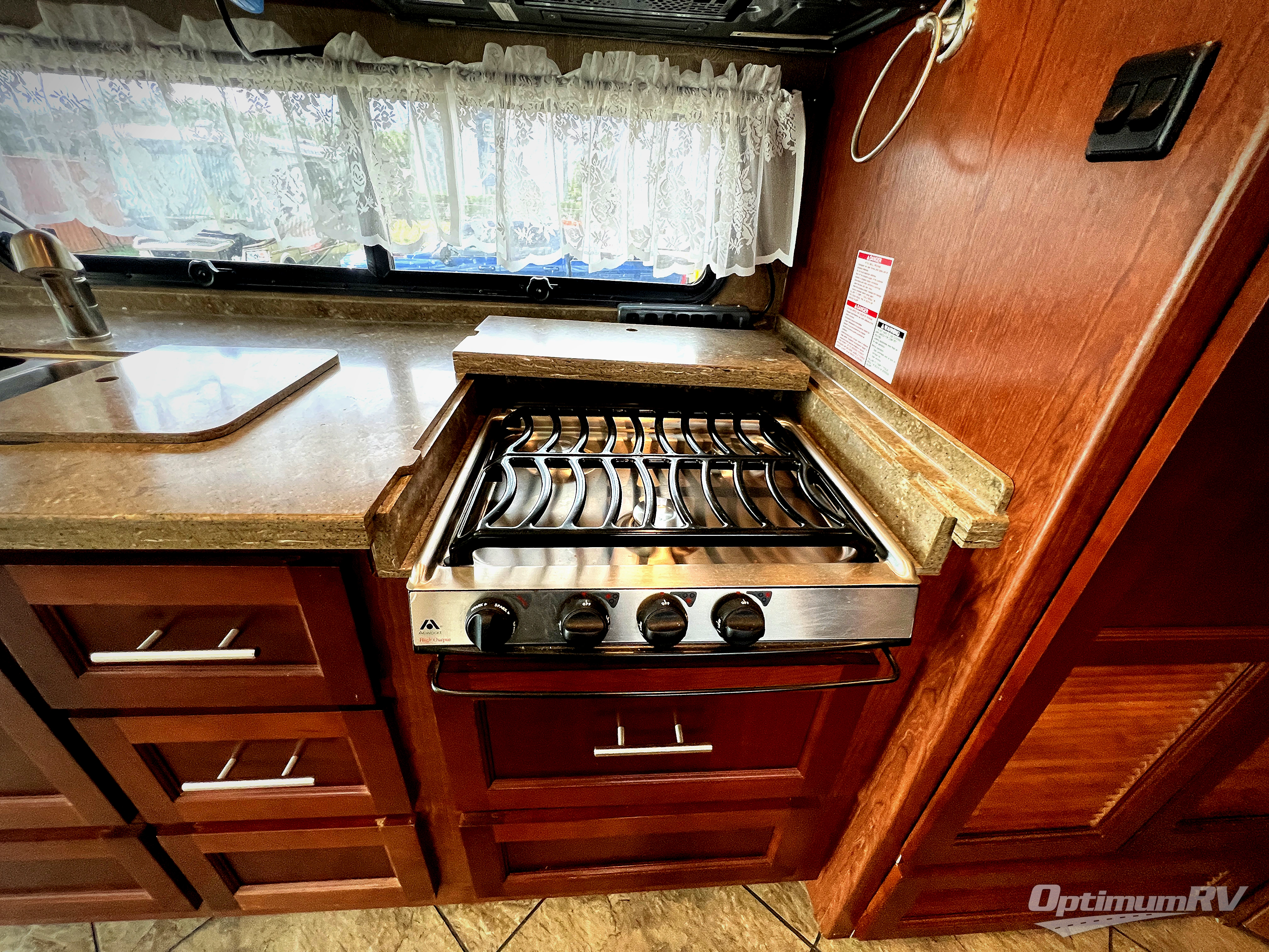 As you enter the motor home, the passenger side has a 32" LED TV, double kitchen sink, three burner range, microwave, and is washer and dryer prepped. The driver's side of the motor home offers a full wall slide with a sofa, booth dinette, refrigerator, pantry with adjustable shelves, closet, two shirt wardrobes, a chest of drawers, and a LED TV in the bedroom.