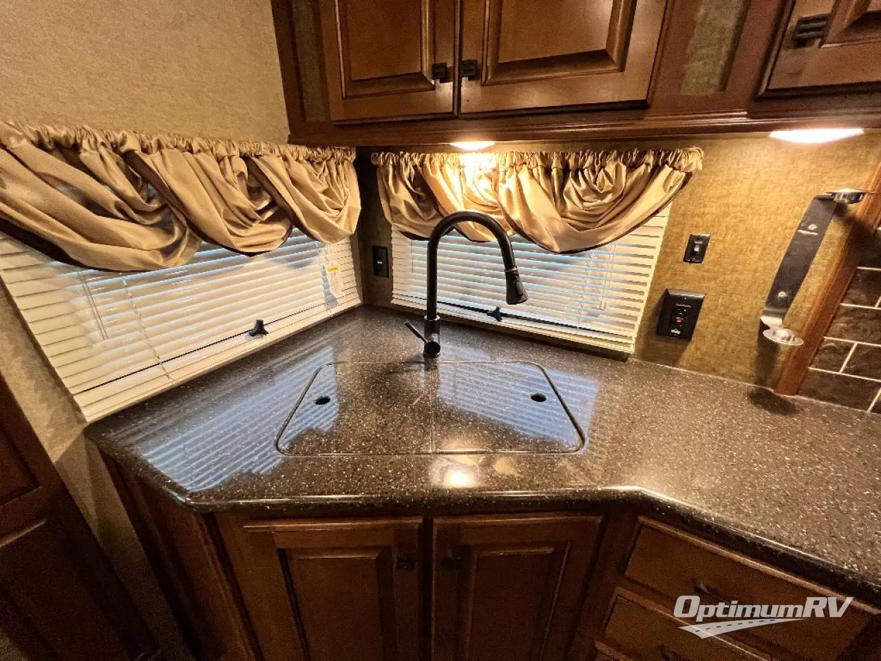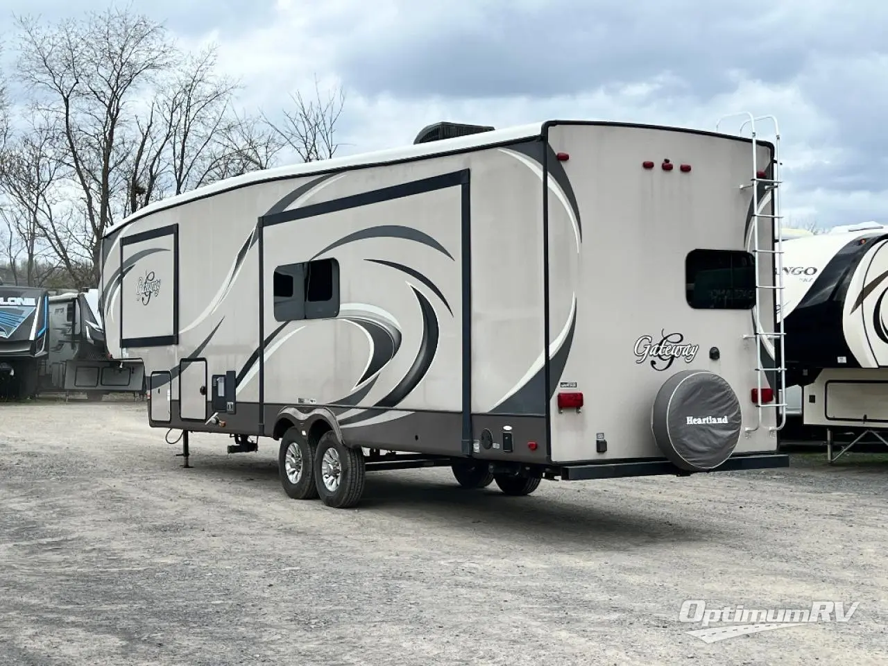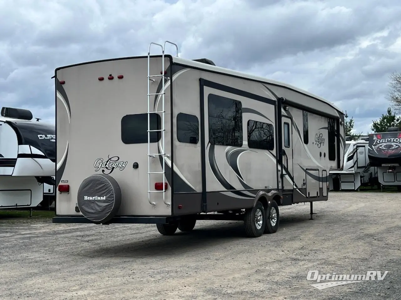 This Heartland Gateway fifth wheel 3300 ML features a rear kitchen layout, triple slides, and an optional king size bed!