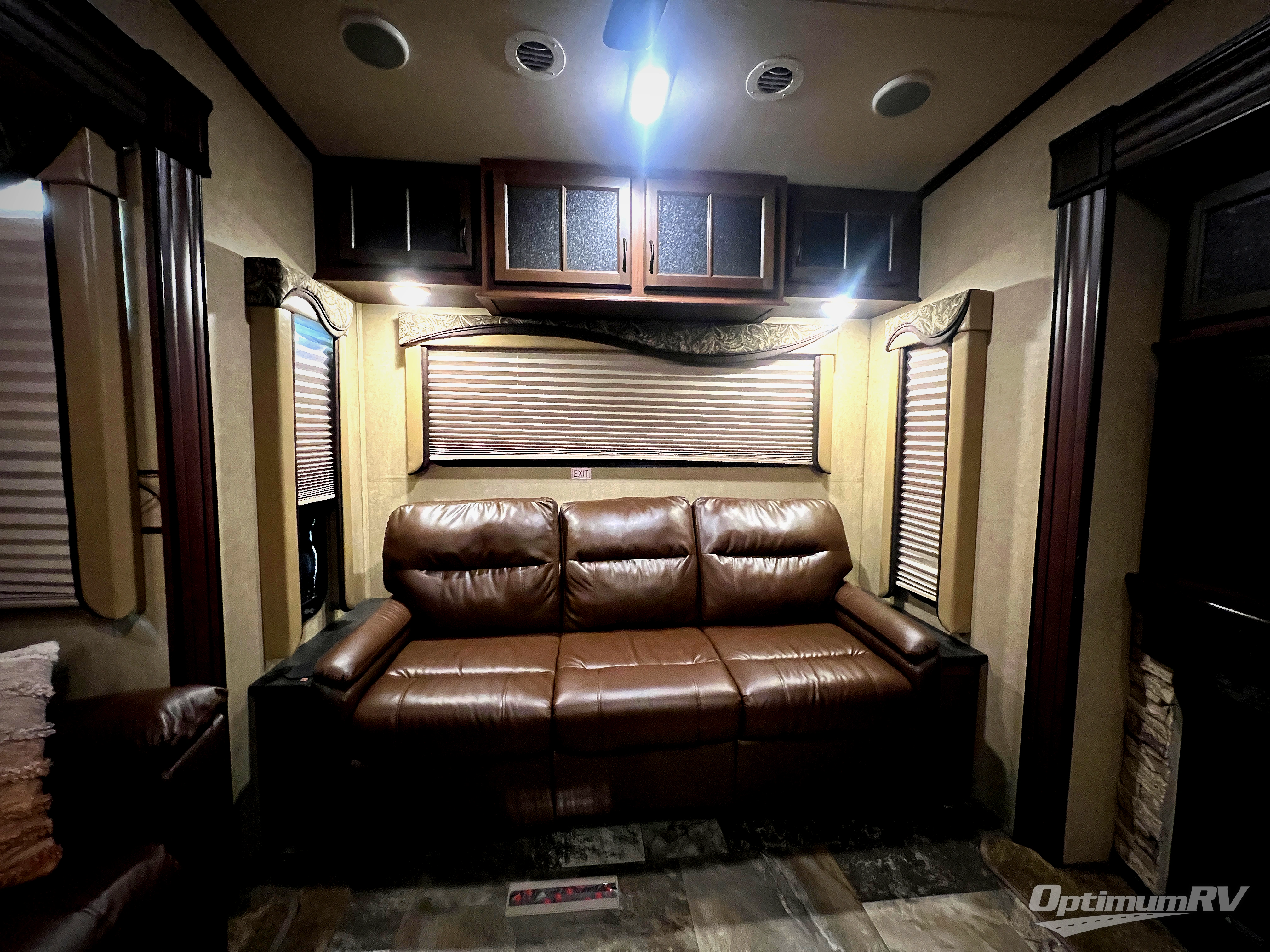 There are plenty of overhead cabinets throughout the 321RLTS as well as some options that you could choose, such as, a Ledgestone fireplace, and a 12 cu. ft. refrigerator.