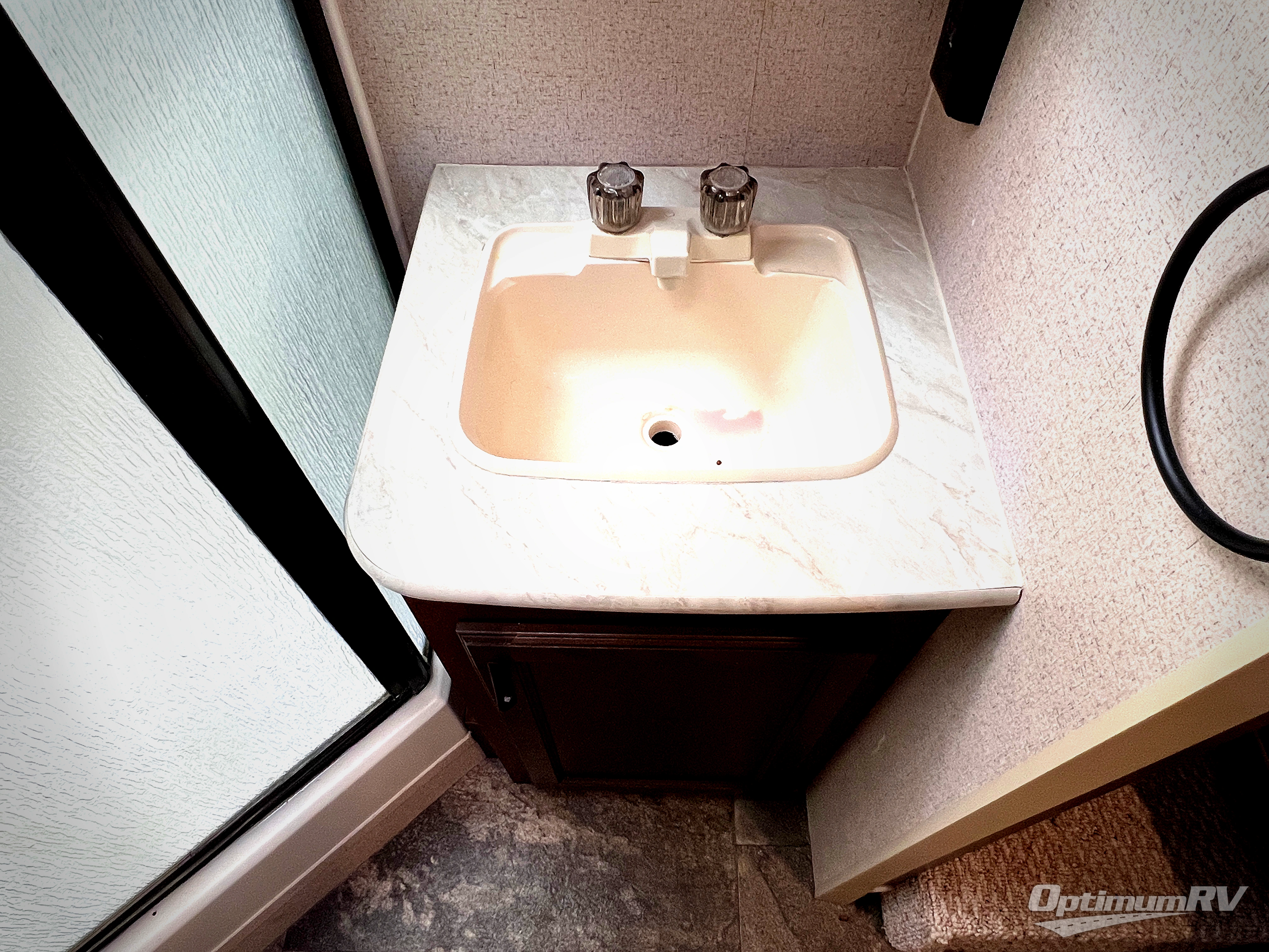 The side aisle bath has a corner shower, sink, medicine cabinet, and toilet.