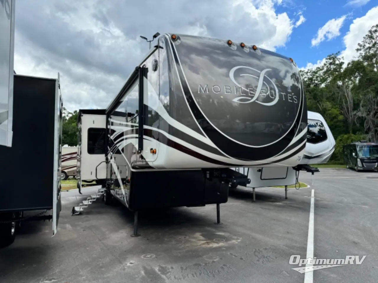 Camp comfortably in this Mobile Suites fifth wheel by DRV Suites. Model 36 RSSB3 offers a spacious rear living layout, a king size bed in the master suite, plus all the amenities you need to enjoy spending time away from home!
