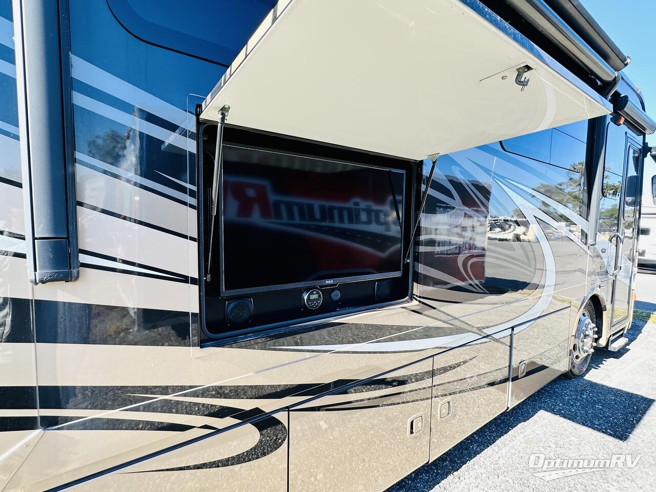 Enter in front of the reclining co-pilot seat and find a spacious living area. Dual opposing slides provide ample space to move about. Behind the co-pilot seat, enjoy an expandable L-shaped sofa, or choose an optional hide-a-bed sofa with storage above and a hide-a-leaf free-standing dinette with two chairs. You can enjoy the 42" LED TV and fireplace in the corner behind the driver's seat from either seating area. Plenty of storage is available in overhead cabinets throughout the coach.