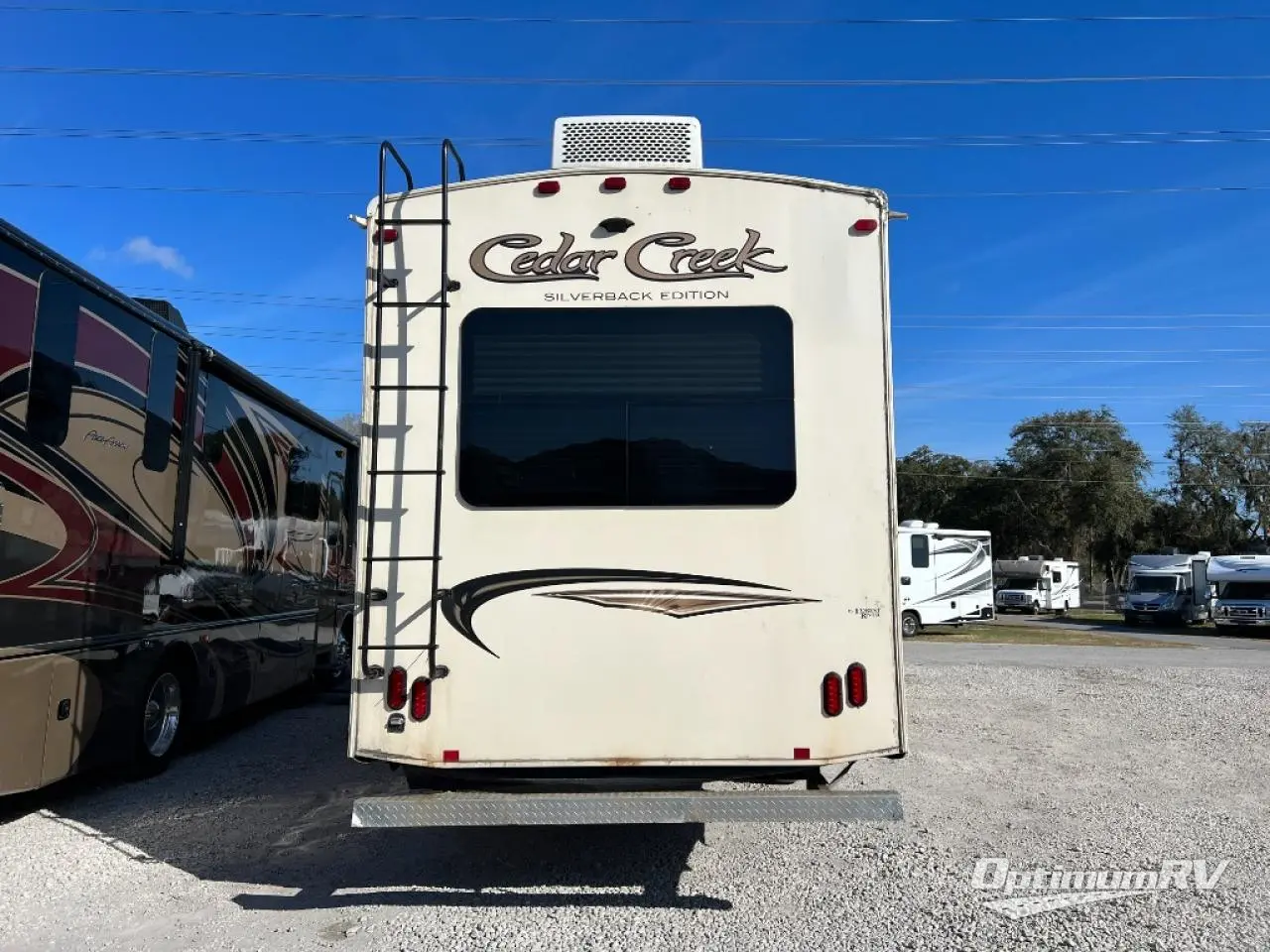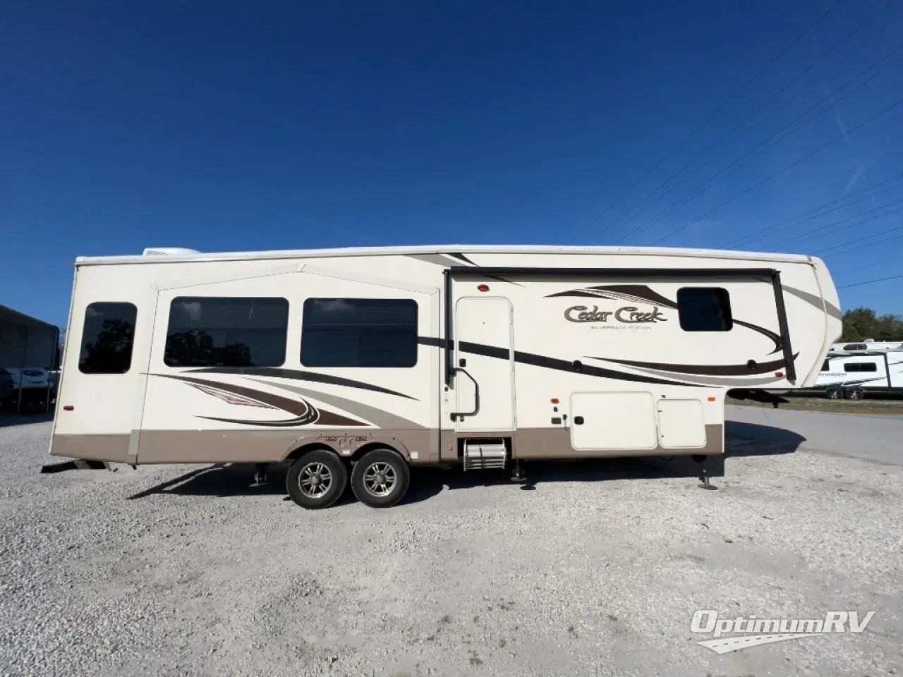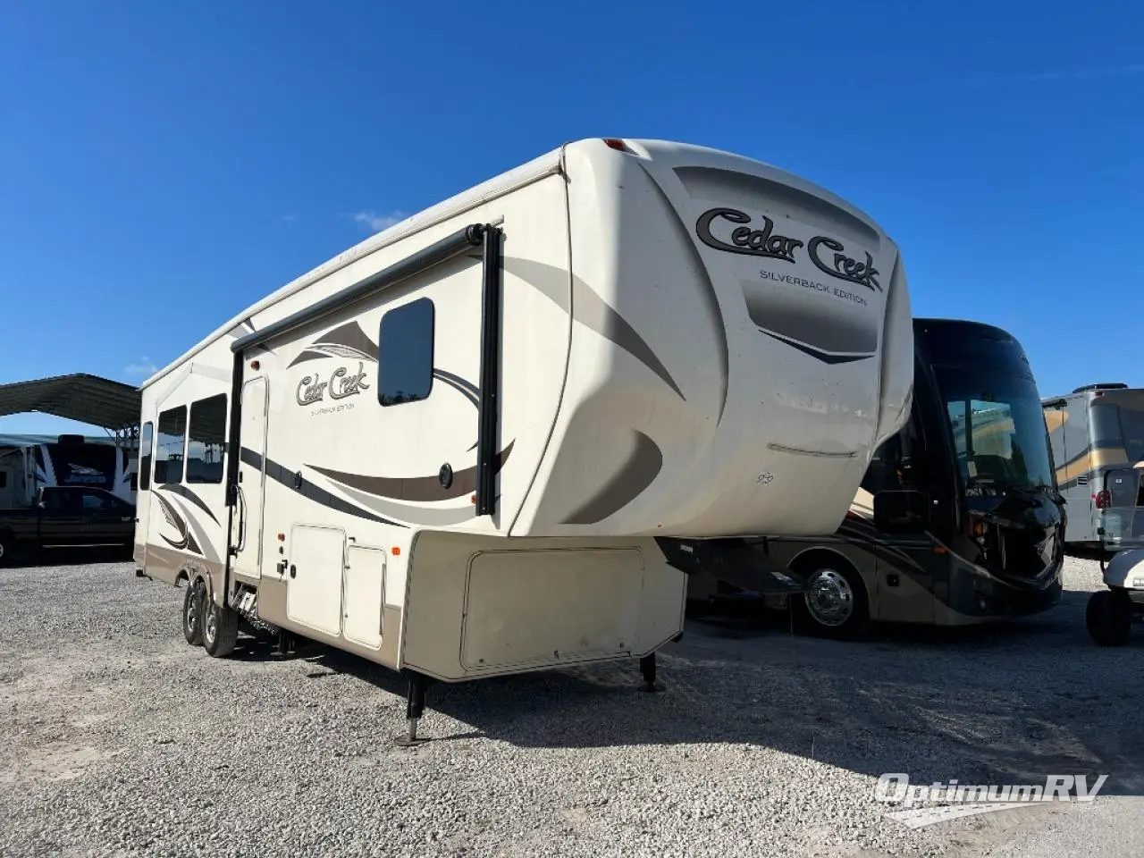 As you look at the Cedar Creek Silverback 33IK fifth wheel by Forest River you will notice that this fifth wheel has triple slides and a kitchen island.
