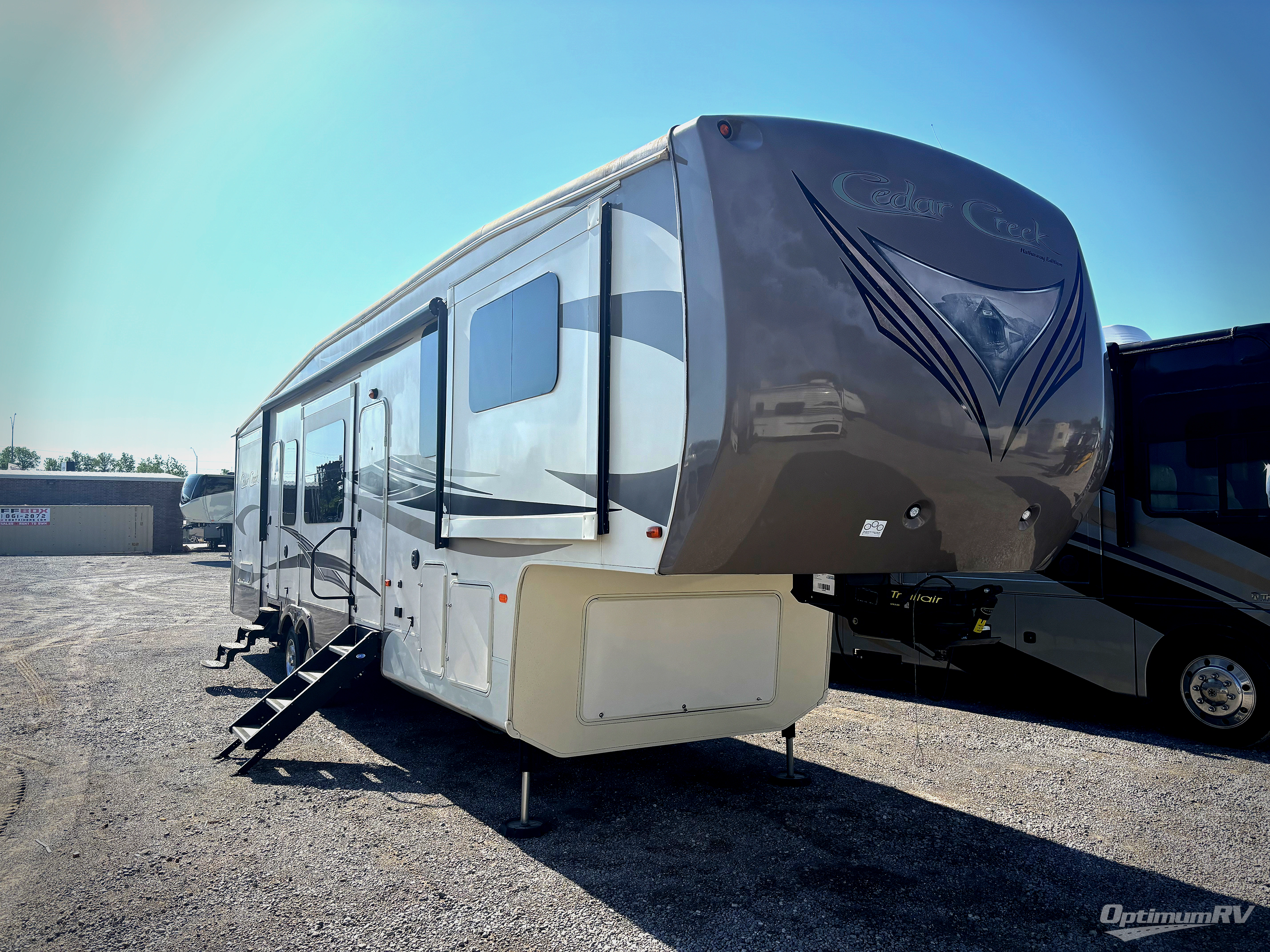 Camping has never been so comfortable and home like. Come check out this Cedar Creek Hathaway Edition fifth wheel model 38FL6 including SIX slides, a raised front living area, spacious center kitchen, dual entry doors, and private master. Each section features dual opposing slides making it feel as spacious as home!