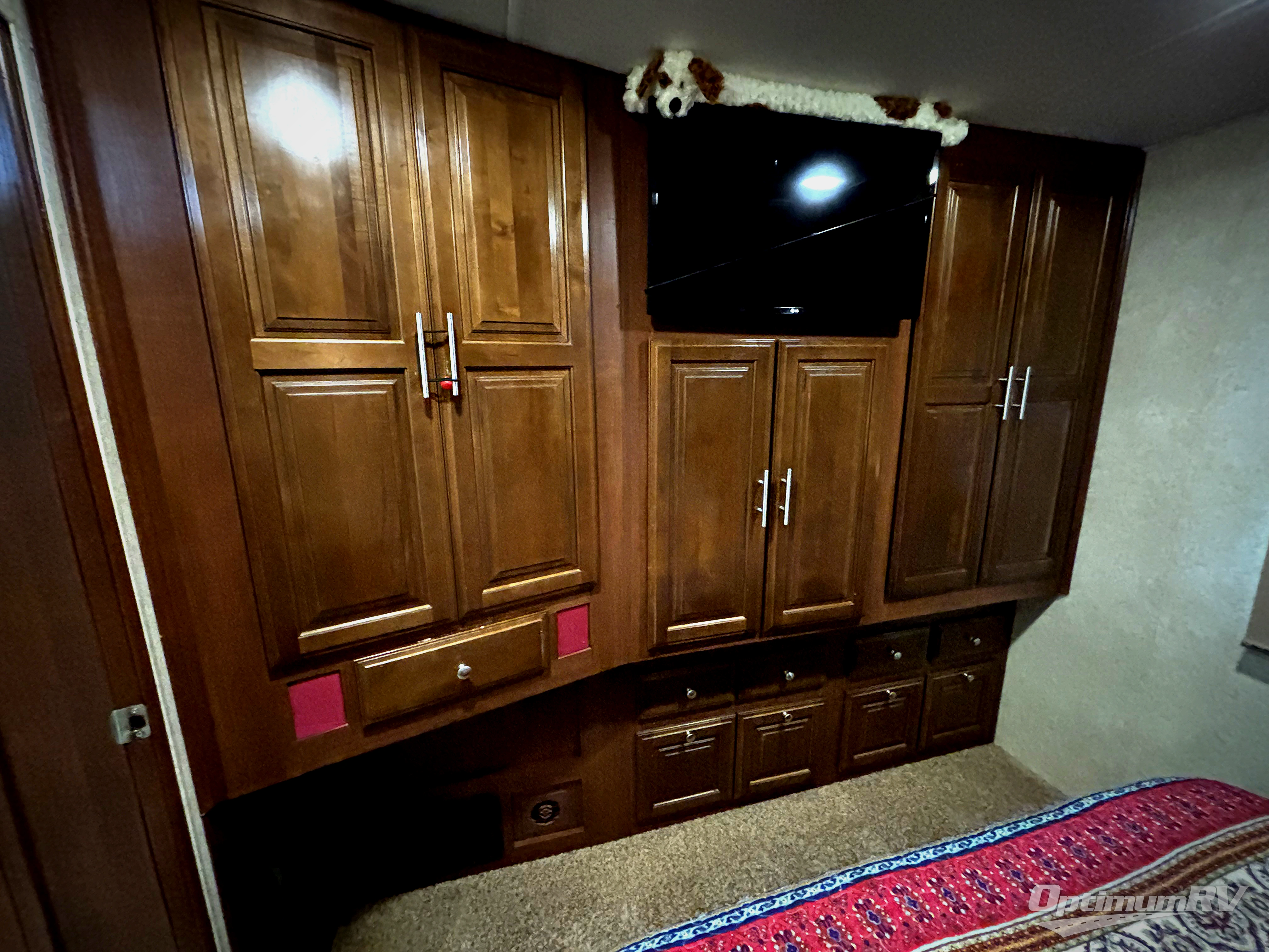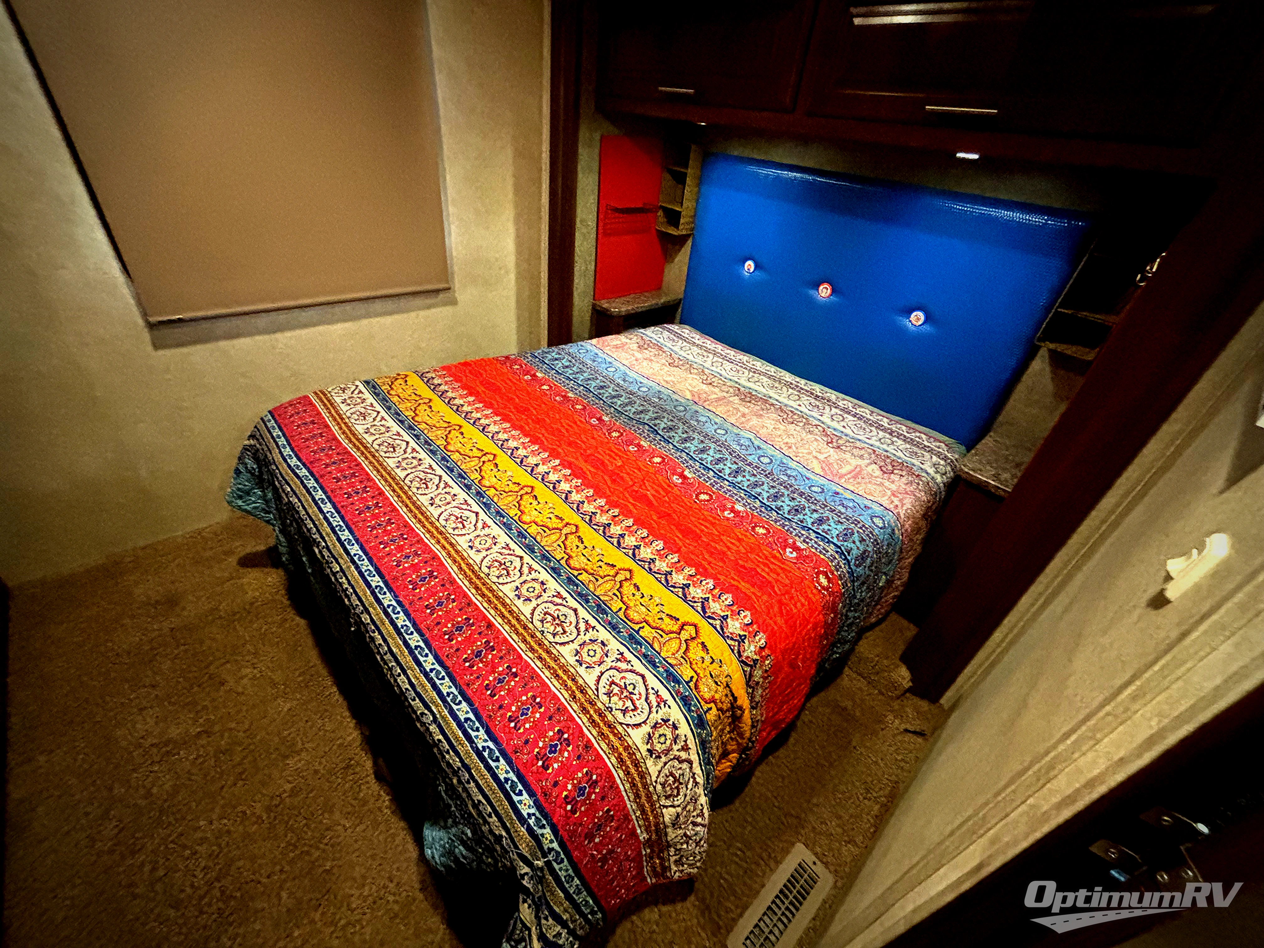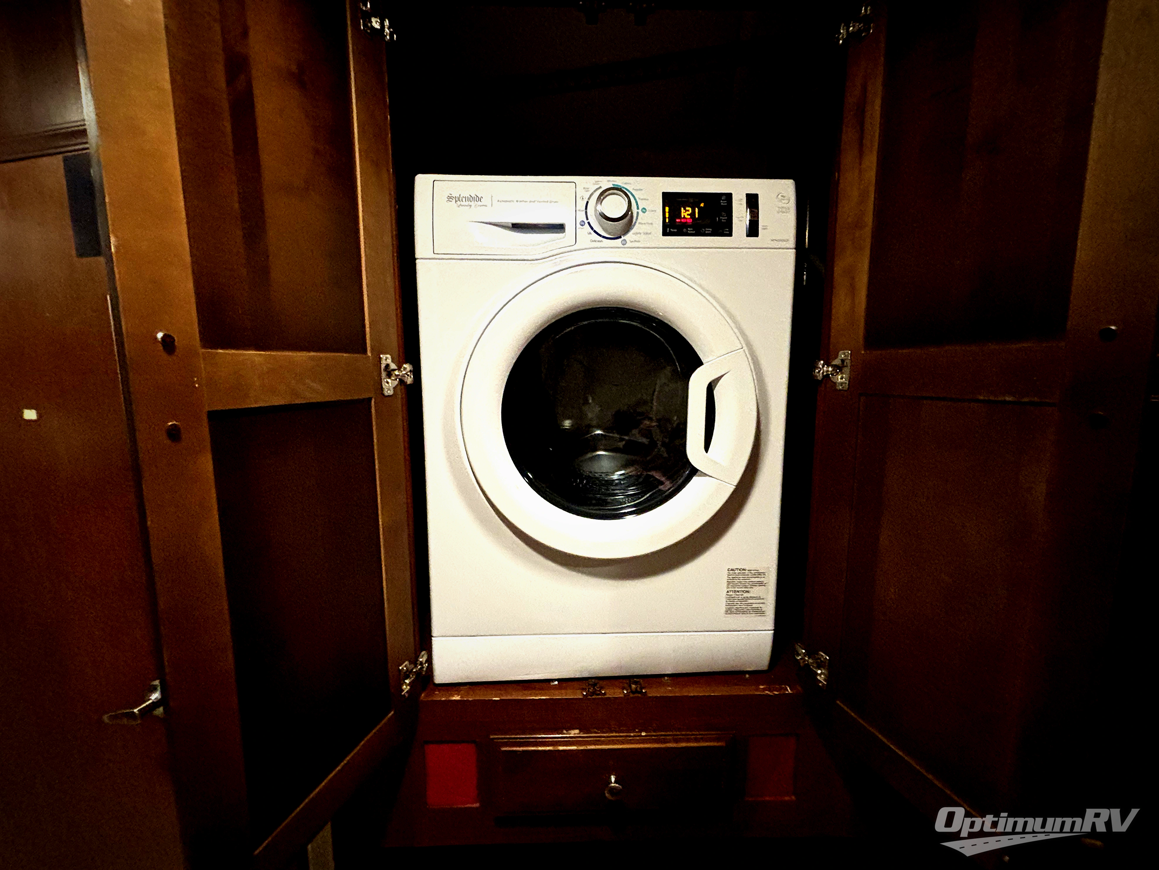 In the bedroom you will find a slide with a queen size bed, overhead cabinets, and nightstands. On the opposite side of the room you will find a large wardrobe, TV, and an optional washer/dryer.