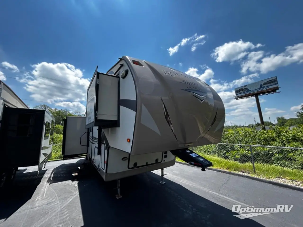 The Rockwood Signature Ultra Lite 8289WS fifth wheel by Forest River offers triple slides and a rear living area.