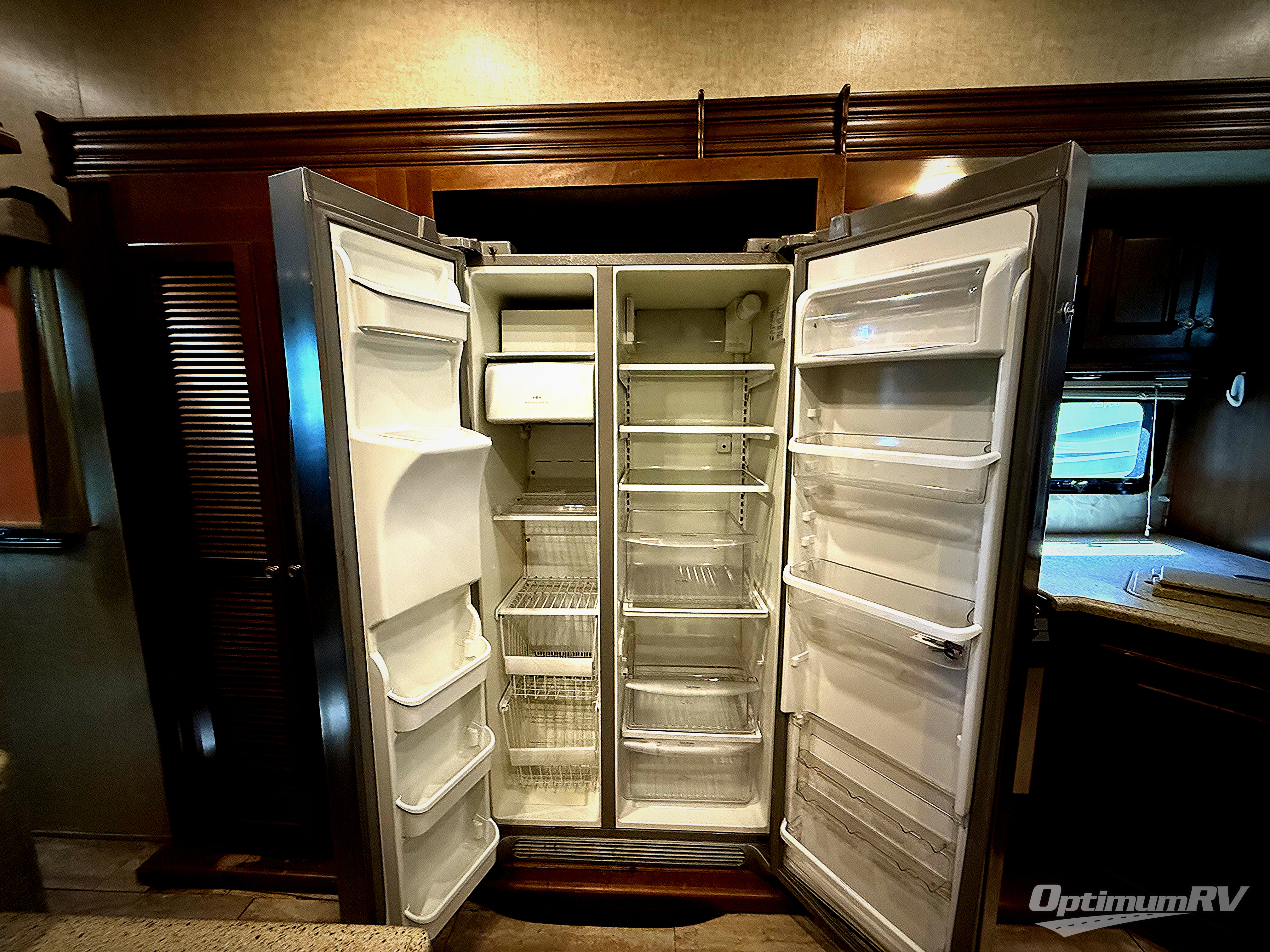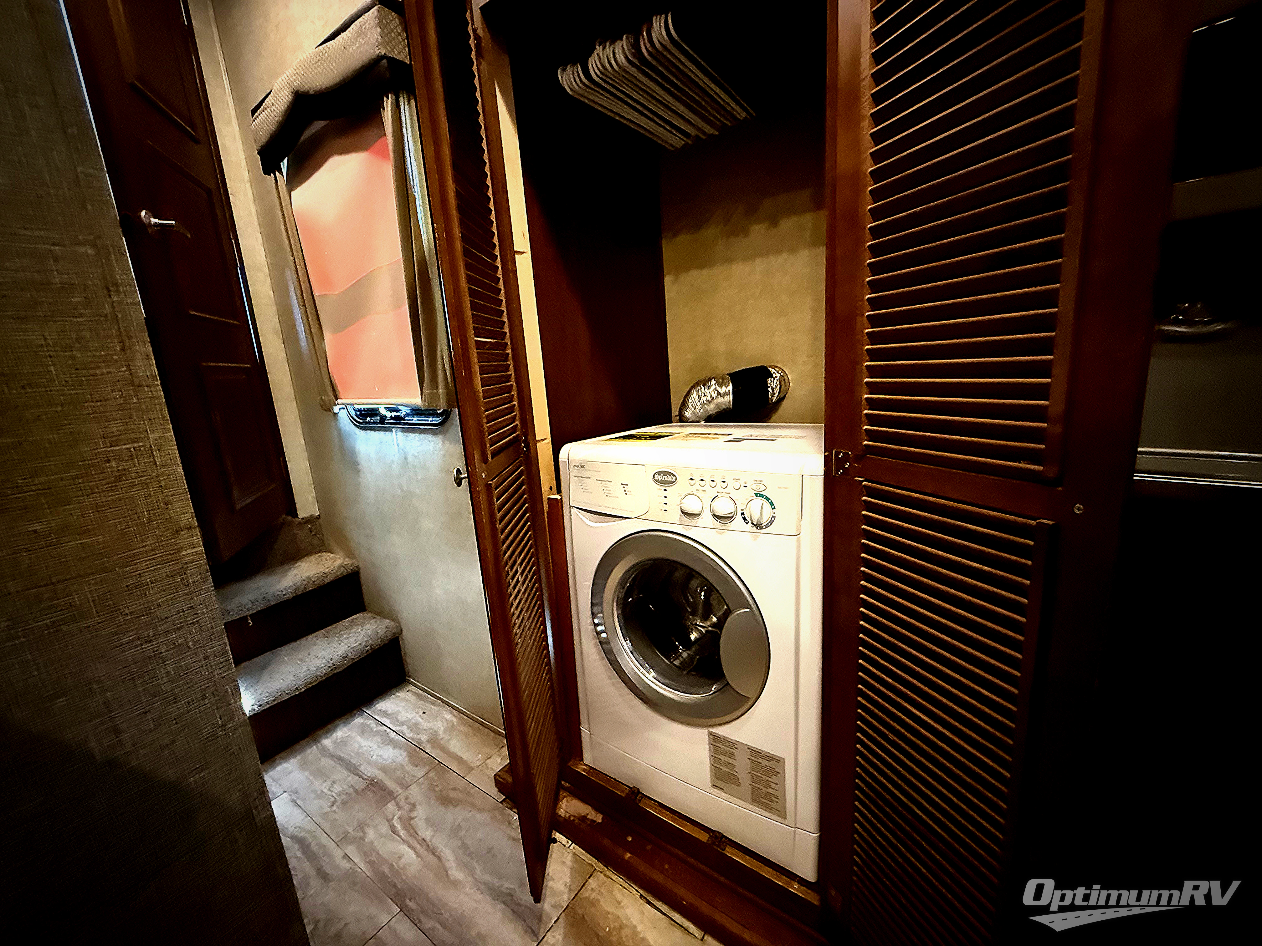 Back down to the main living space enjoy a kitchen almost like home. To your right is ample counter top space for prep work and serving, a pantry, plus all the standard amenities inside a road side slide out like a double door refrigerator, three burner range with overhead microwave, and a double kitchen sink for easy cleanup. There is even a space in the slide out that has been prepped for a washer and dryer for added convenience.