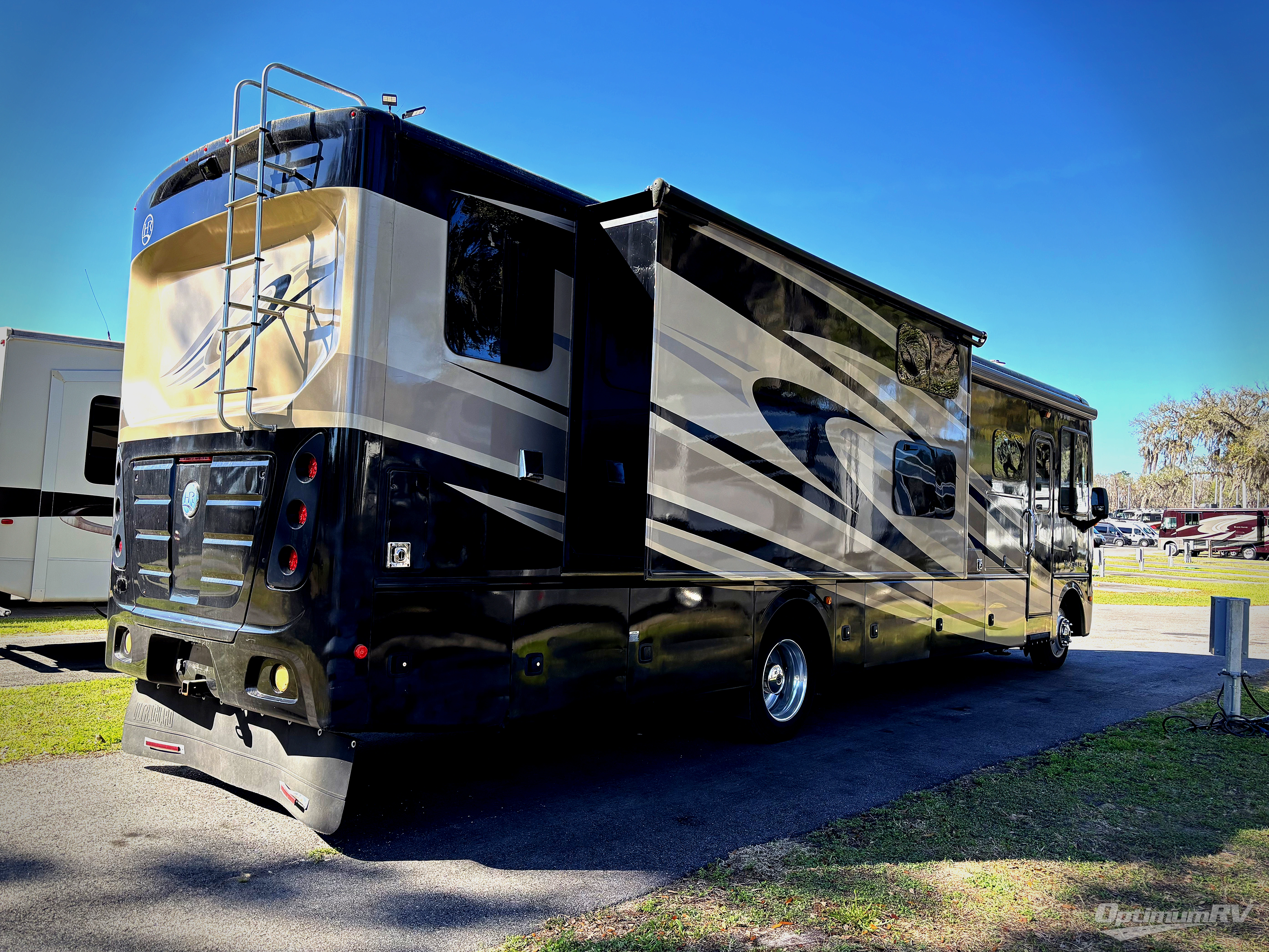 Plenty of room for the whole family can be found in this Vacationer class A gas coach by Holiday Rambler. Model 37BH features triple slides, bunks for the kiddos, and one and a half baths!