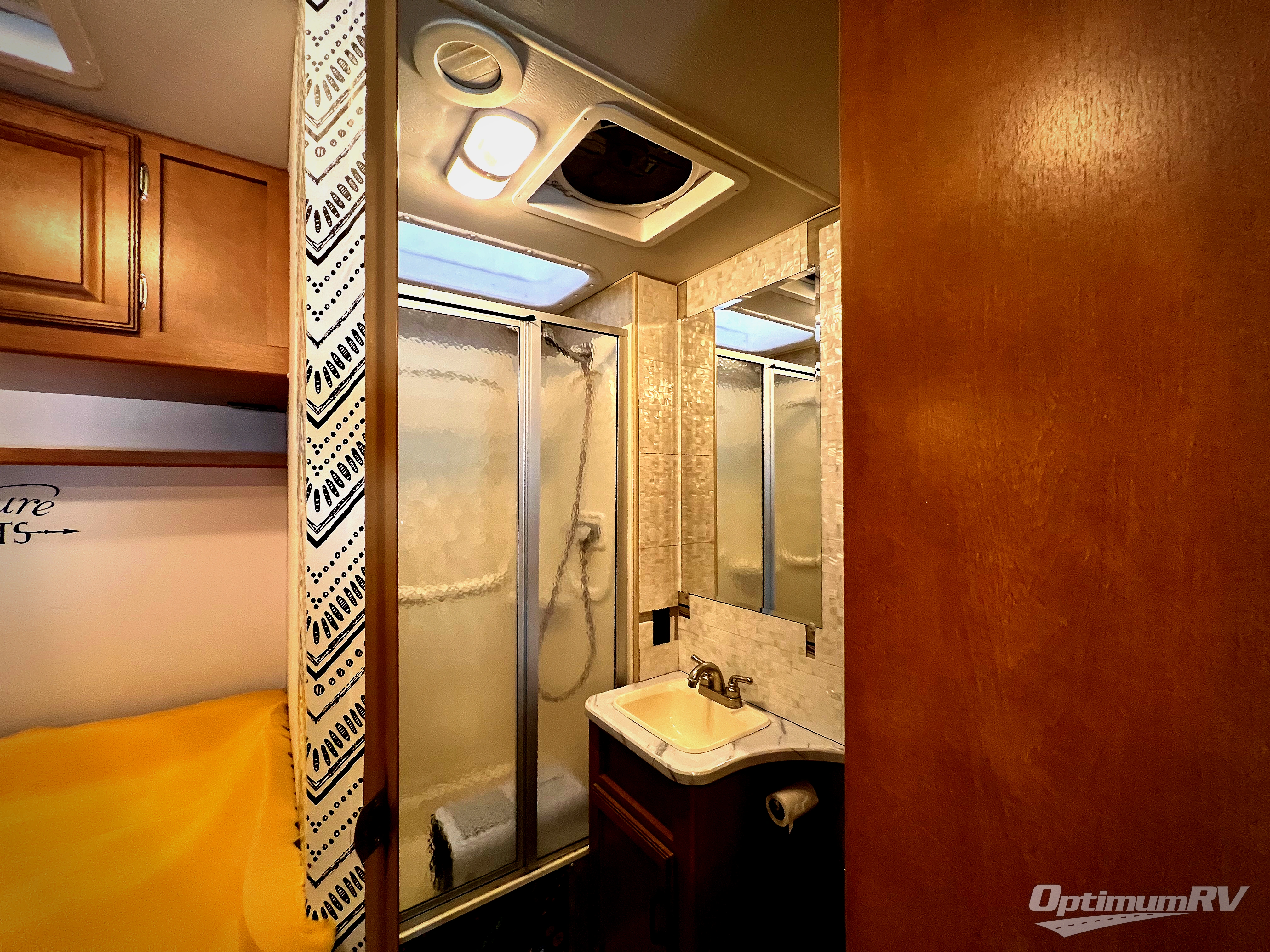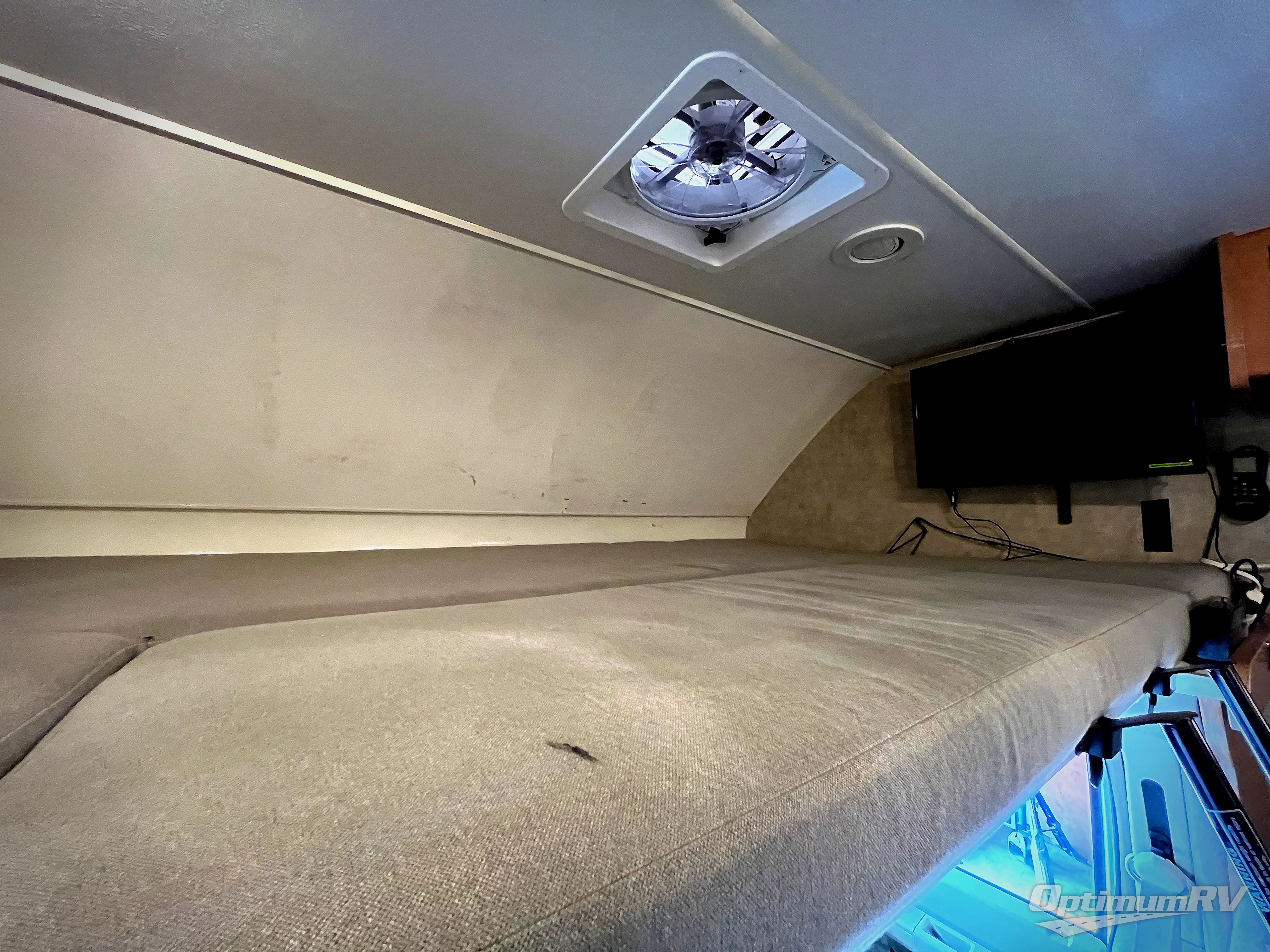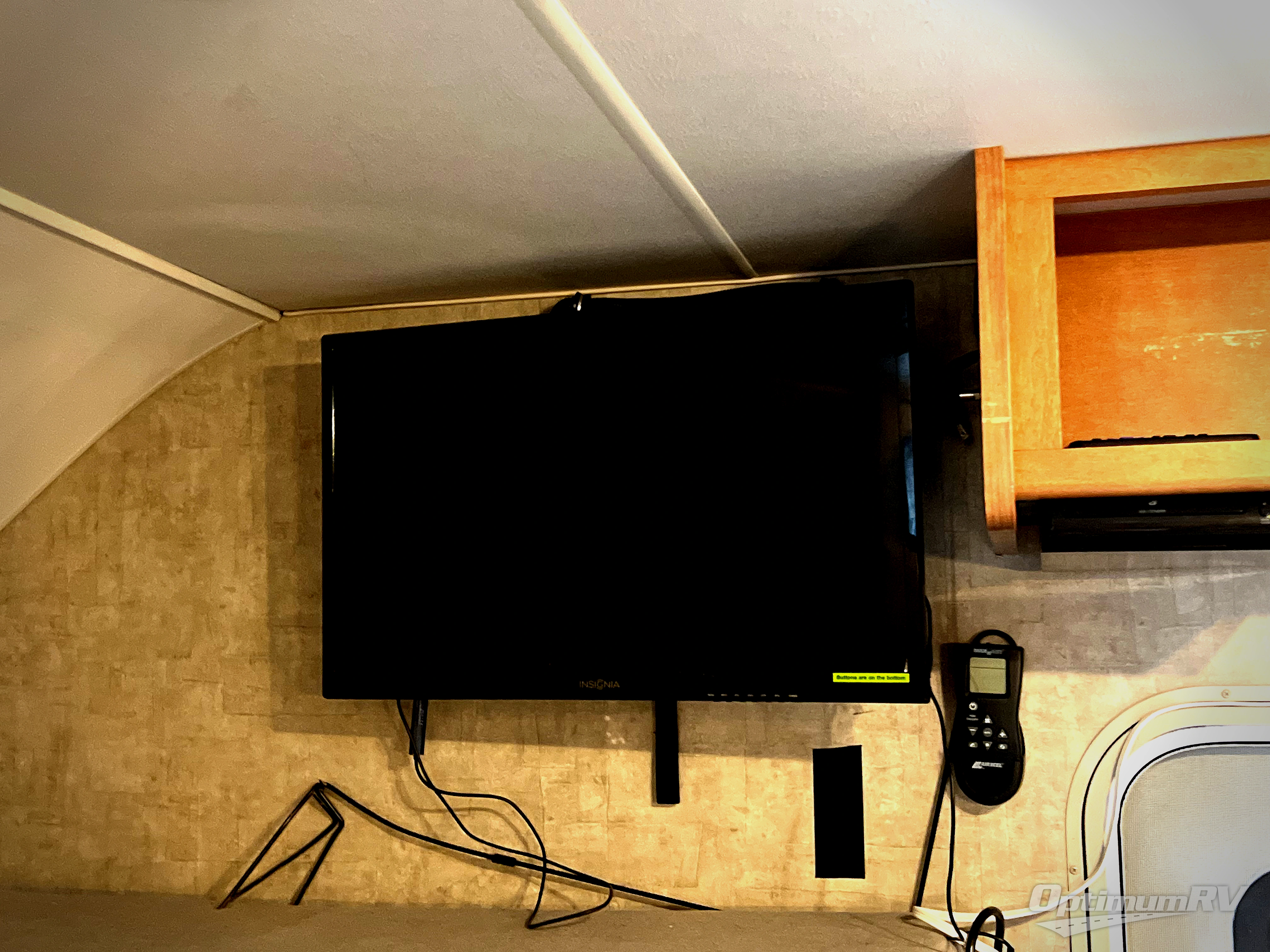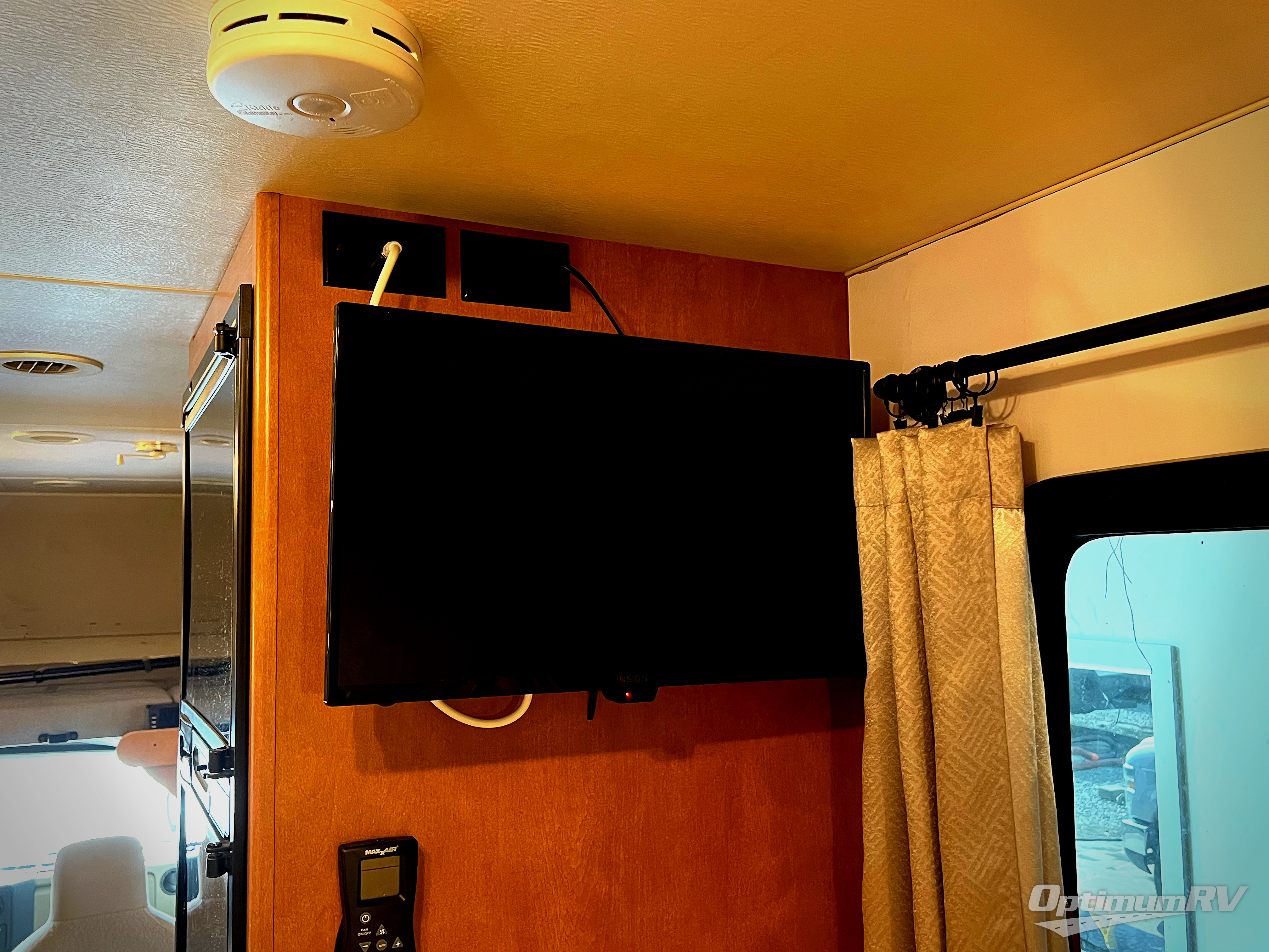 The overhead cab bunk is also a perfect space for two guests. Here you will find a space for adding an optional 28" HDTV w/DVD player and remote for viewing throughout the motorhome.