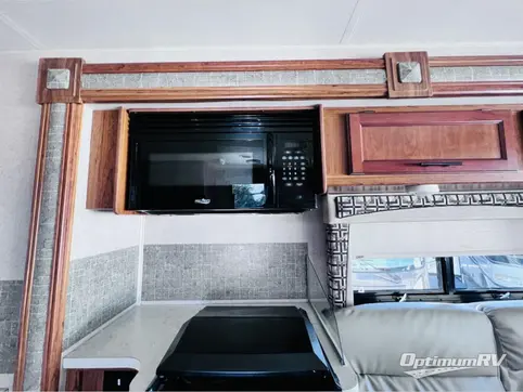 As you enter the motor home you will immediately notice the slide which has a three burner range, microwave, and sofa. Next to the slide there is a double kitchen sink. Located on the passenger side of the motor home there is a nice size dinette where you can enjoy your meals, and above the dinette there is a TV lift. Just past the dinette you will find the refrigerator, pantry, and large linen cabinet. Above the cab you can even choose to have an optional drop down bunk.