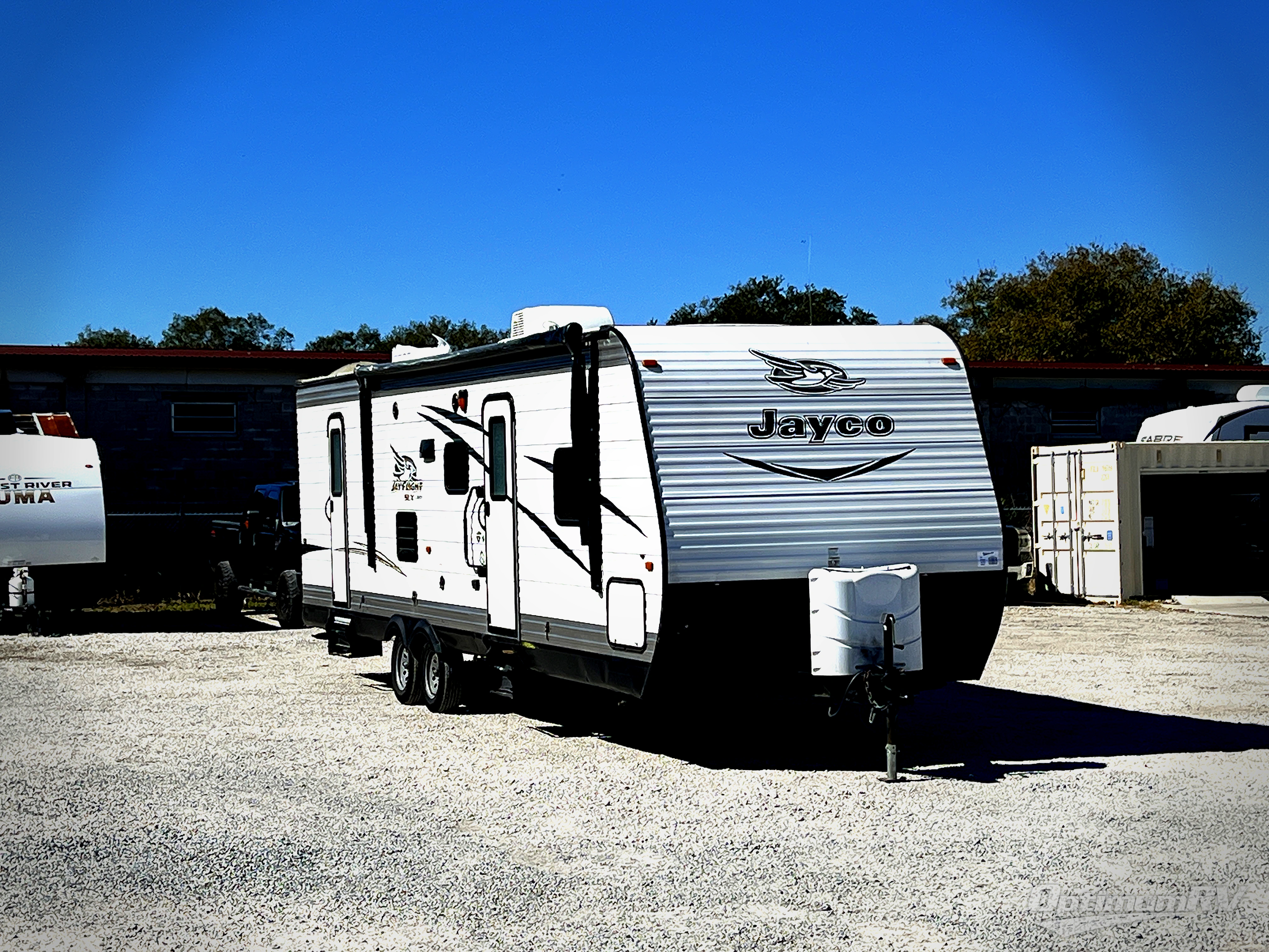 The single slide Jay Flight SLX 287BHSW travel trailer by Jayco features a rear set of bunk beds, a single slide, and two entry doors!