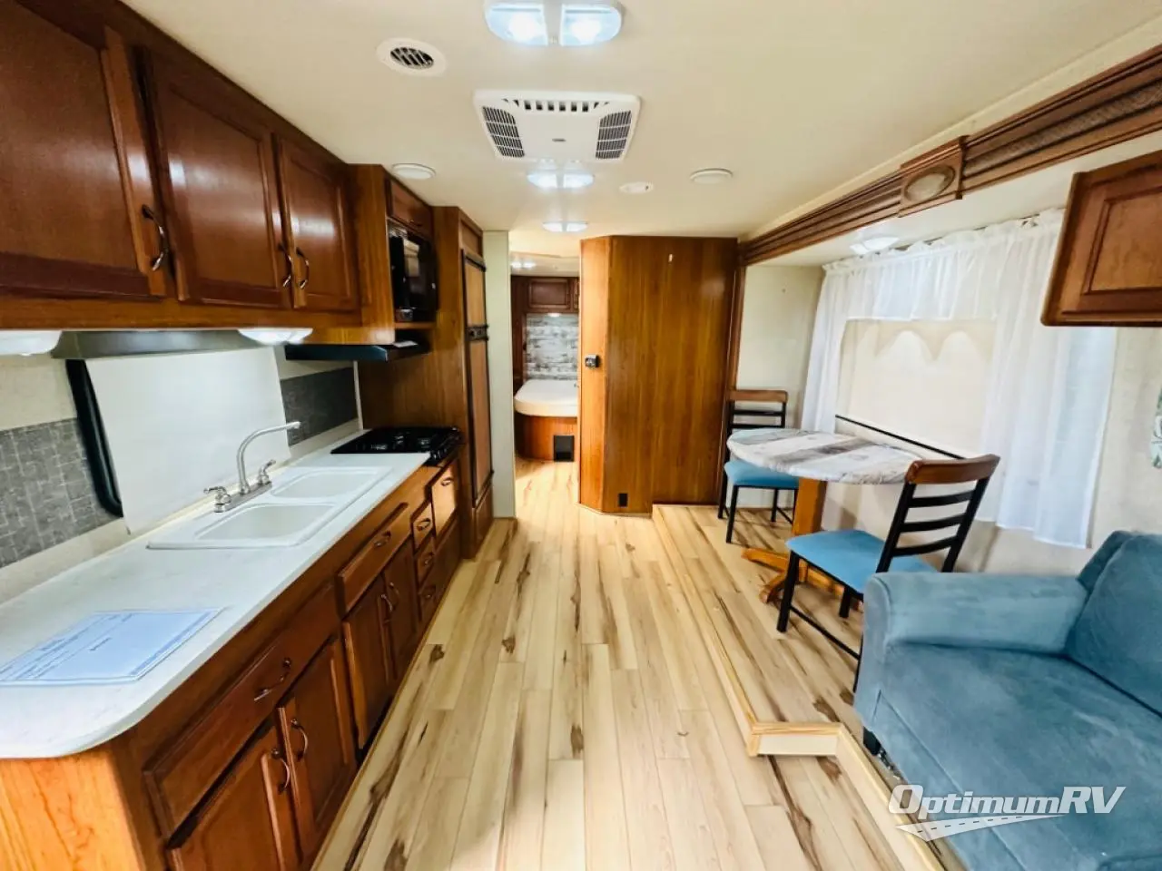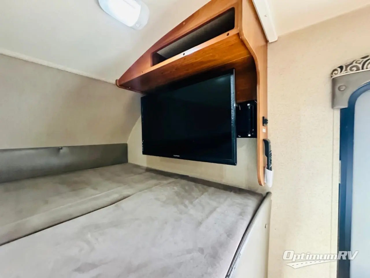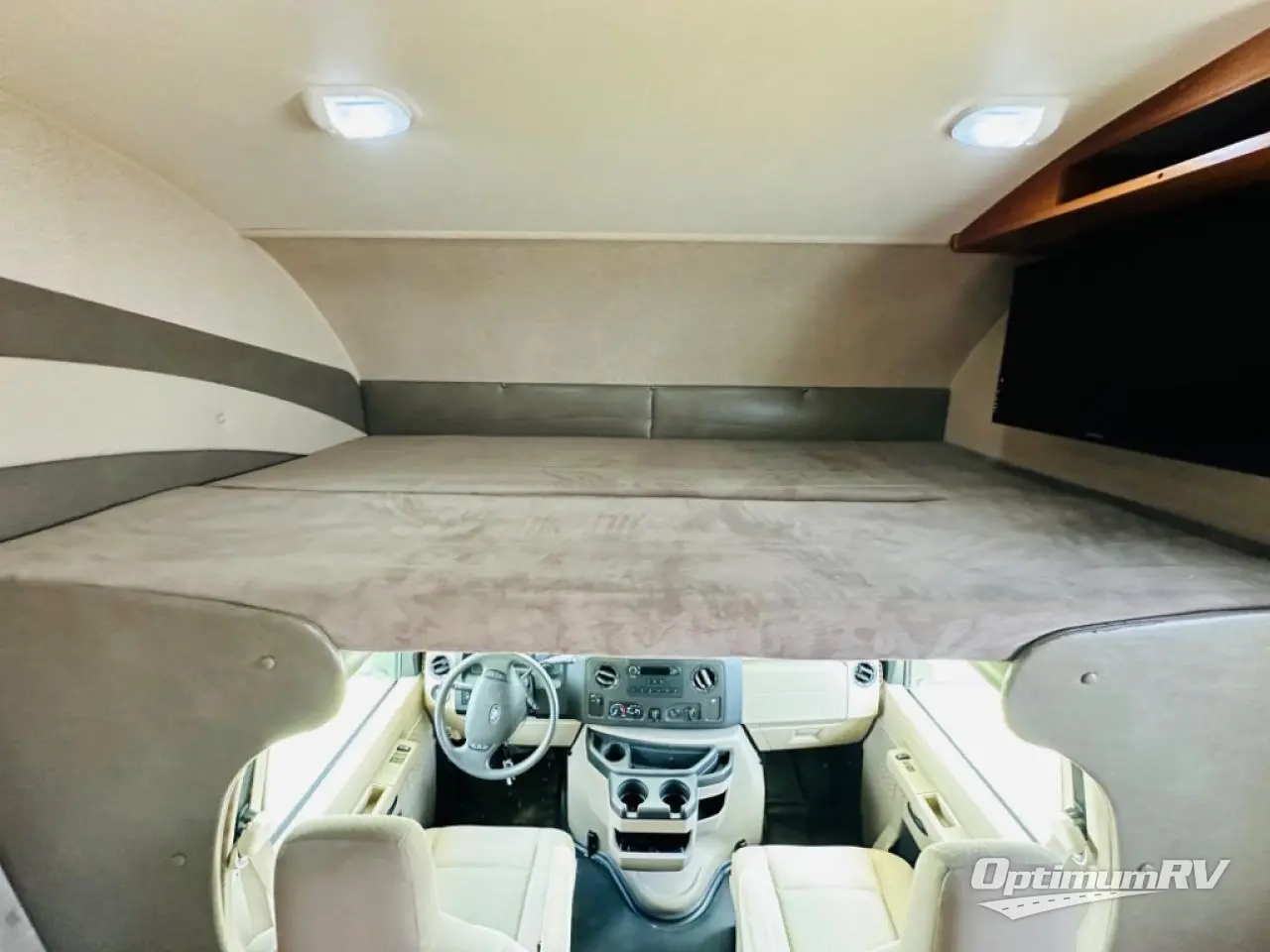 In the front of the motor home, you will also find a cab over bunk and an overhead TV.