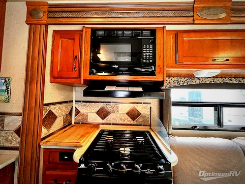 As you enter the motor home, to the right you can enjoy your meals around the dinette, the opposite side has a slide with a sofa, microwave, three burner range, and overhead cabinet. You will also find adequate counter space and a double kitchen sink. To the left of the entry door you will find a refrigerator.