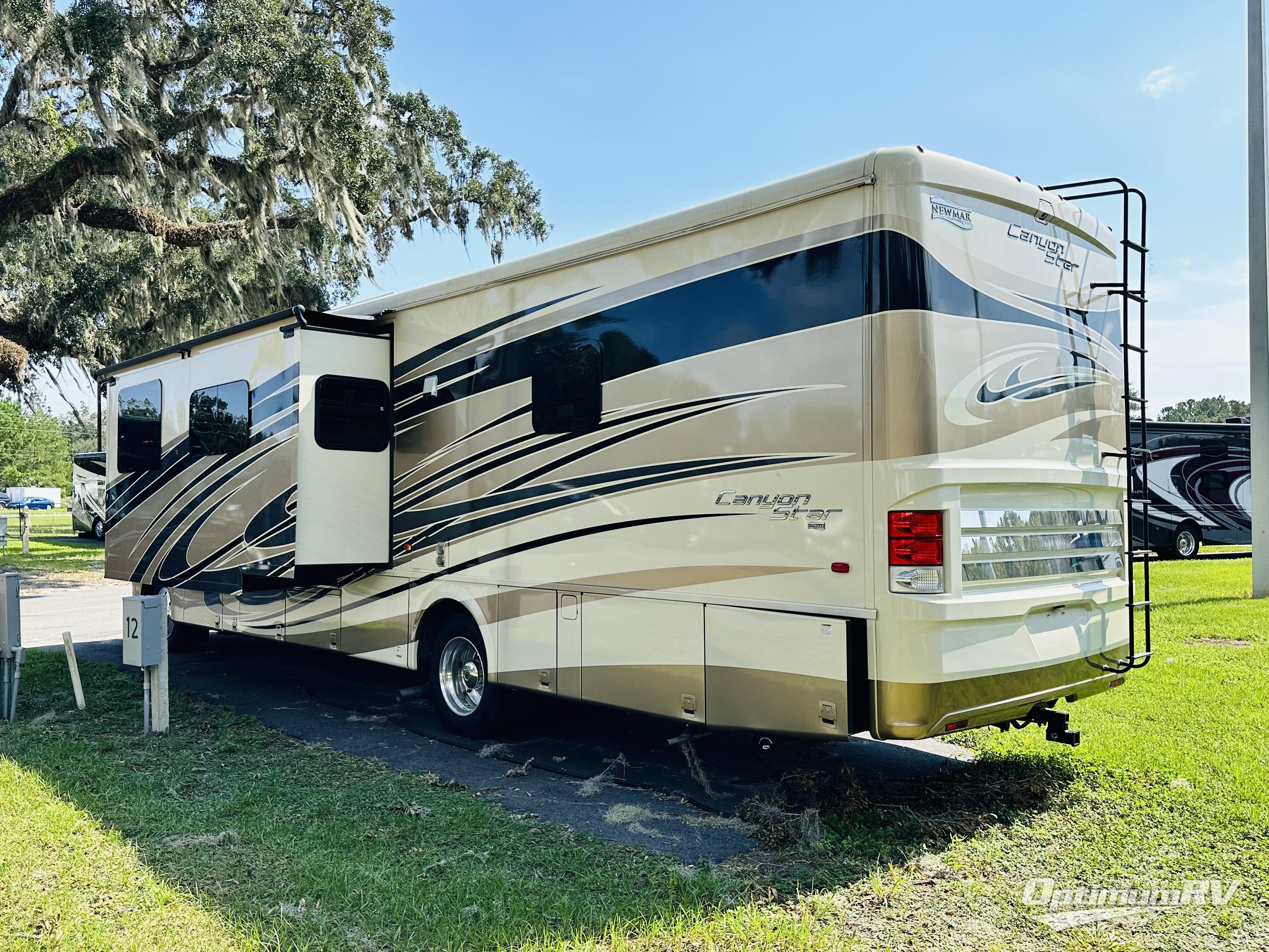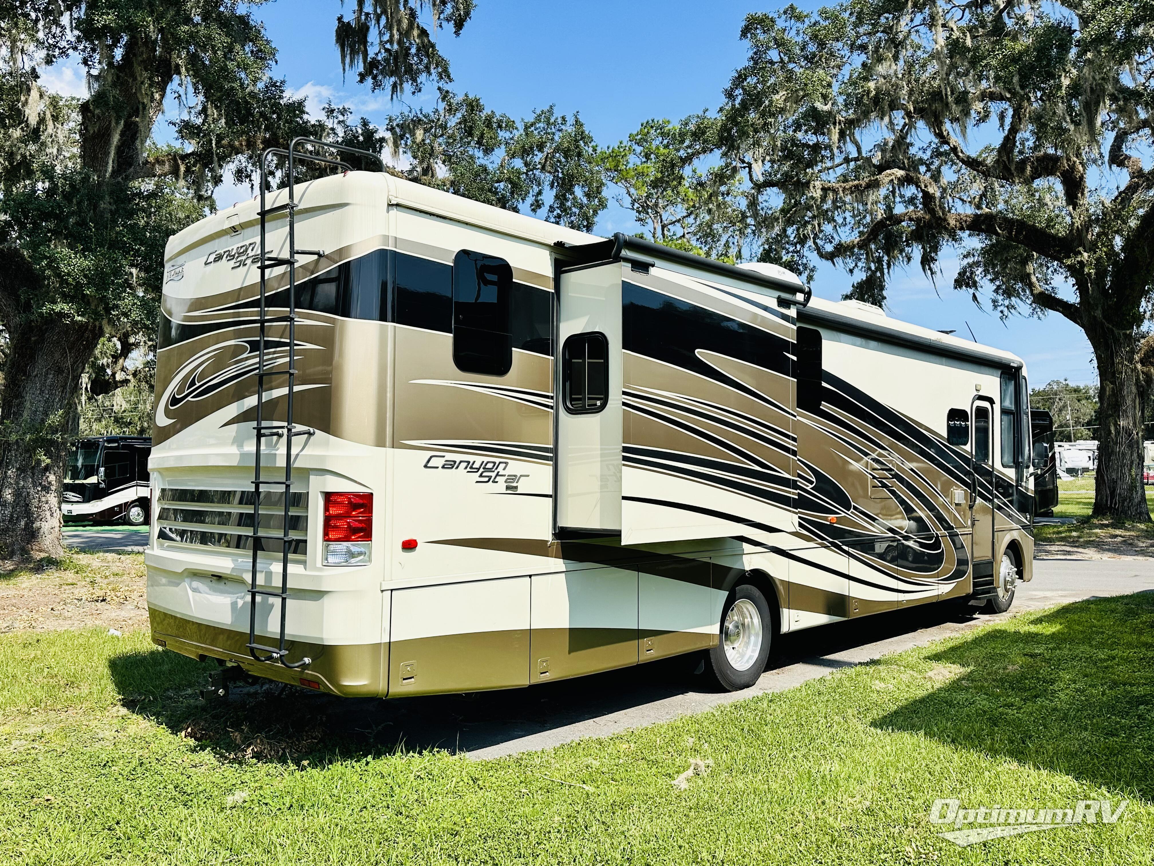 This Newmar Canyon Star 3710 class A gas motor coach features a rear master bath, king bed, dry bar, plus a half bath.