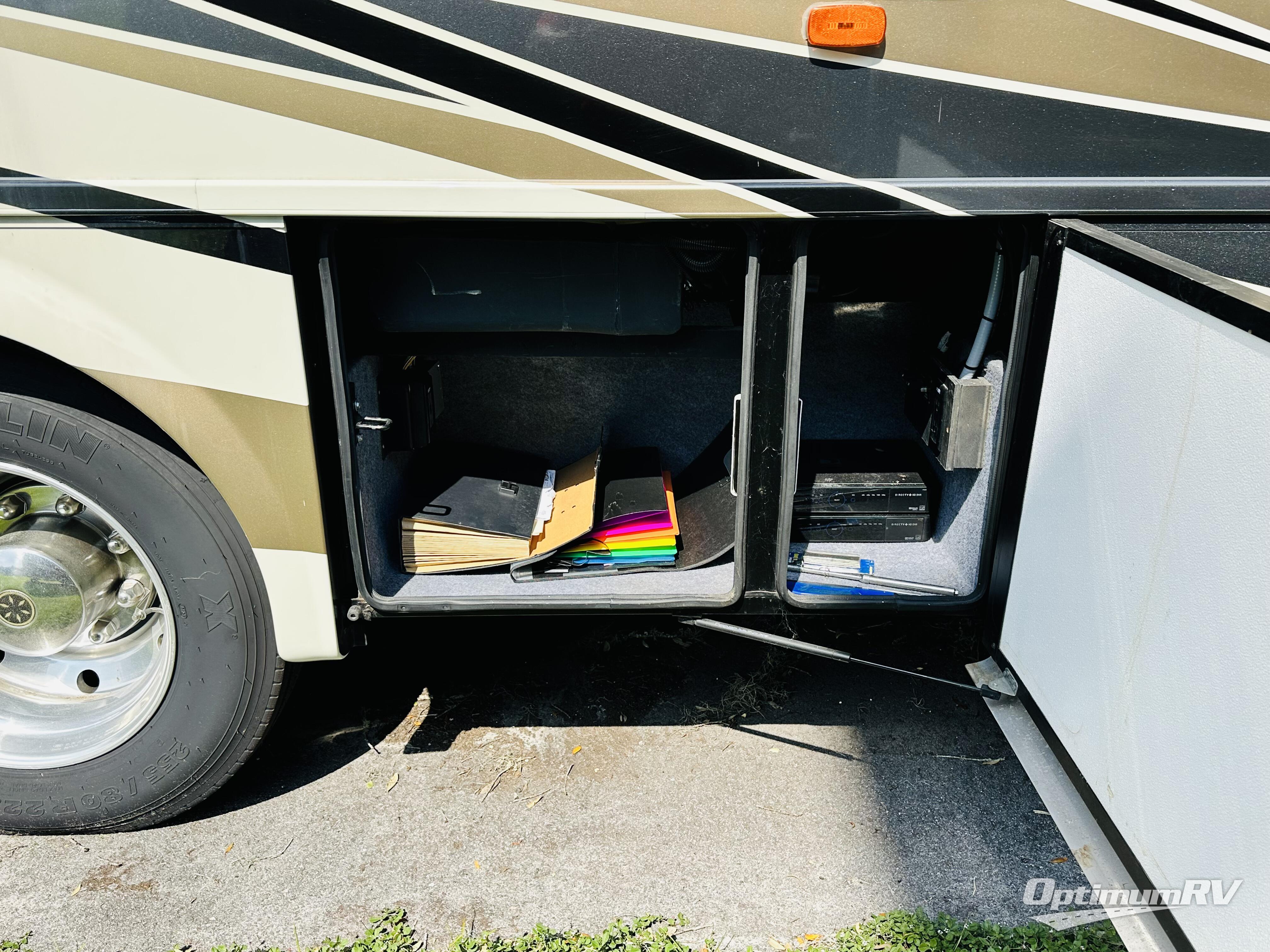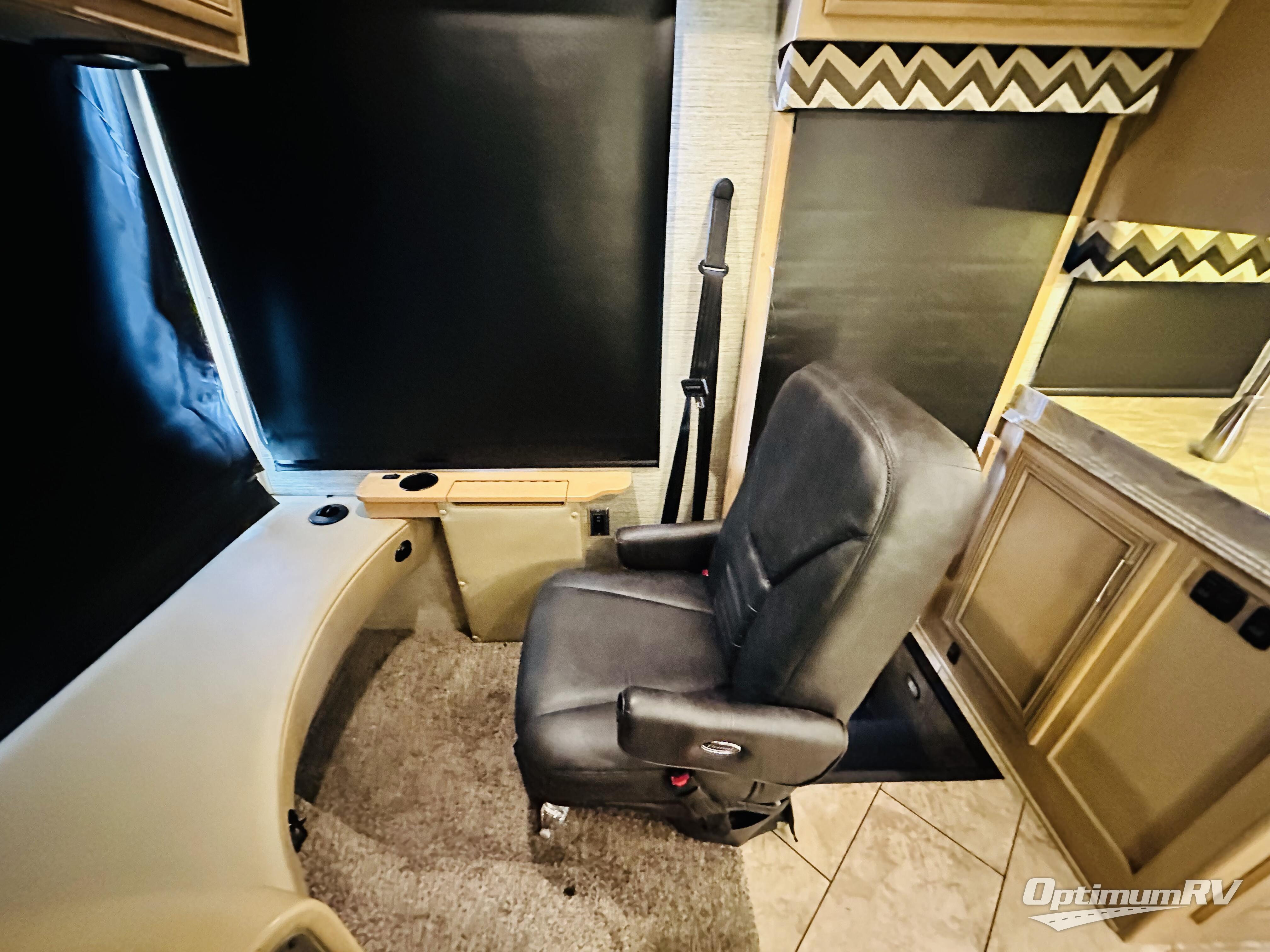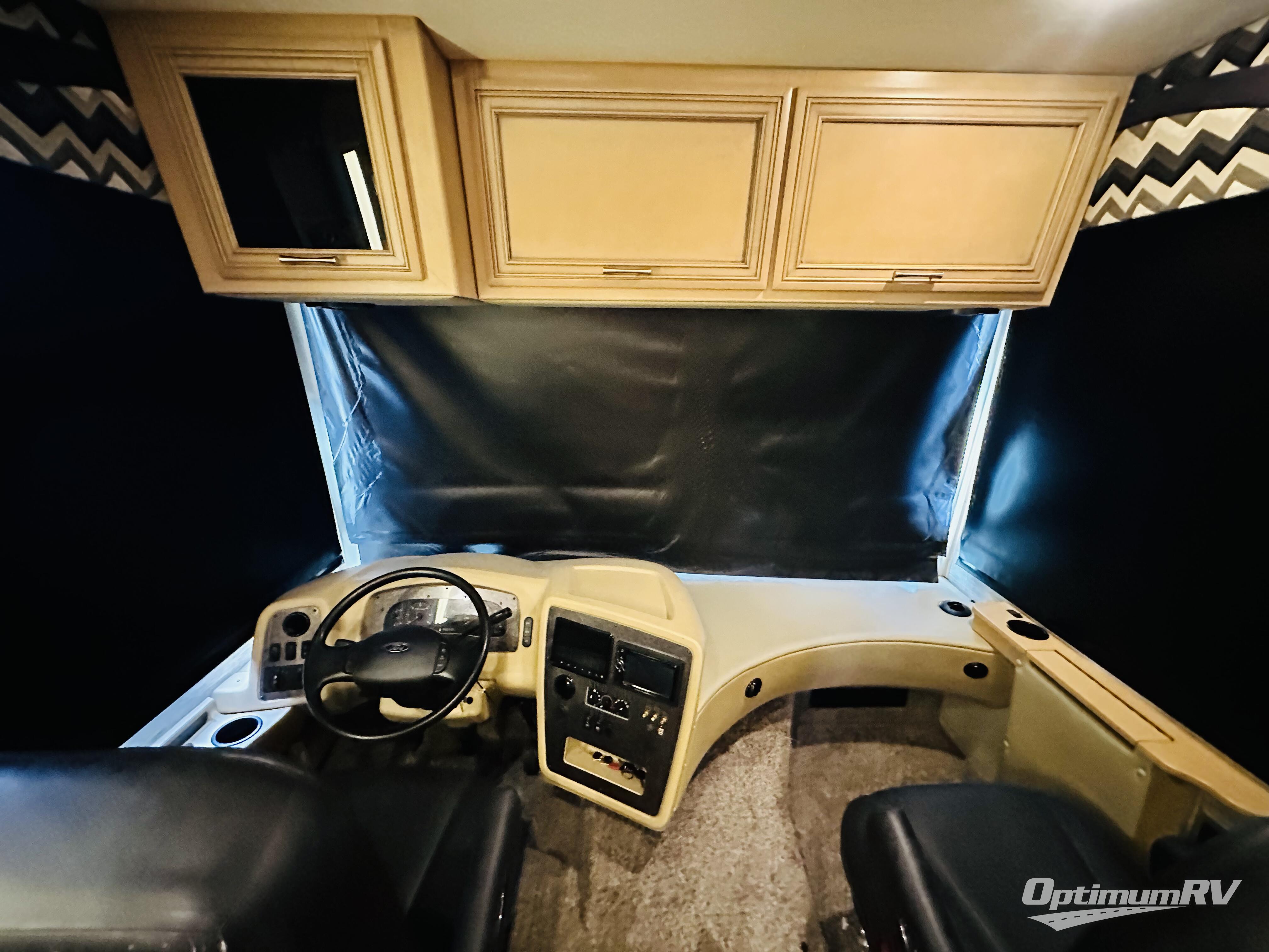 As you enter the motor coach, to the right is the driver and passenger's chairs that rotate to provide more seating in the living and kitchen area. There is additional storage above the cab.
