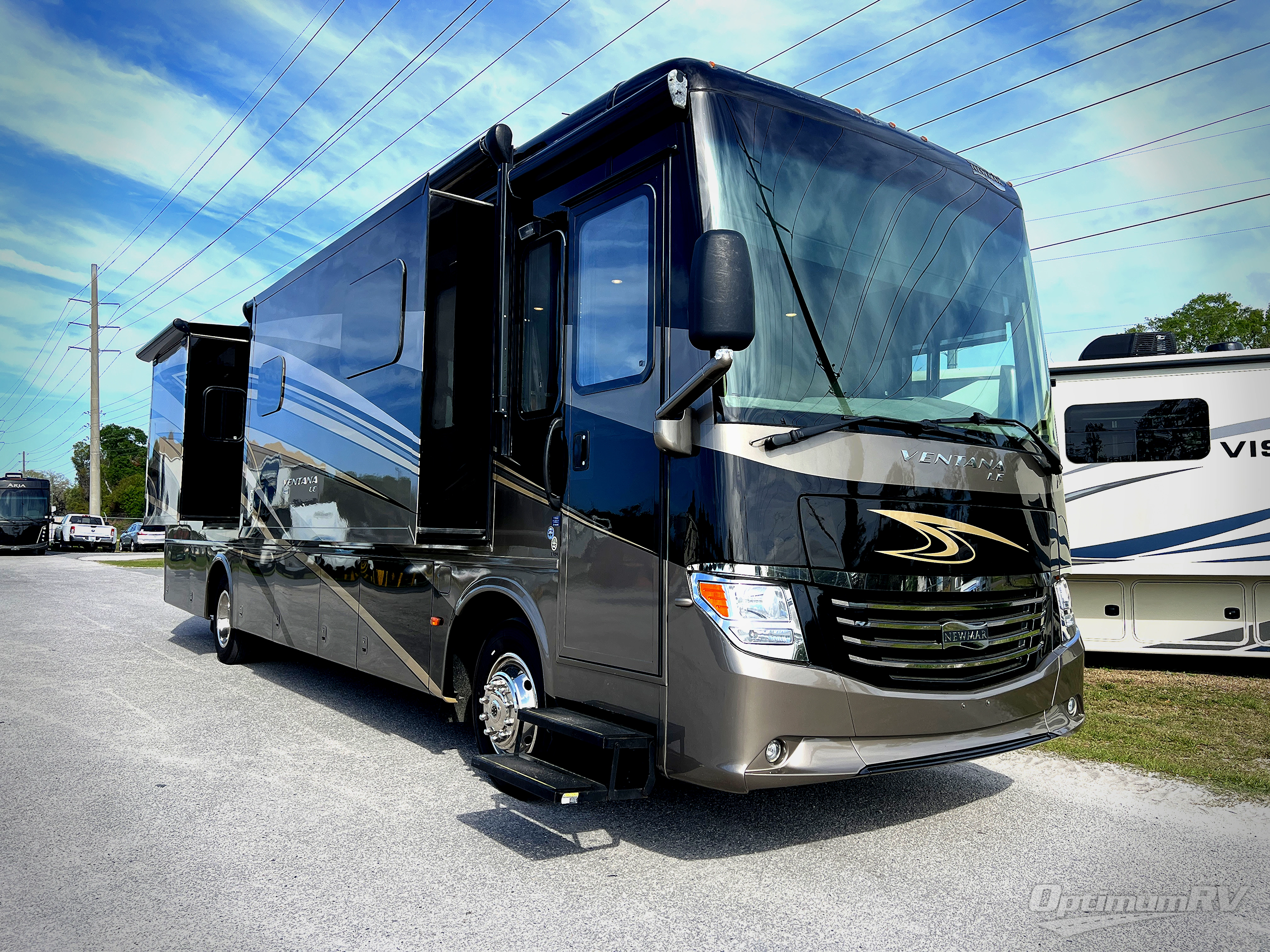 The Ventana 3709 class A diesel motor home by Newmar features a full wall slide, a rear bath, a half bath, plus much!