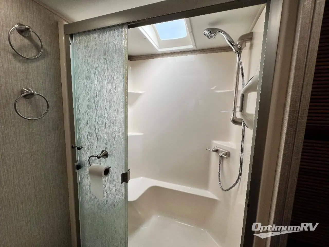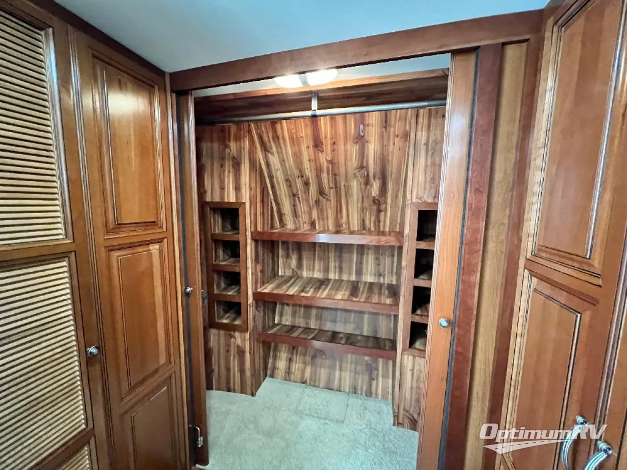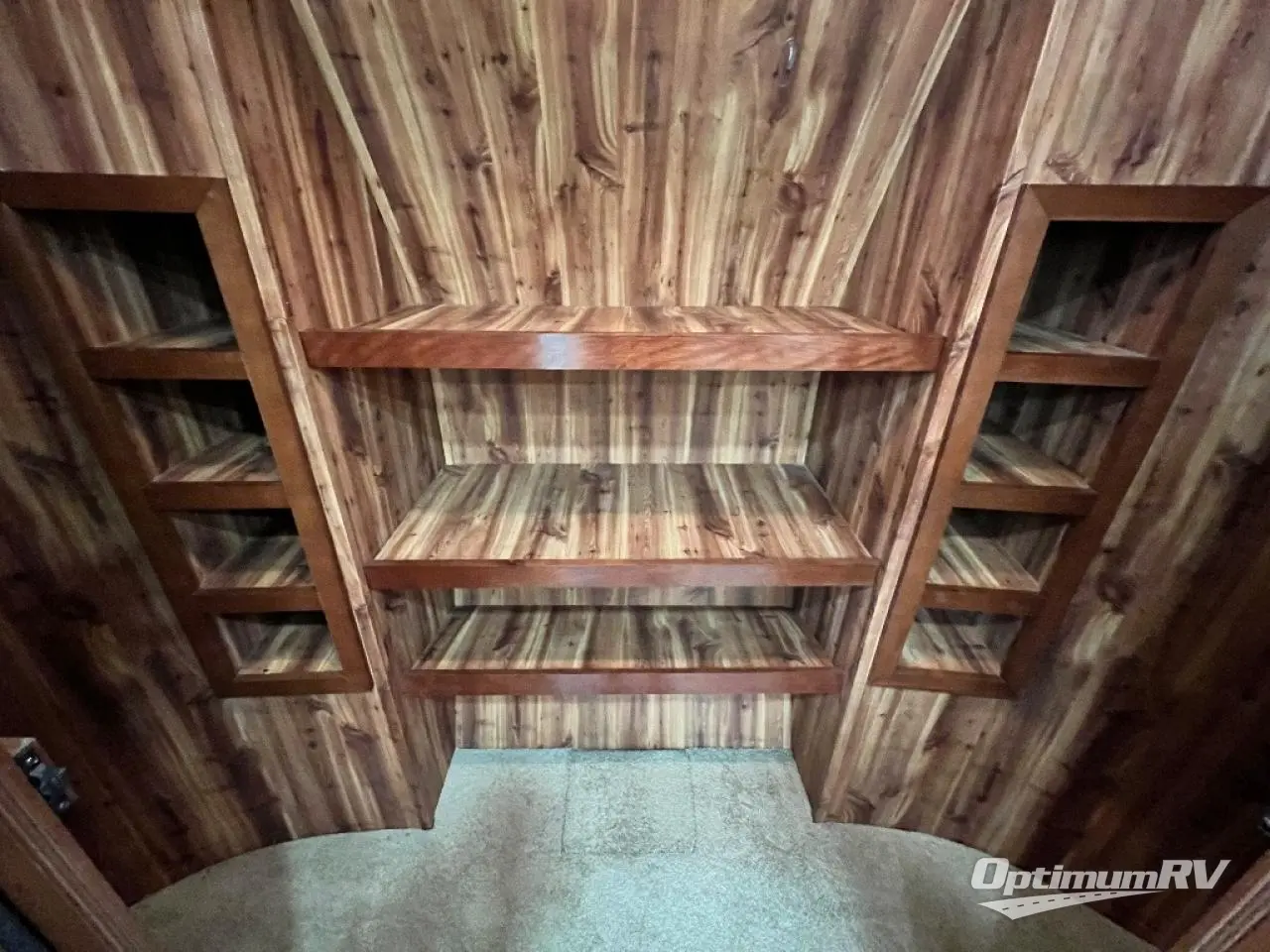 As you enter notice the handy closet just to the right of the door. As you continue right heading up the steps you will see a King bed slide with nightstands on your left, and an entertainment center with 39" LED TV with a dresser on either side along the curb side wall on your right.