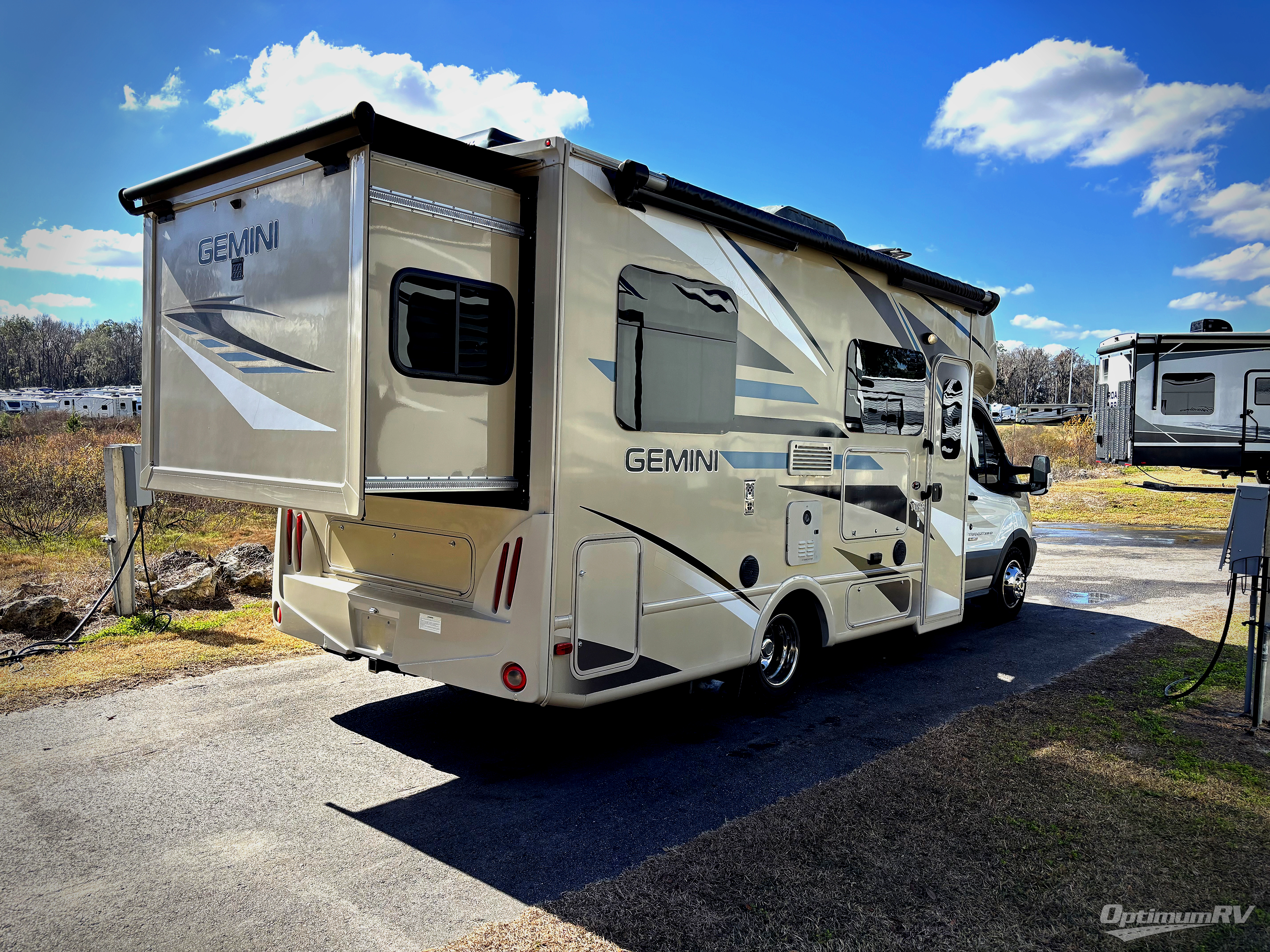 Travel comfortable in this Gemini class C diesel motorhome by Thor Motor Coach. Model 23TR features all the amenities needed to enjoy traveling with sleeping and dining accommodations for three or four, plus a complete bath, and more!