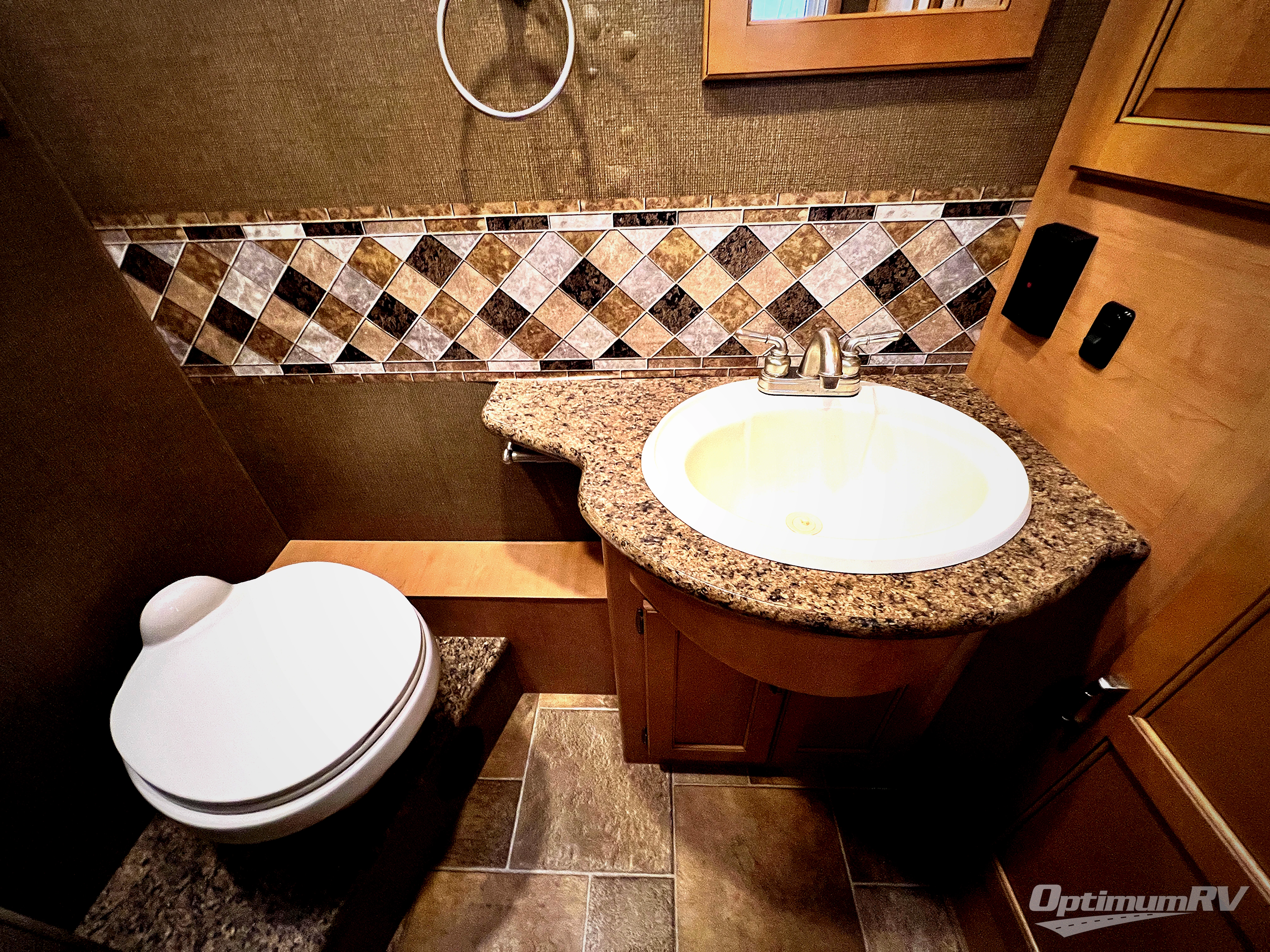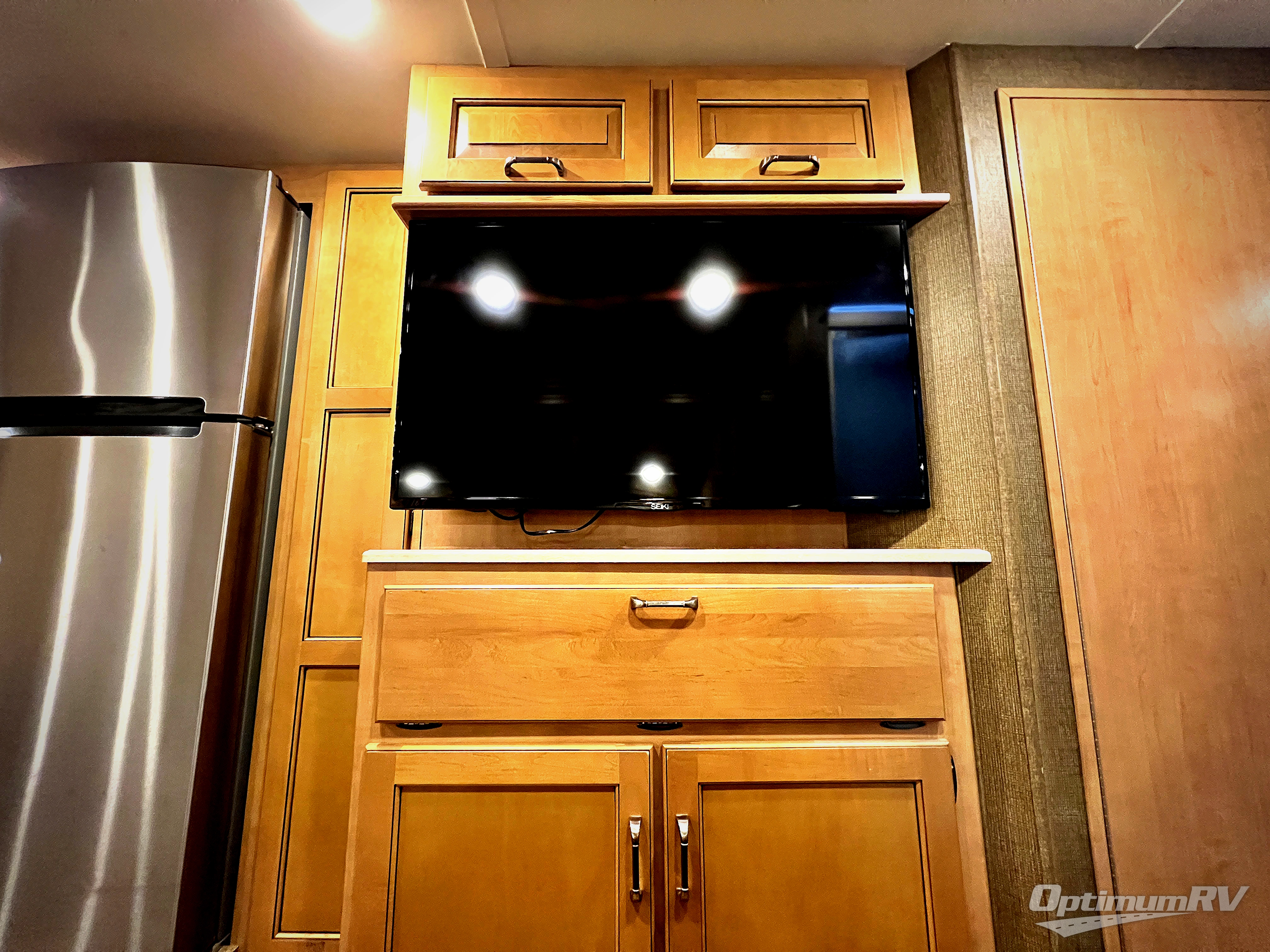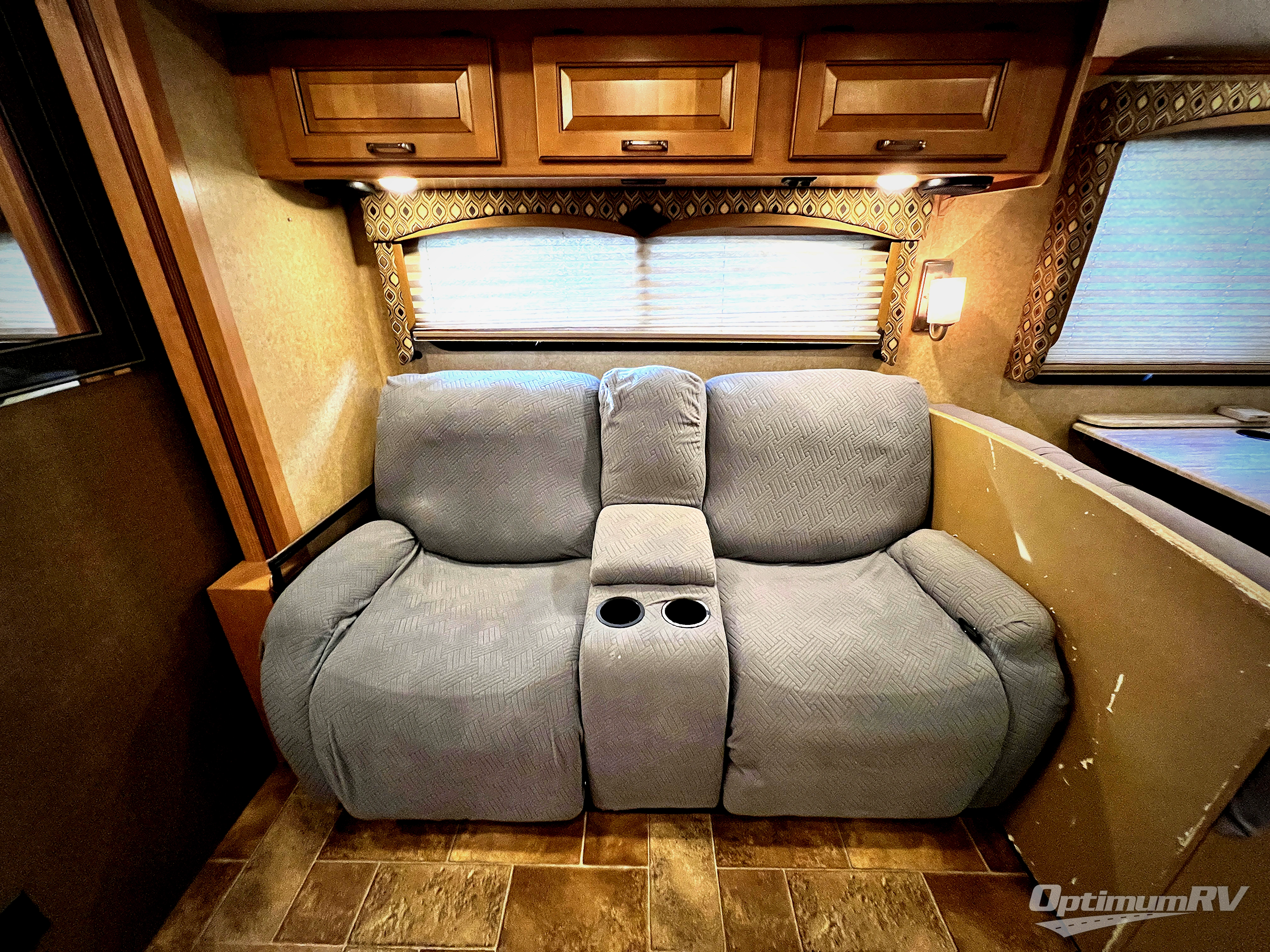 Step inside model 35C and see just how convenient your next road trip can be. There is a slide out dream dinette and theater seating for two opposite the entry door. With overhead storage above the theater seating, and two sets of seat belts, all of your guests and cabinet items will be secure while traveling. There is also a drop down overhead bunk above the cab area for added sleeping space if needed as well. The convenient coffee table between the captain's chairs allows for more table top space for just about anything. You can also choose a sofa with air bed in place of the theater seats if you like. Enjoy the 40" LED TV along the outer bathroom wall.
