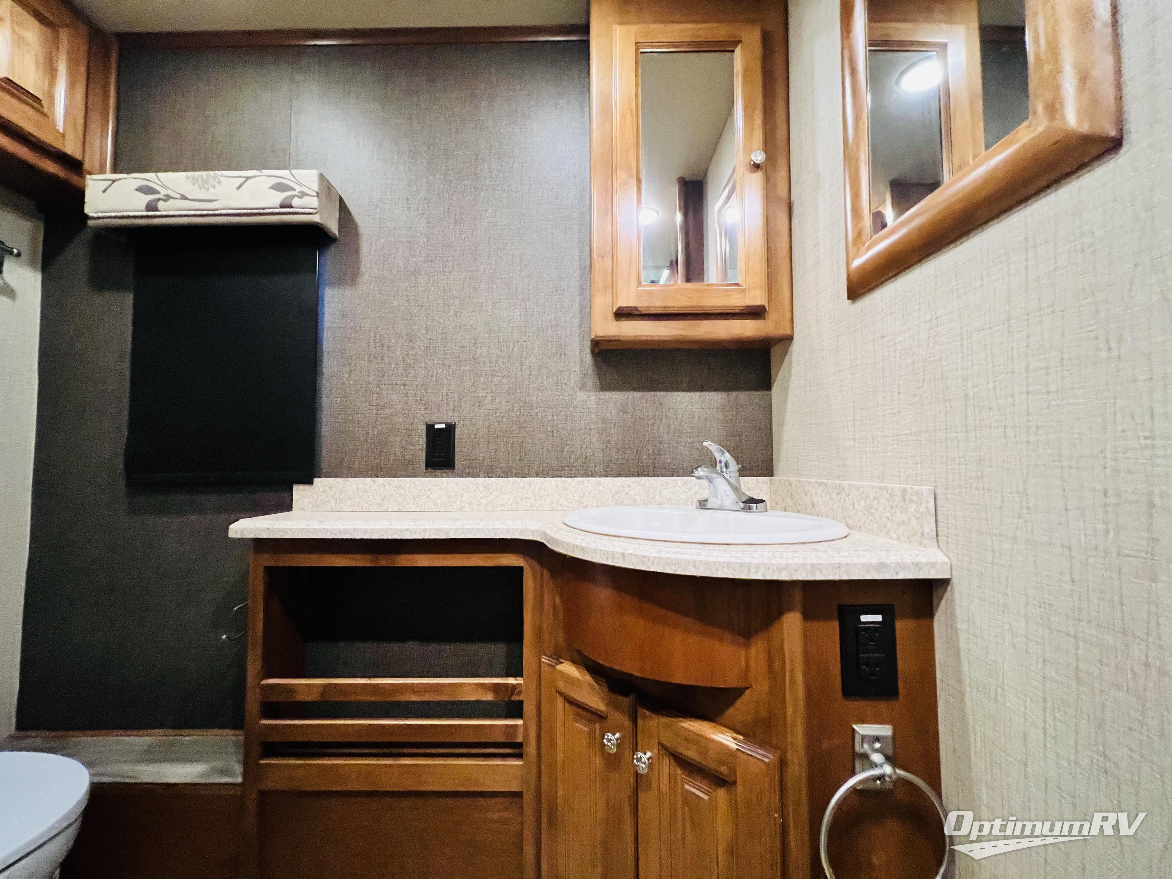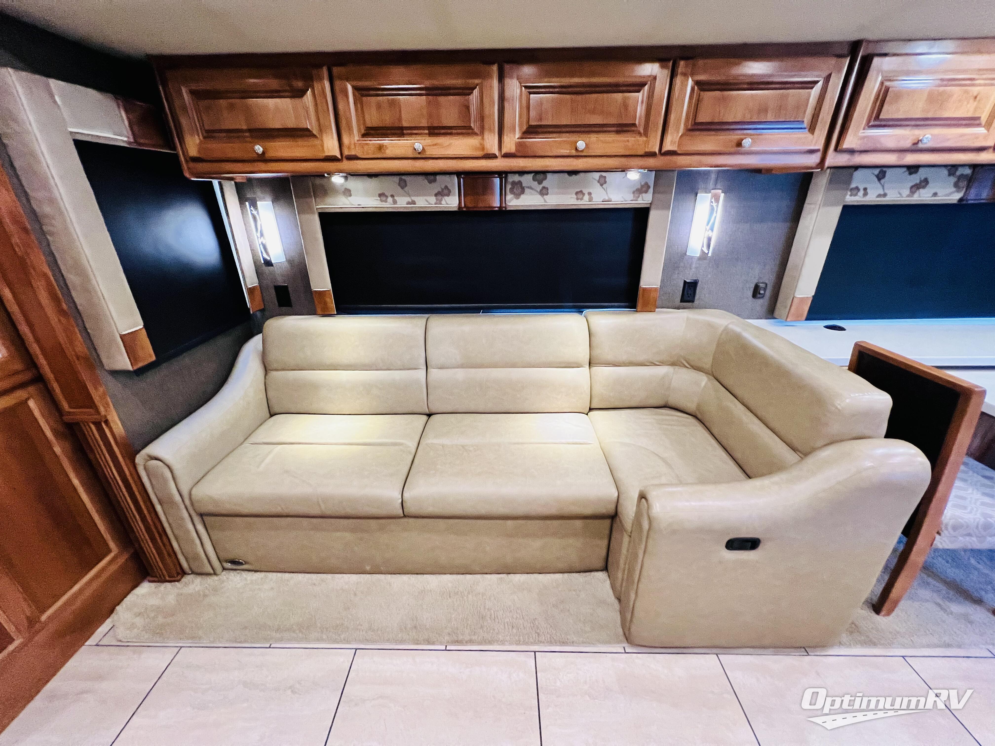 On the right side find a booth dinette and sofa with overhead cabinet. You can even choose have an optional dinette with computer station and a l-shaped chaise sofa bed with coffee table. A standard TV is mounted along the outer bathroom wall for perfect viewing from any seating in the room.