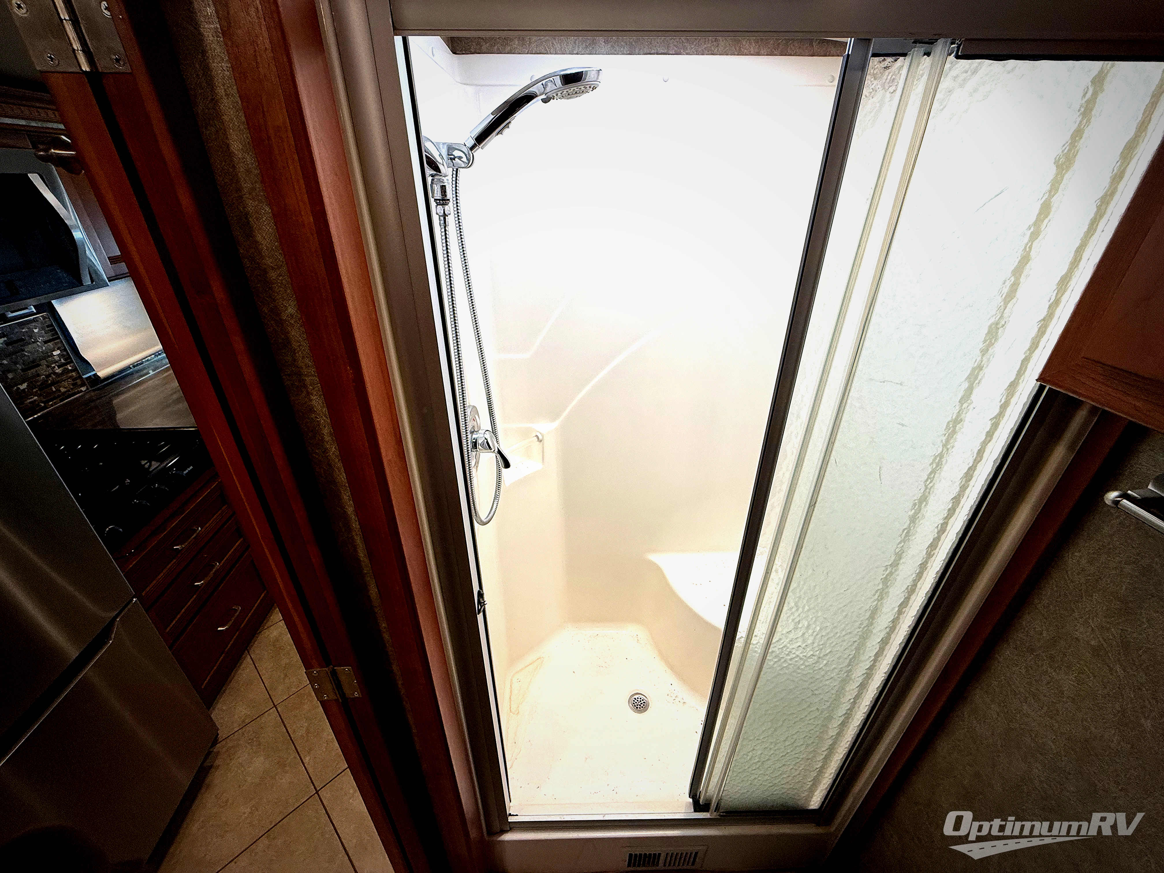 The complete bath is also centrally located and provides a shower, toilet, and vanity with sink, plus overhead storage.