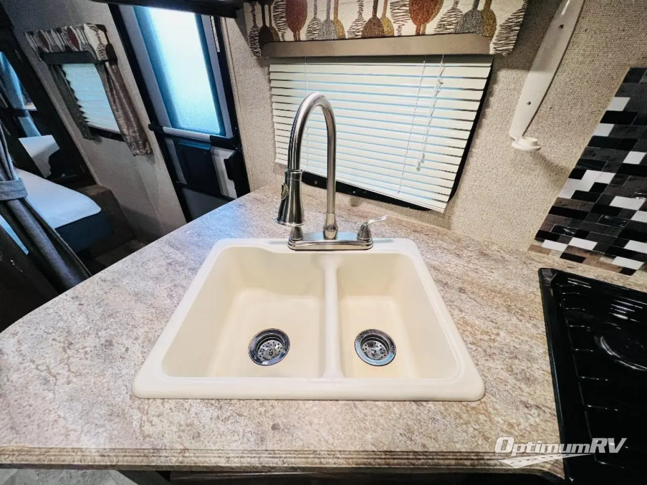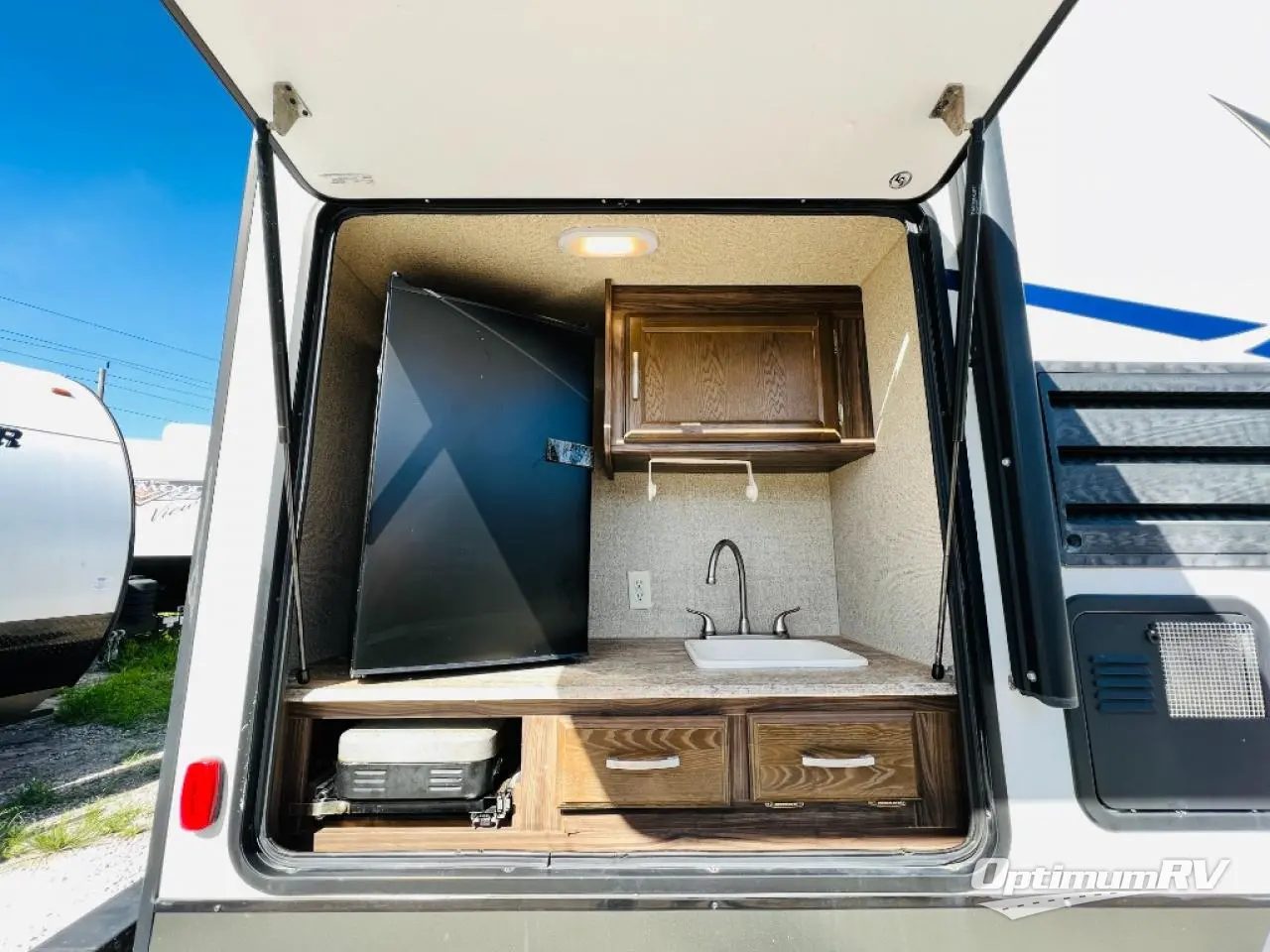And, if you want to enjoy your time outdoors you have the convenience of an outdoor kitchen near the rear of the trailer. It features an outside refrigerator which is perfect for stocking refreshments so you don't have to keep going inside while you enjoy a little fresh air. There is also a small sink for easy cleanup too, and more!