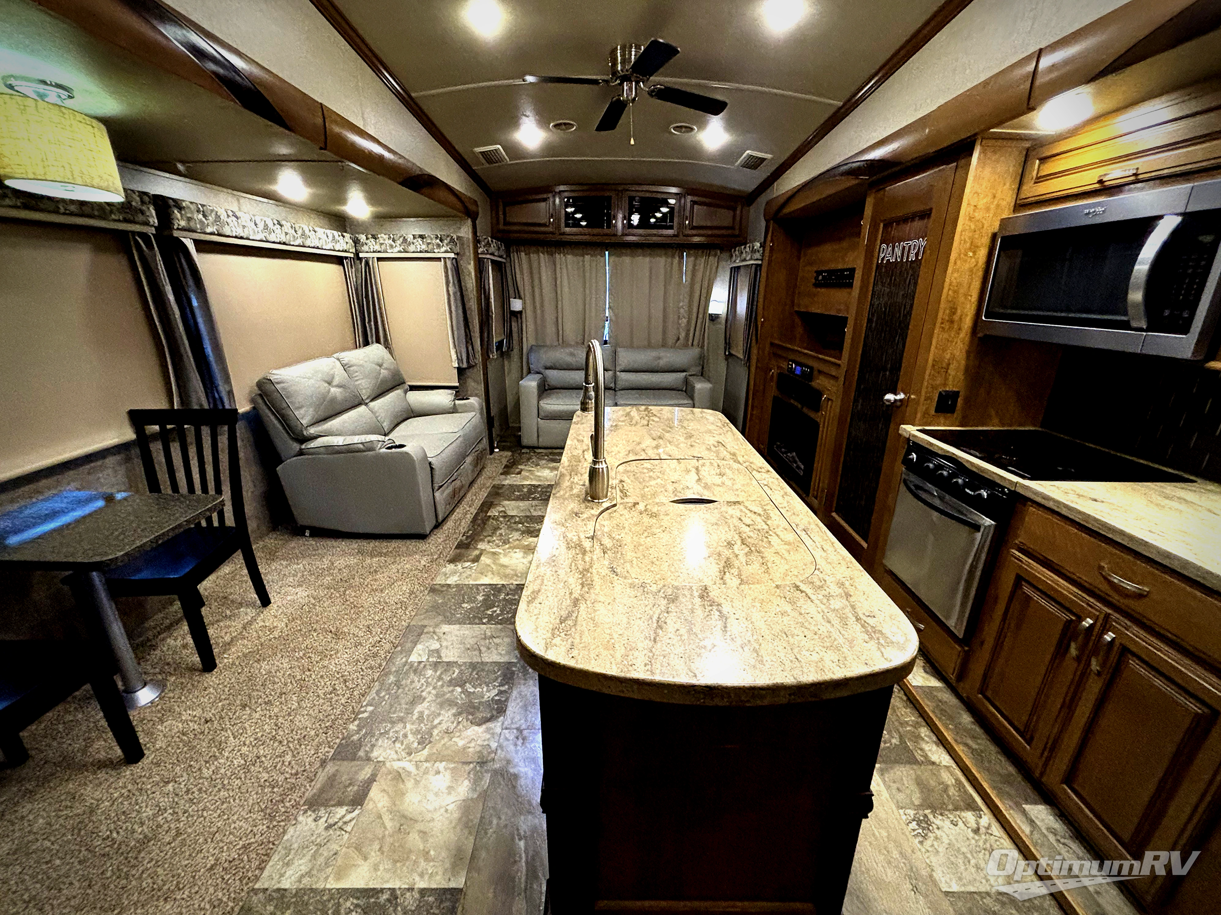 There is no doubt you will be comfortable inside this Cedar Creek Hathaway Edition fifth wheel model 38CK2 by Forest River. This model features triple slides for added space, a rear living layout, as well as a convenient kitchen island, fireplace, and much more!