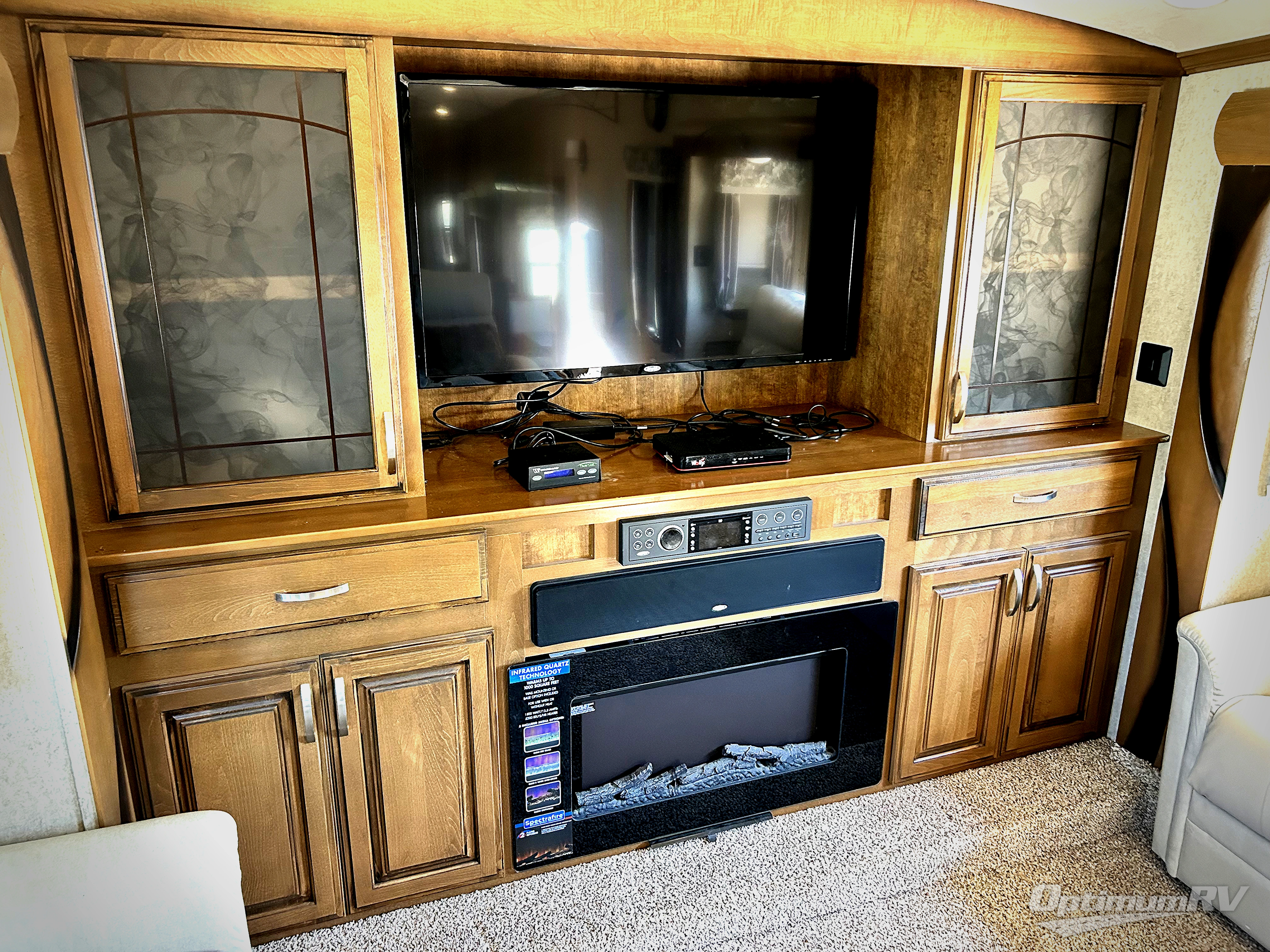 Inside the living room you will feel like you are home. There are double slides facing on another, each featuring a tri-fold sofa, plus theater seats and a shelf can be found along the inside wall. This is a great gathering space with a full front wall entertainment center and fireplace.