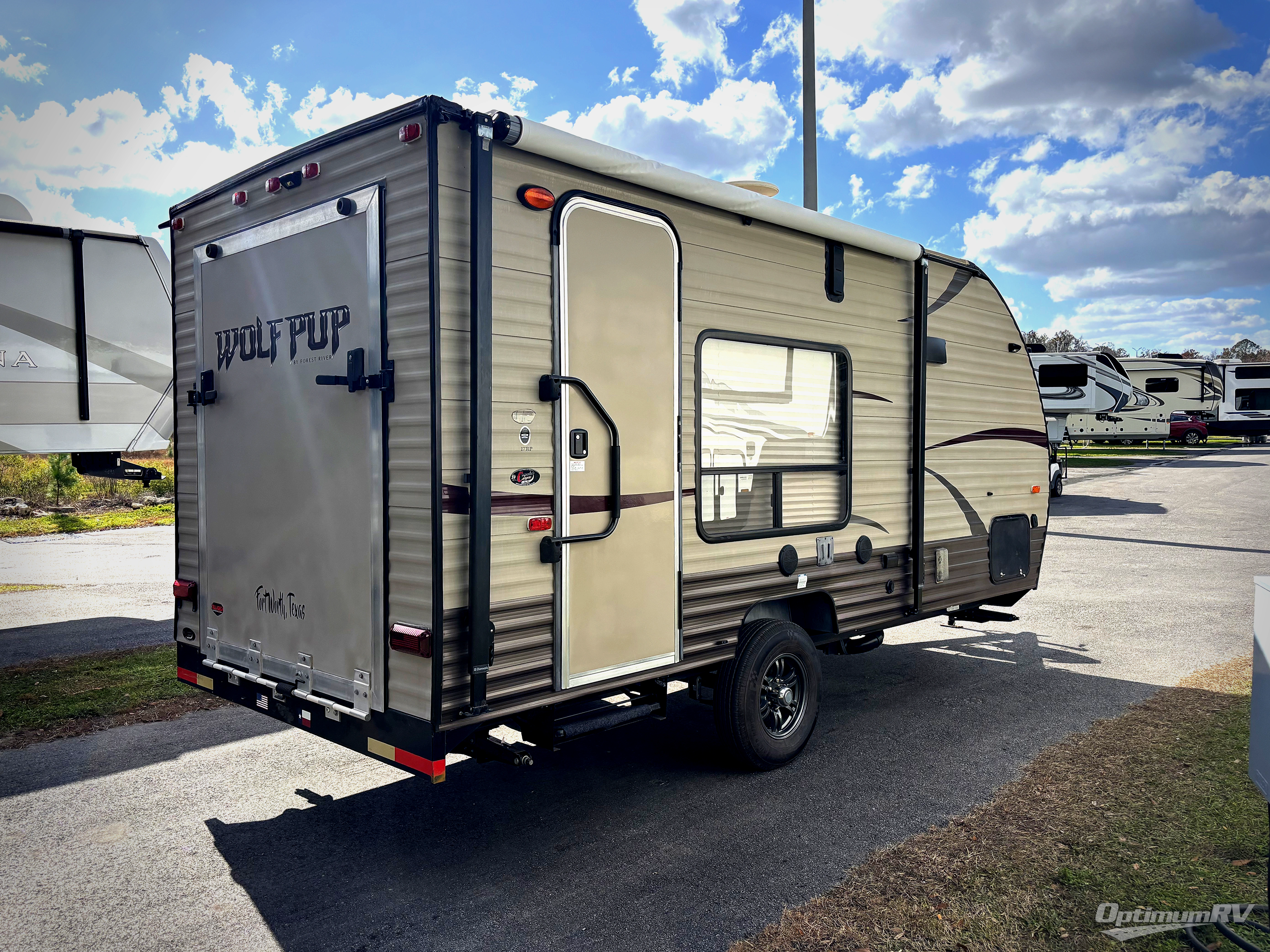Enjoy your toys while on an RV adventure in this Cherokee Wolf Pup 17RP toy hauler travel trailer. This toy hauler features a 59" x 71" rear ramp door to the cargo area.