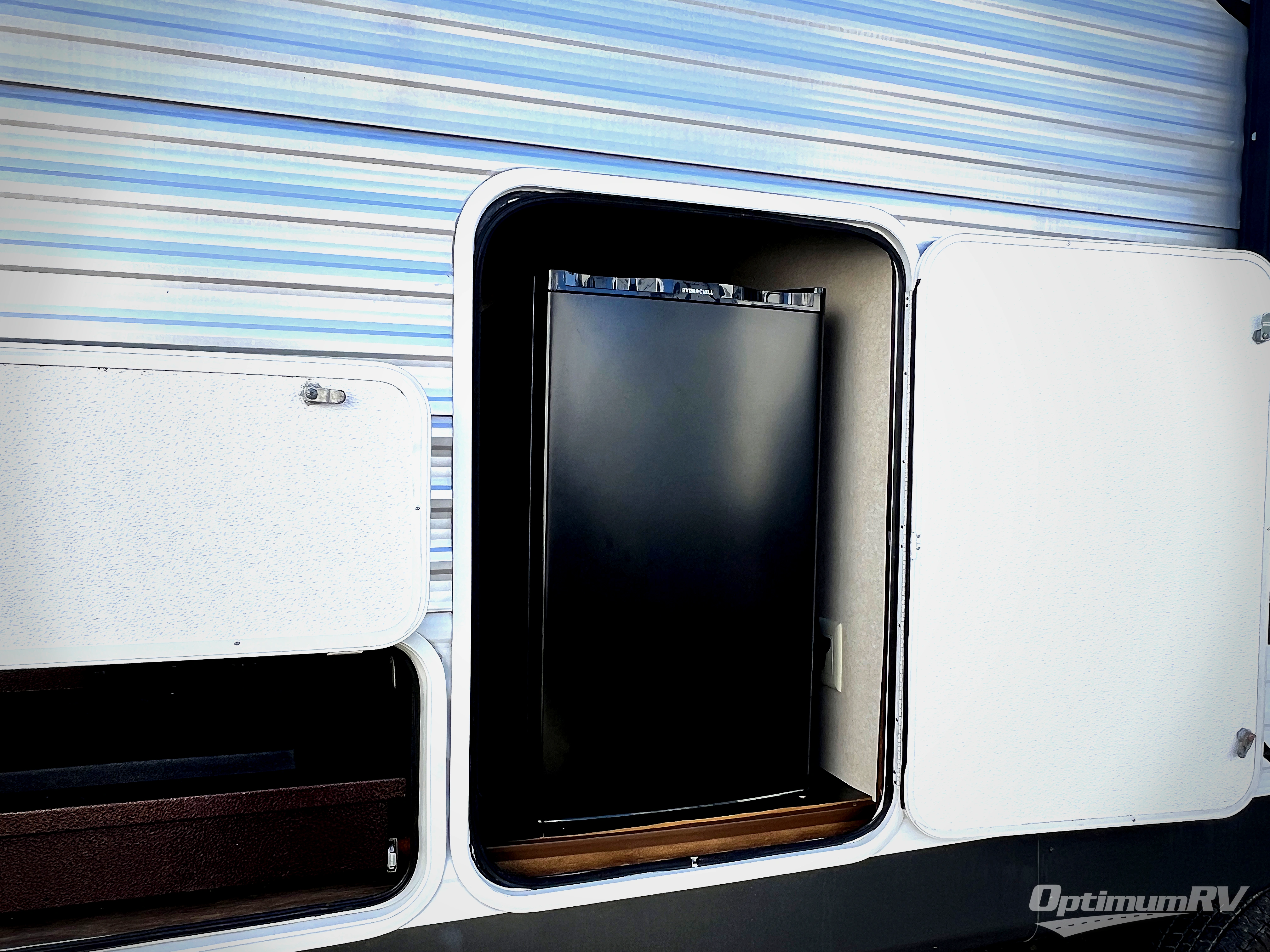 Heading outdoors you are sure to enjoy relaxing in the shade under the 18' awning. There is a sliding sink baggage door and mini refrigerator baggage door, plus there is outside storage in the pass-through compartment near the front.
