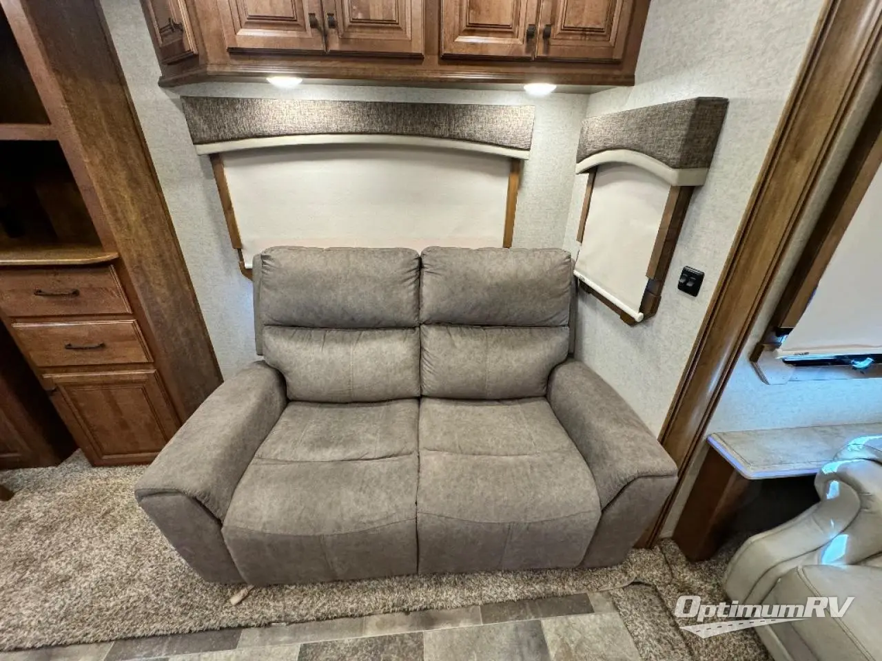This Landmark 365 Orlando luxury fifth wheel offers a spacious get-a-way retreat with triple slide outs for added space, a rear living layout, and convenient kitchen island for a home like feel!