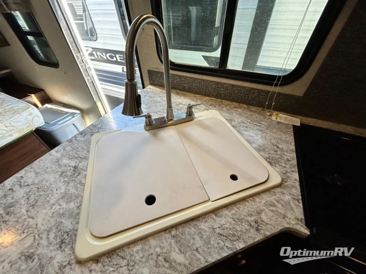 The cook in the family will also enjoy the exterior camp kitchen featuring a sink, refrigerator, and counter space which is convenient for when you are spending time outdoors.
