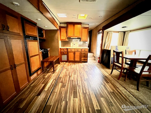 This Open Range Light fifth wheel model LF297RLS by Highland Ridge RV features triple slides for added interior space, a convenient portable dinette, and a rear living layout.