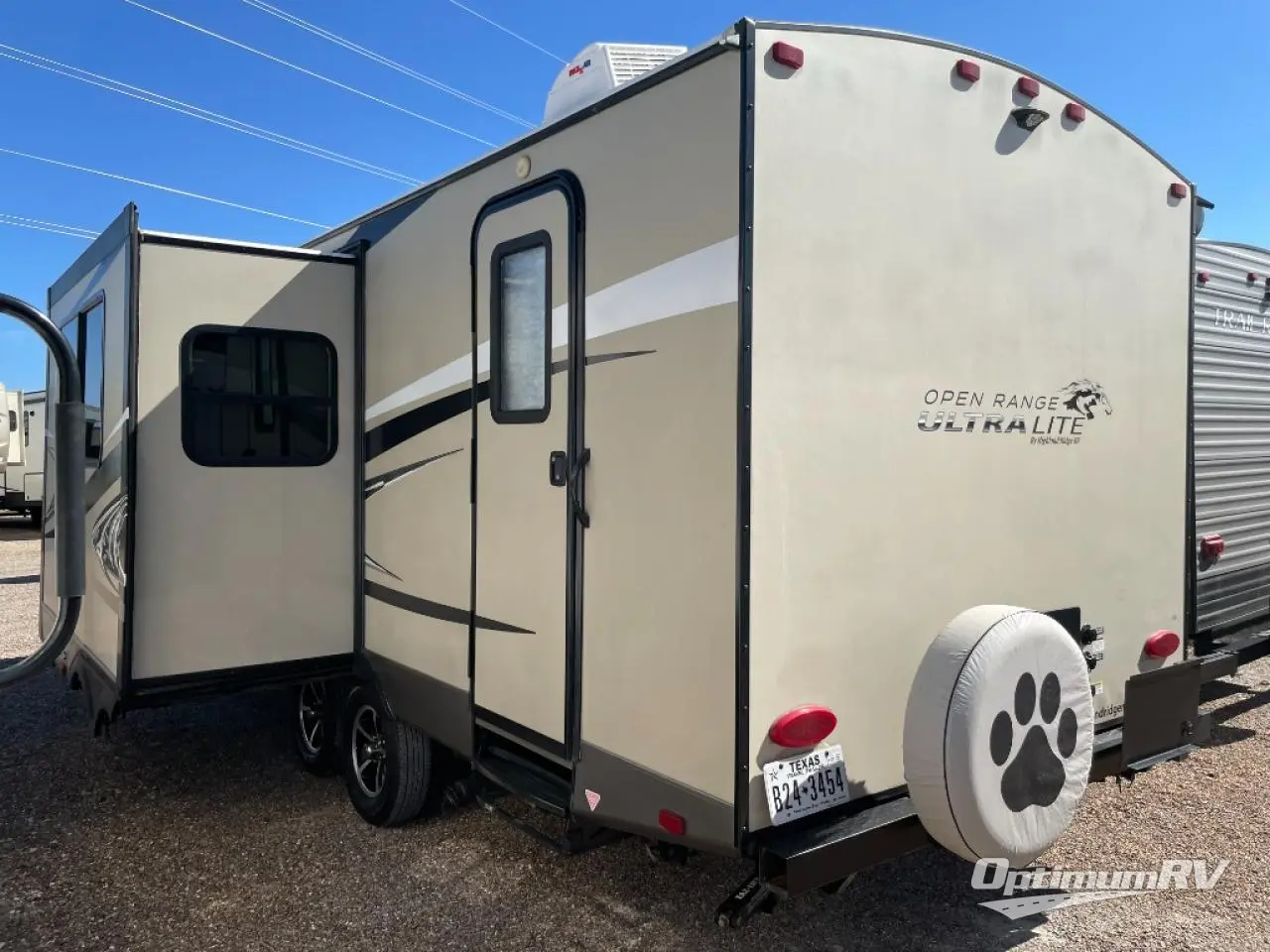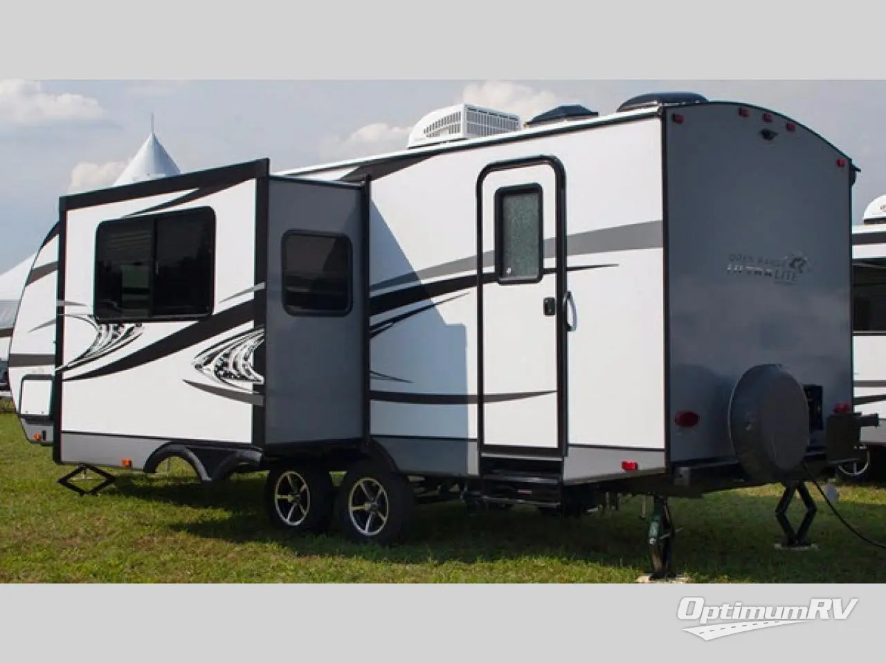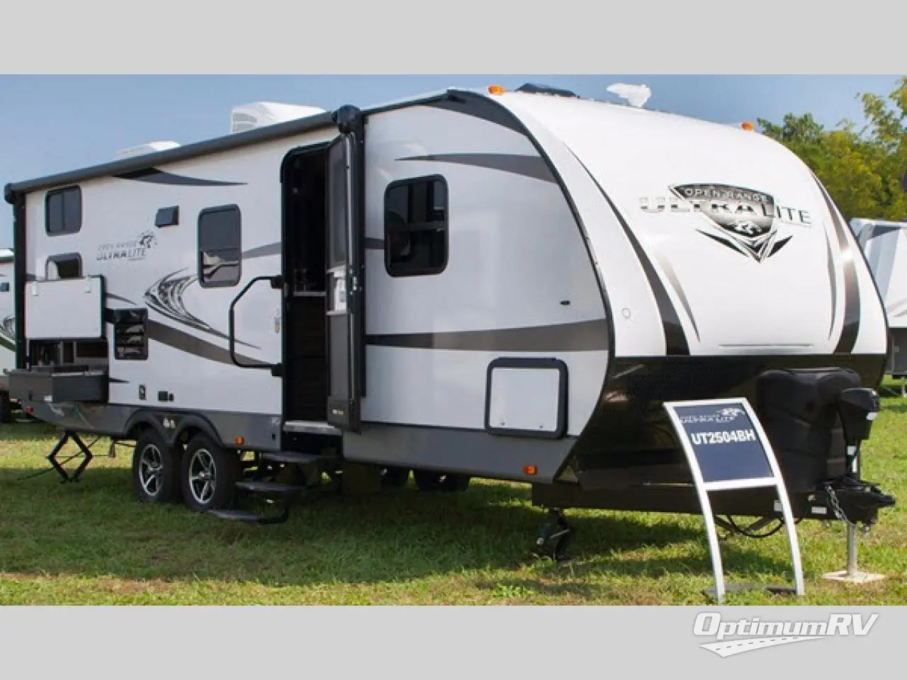 This Open Range Ultra Lite travel trailer UT2504BH is perfect for the larger family. This model features a set of double bed bunks, a large u-shaped dinette slide out, an outside kitchen, and unique dual entry doors with one entry along the curb side and the second entry along the road side!