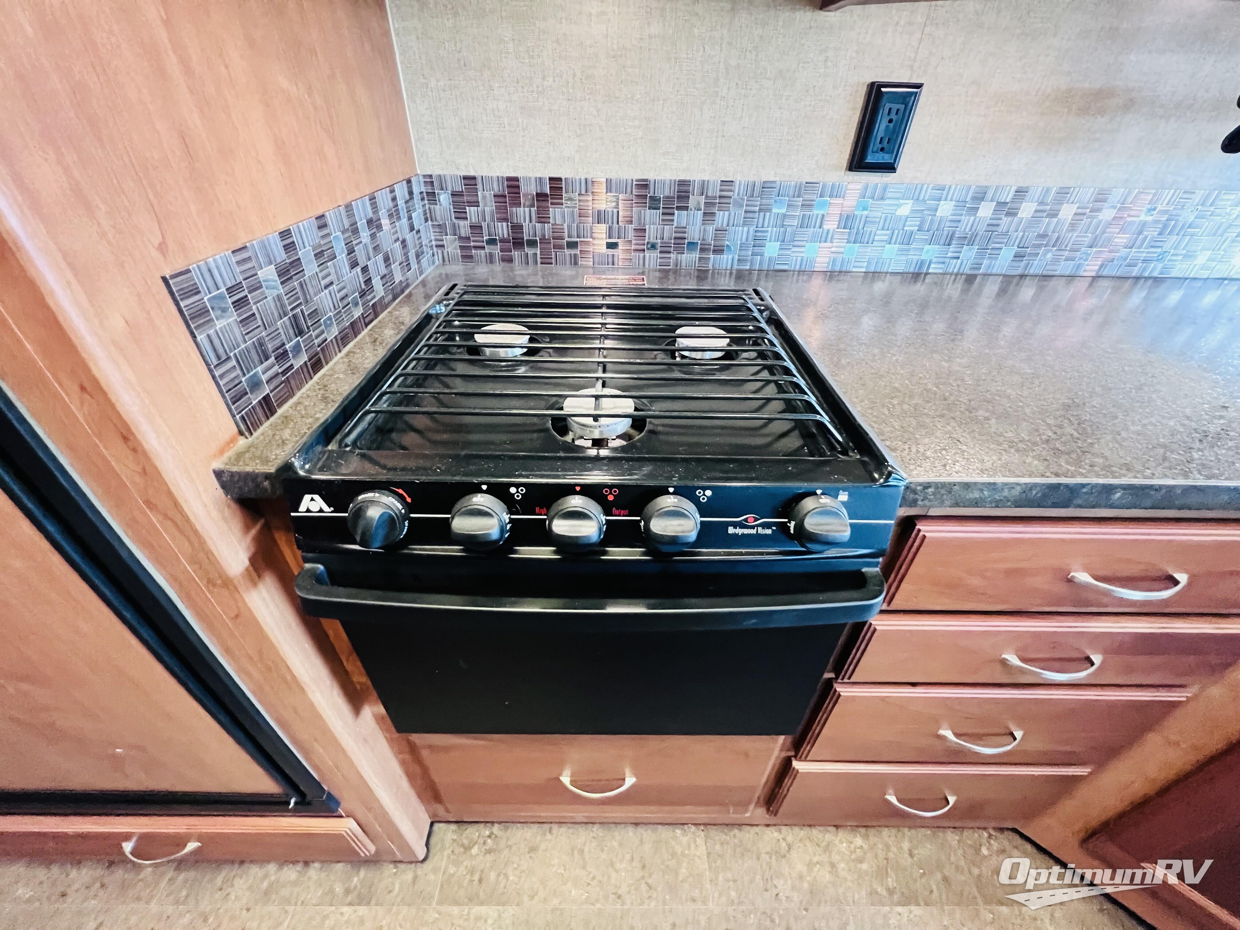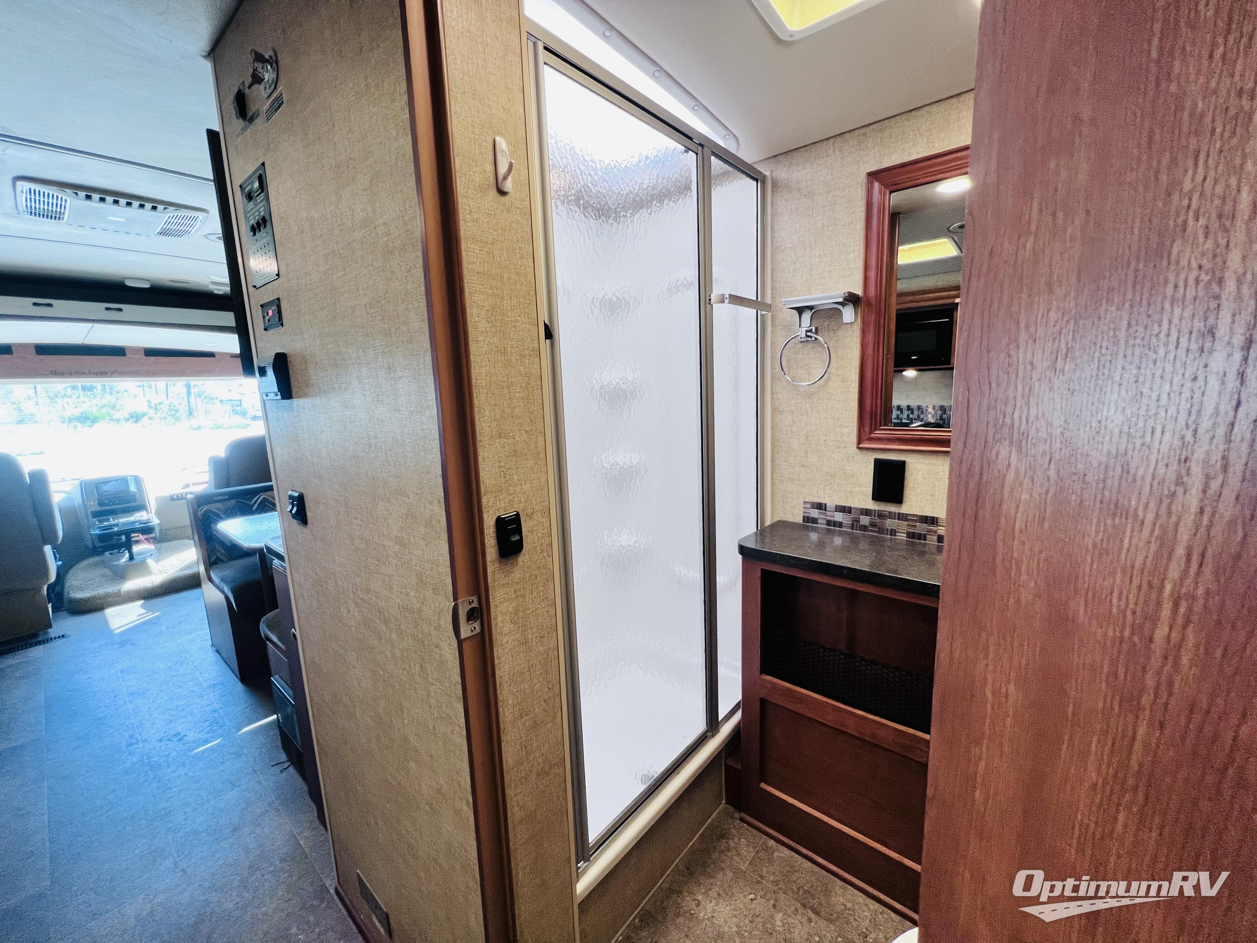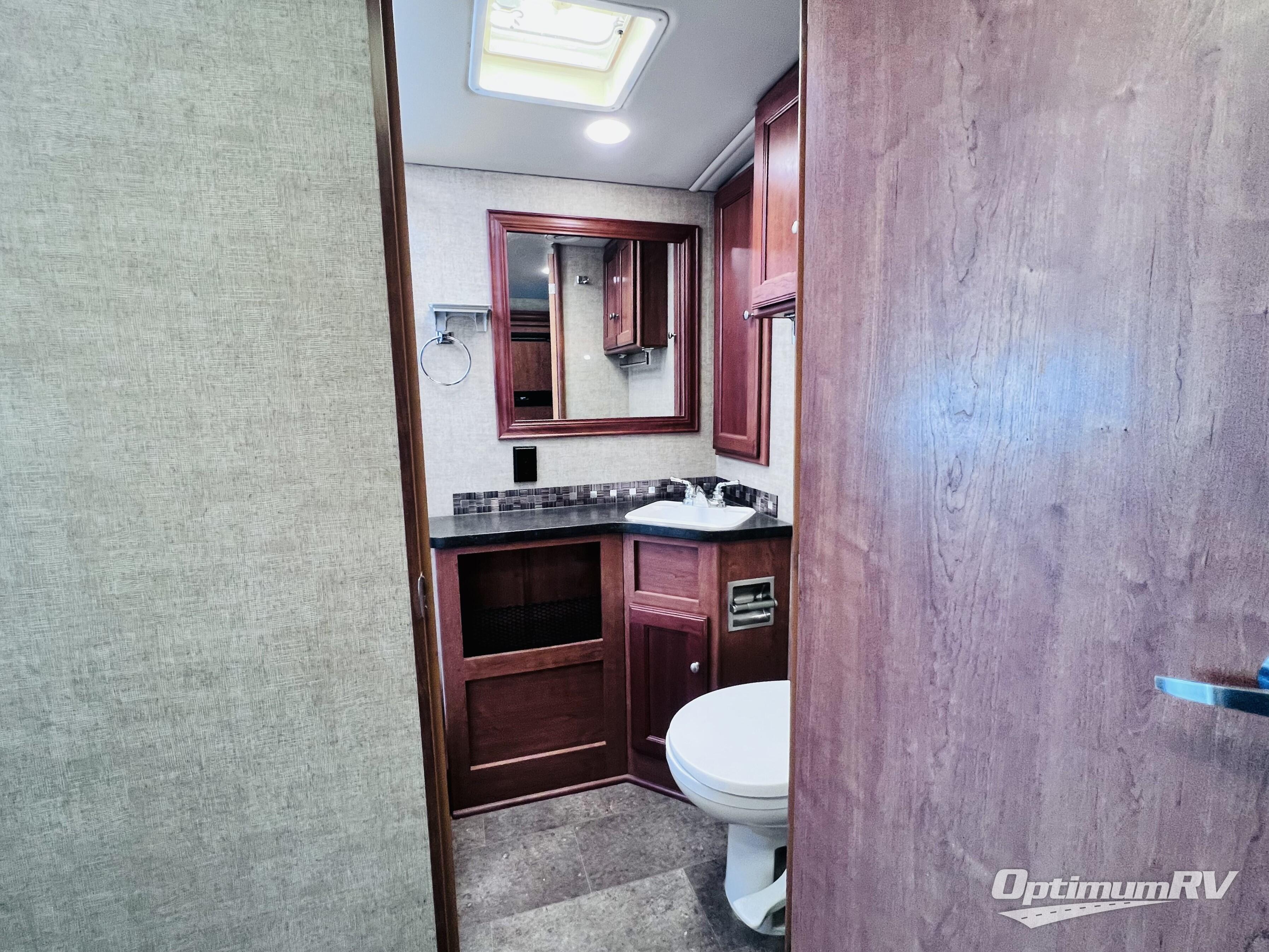A complete bath adds another travel convenience that makes this home on wheels perfect for all of your adventures. The bath offers a shower, toilet, and vanity with sink, plus overhead storage too.