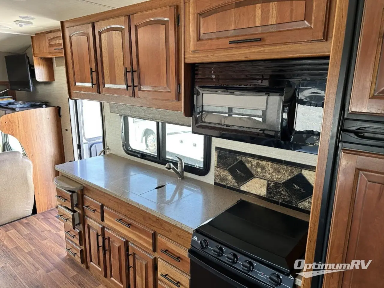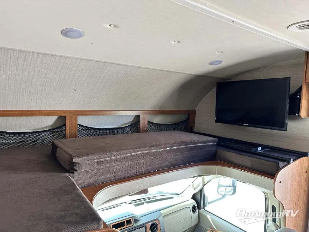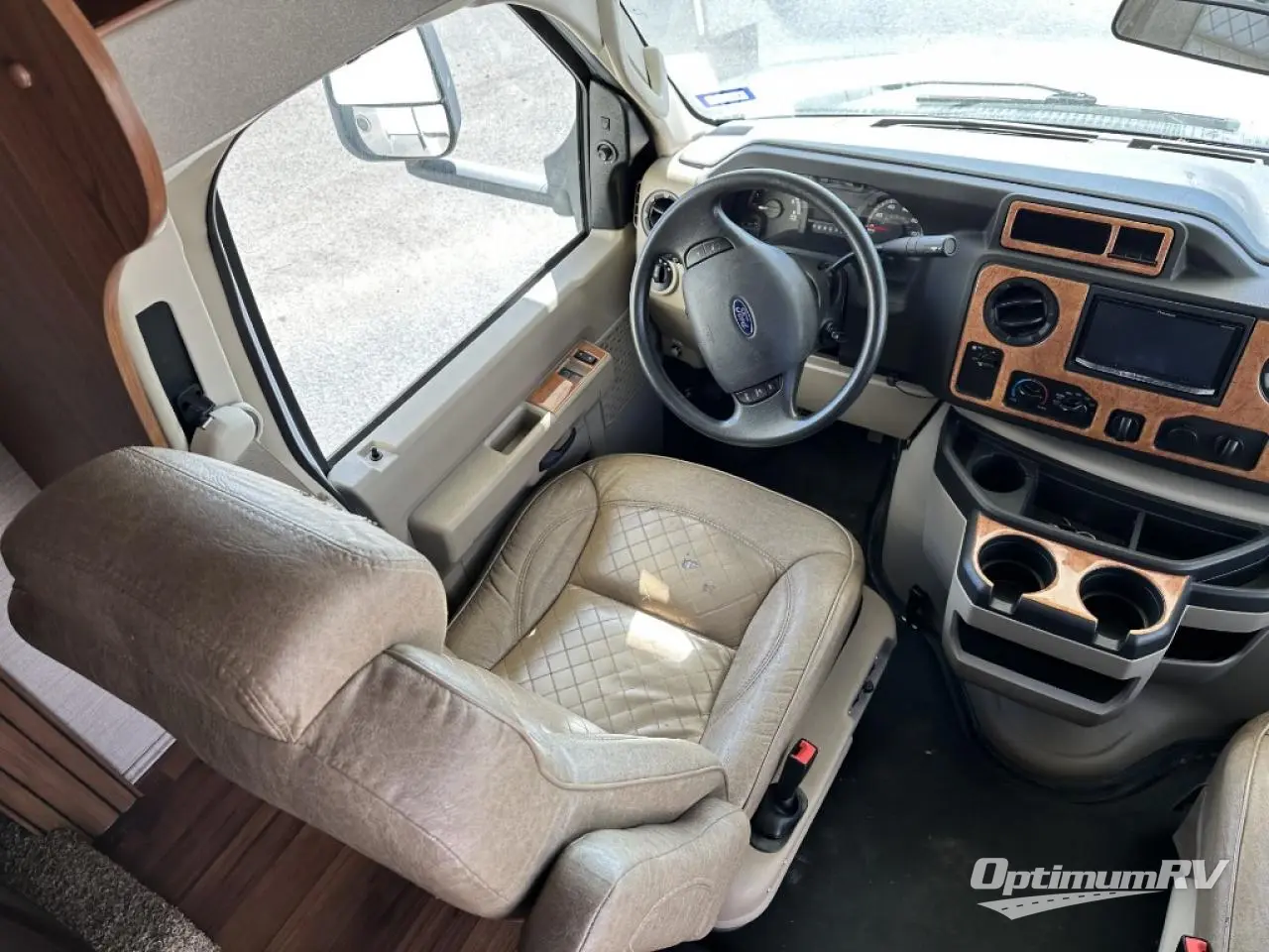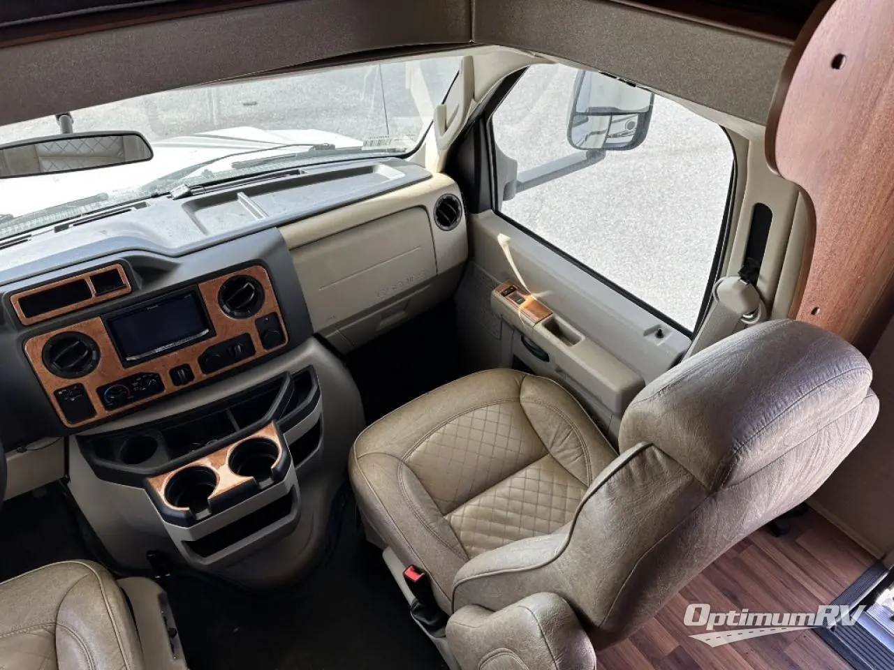 When you step inside the Greyhawk 29MV class C gas motor home by Jayco, you will be impressed with how well the floorplan space is used. To the left of the entrance there is a counter with a pull out countertop with drawers, a double kitchen sink, three burner range, microwave, refrigerator, and a pantry. Behind the driver's seat you will find a sofa with overhead cabinets and dinette slide. Above the driver's seat is a cab-over bunk with TV overhead cabinet for extra sleeping space.