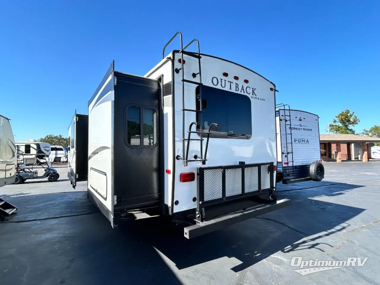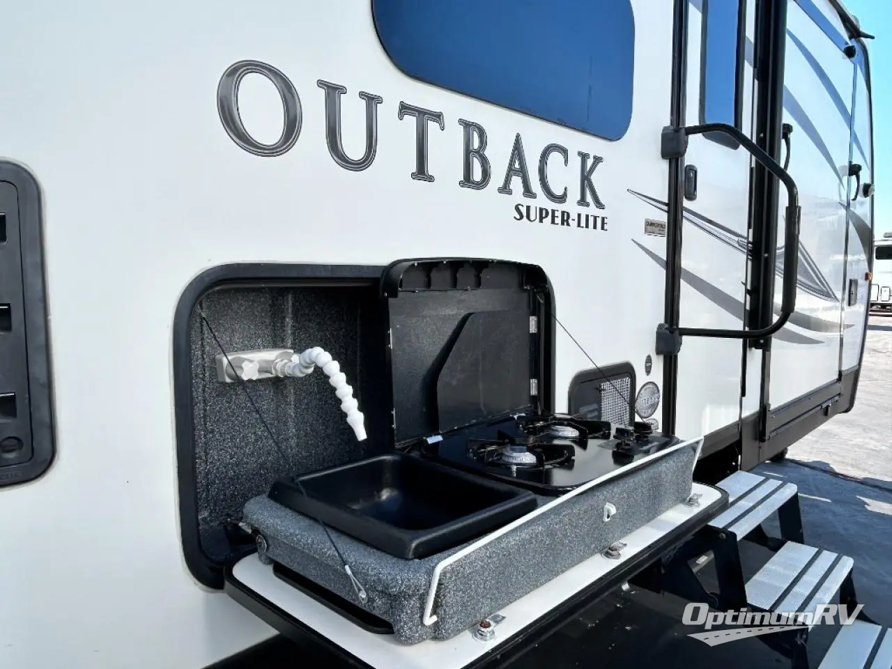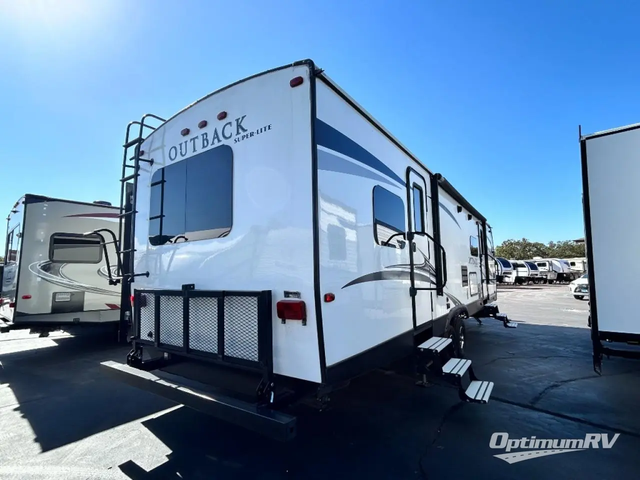This Outback Super Lite toy hauler travel trailer 324CG has everything you need to enjoy spending the weekend with family and a few off-road toys!
