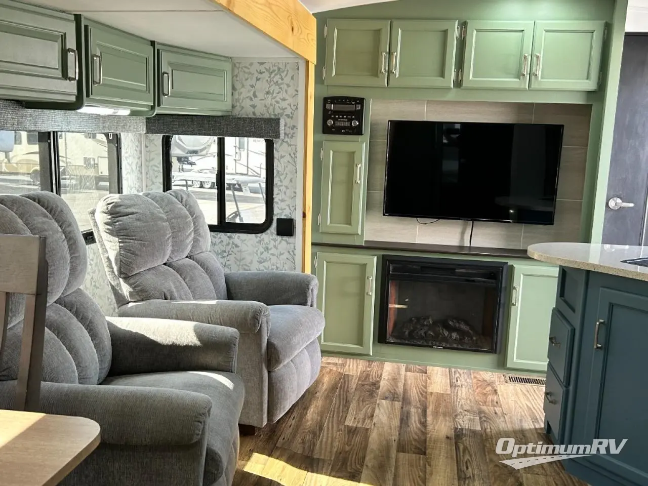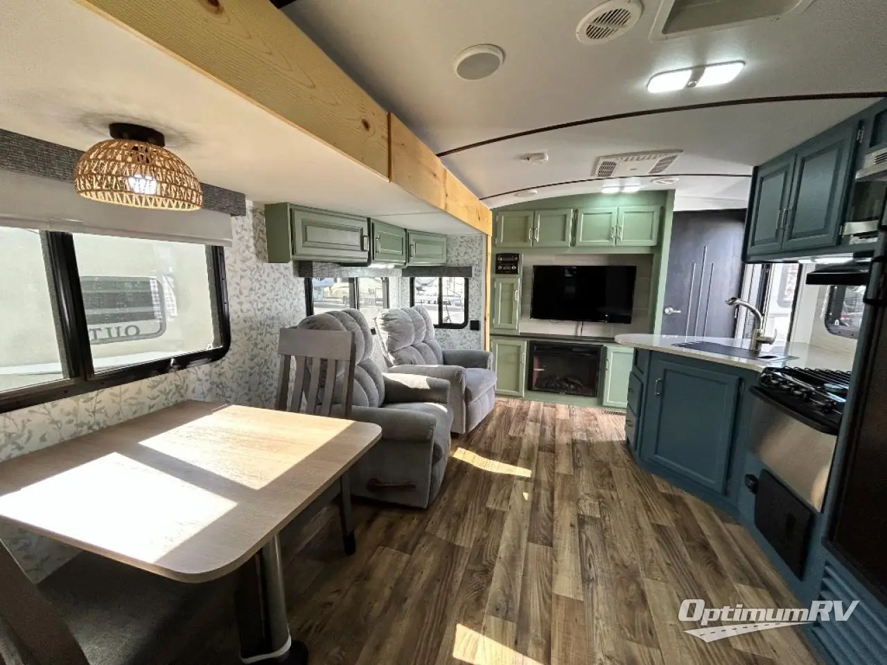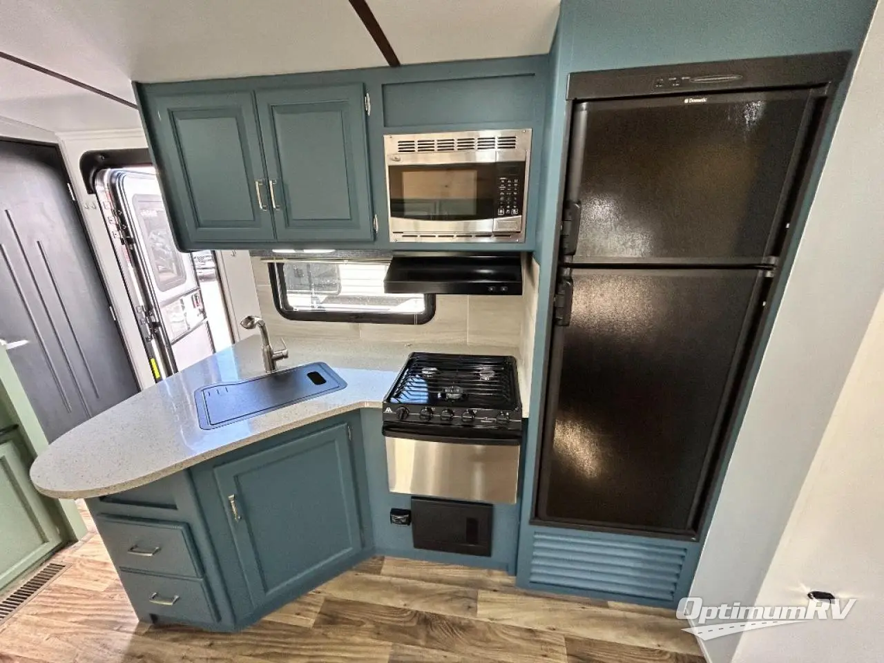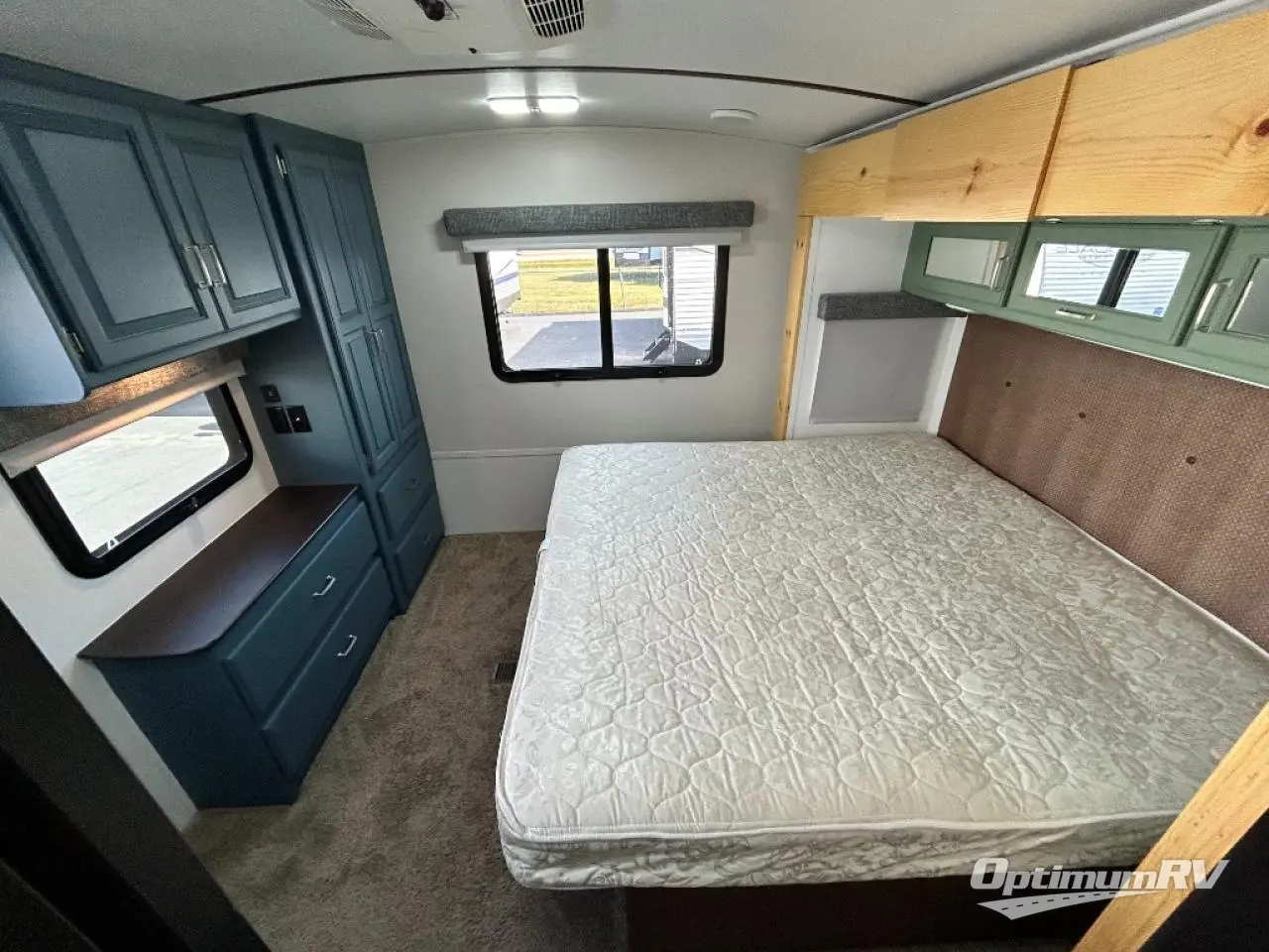 Model 324CG offers double slides, bunk beds in the front cargo room with a side ramp door, dual entry doors, a king size bed, and an outdoor camp kitchen for the chef in the family to enjoy!
