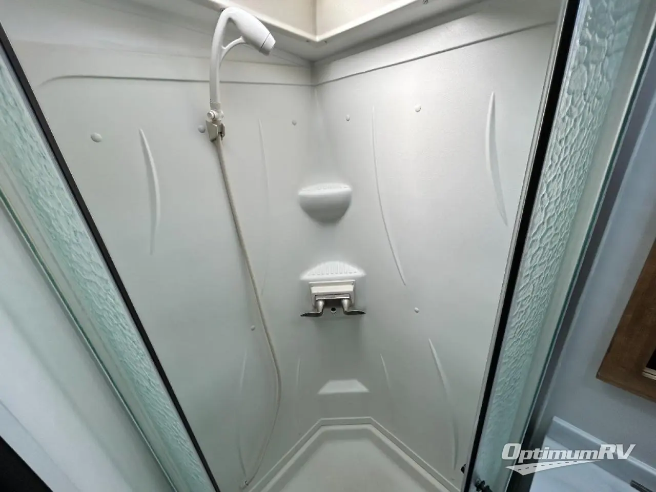 Opposite the main side entry door find a slide out sofa sleeper and booth dinette. These offers ample seating during the daytime and when you are enjoying a meal. They can also both be simply made into additional sleeping space if needed at night. There is a nearby entertainment center adjacent to the sofa for viewing easily from anywhere in the room.