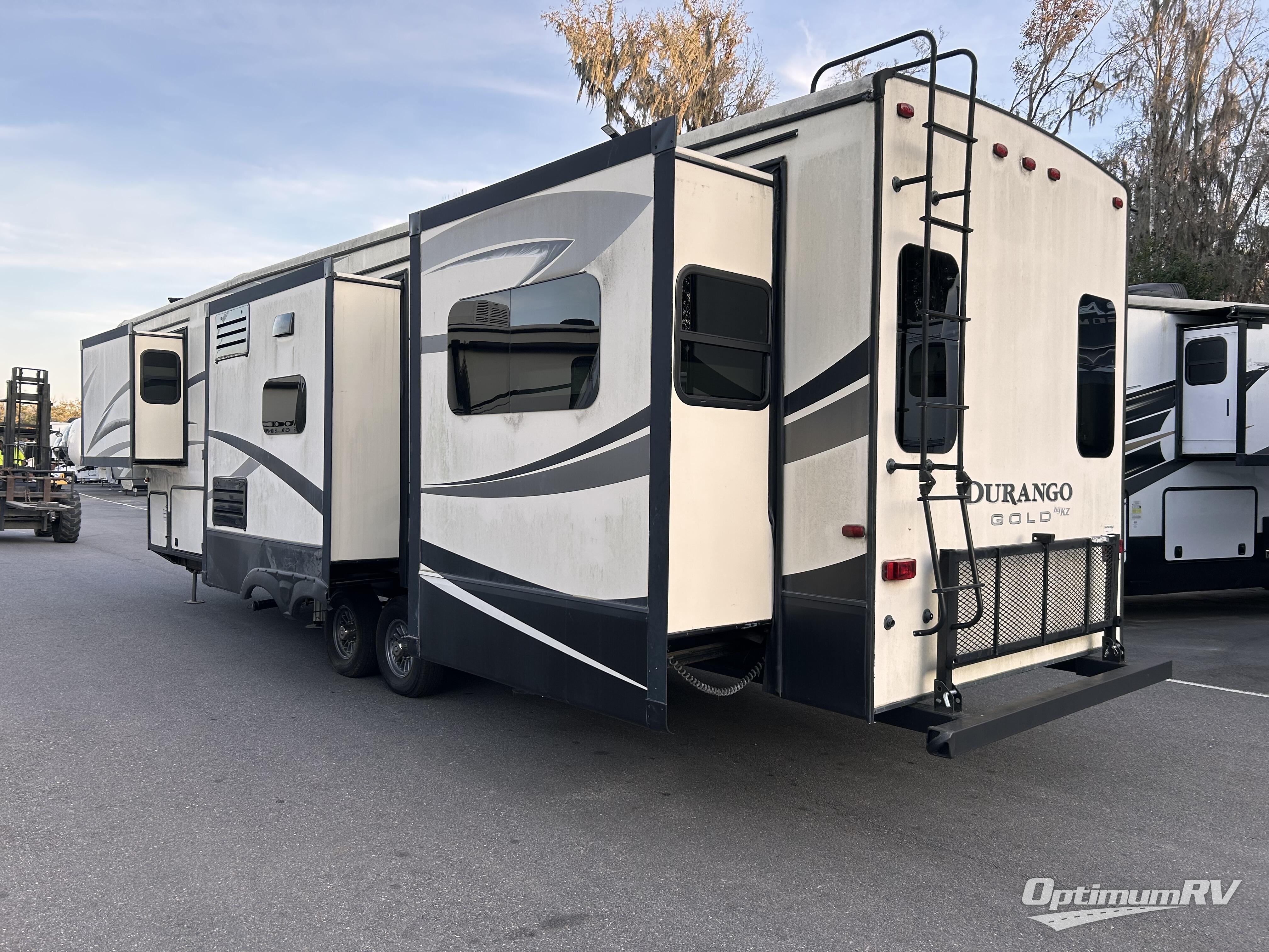 This dual entry Durango Gold G381REF by KZ has everything you need for your next trip with FIVE slides plus a rear entertainment center and living area, you can easily bring along friends any time!