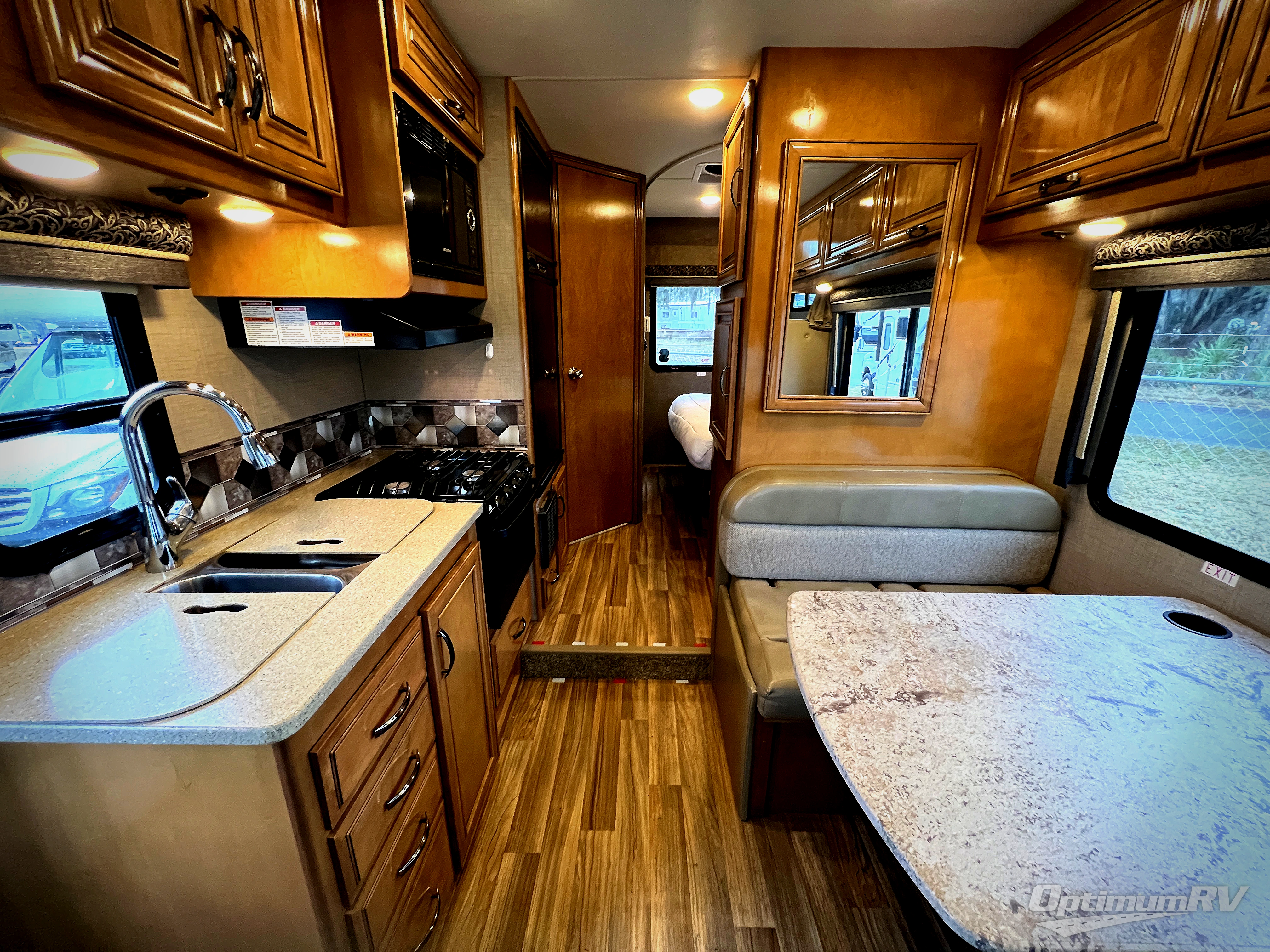 A rear bath, and rear side slide out queen bed are just a couple of the things that make this Thor Motor Coach Quantum class C gas motorhome unique providing sleeping space for 5, plus more!