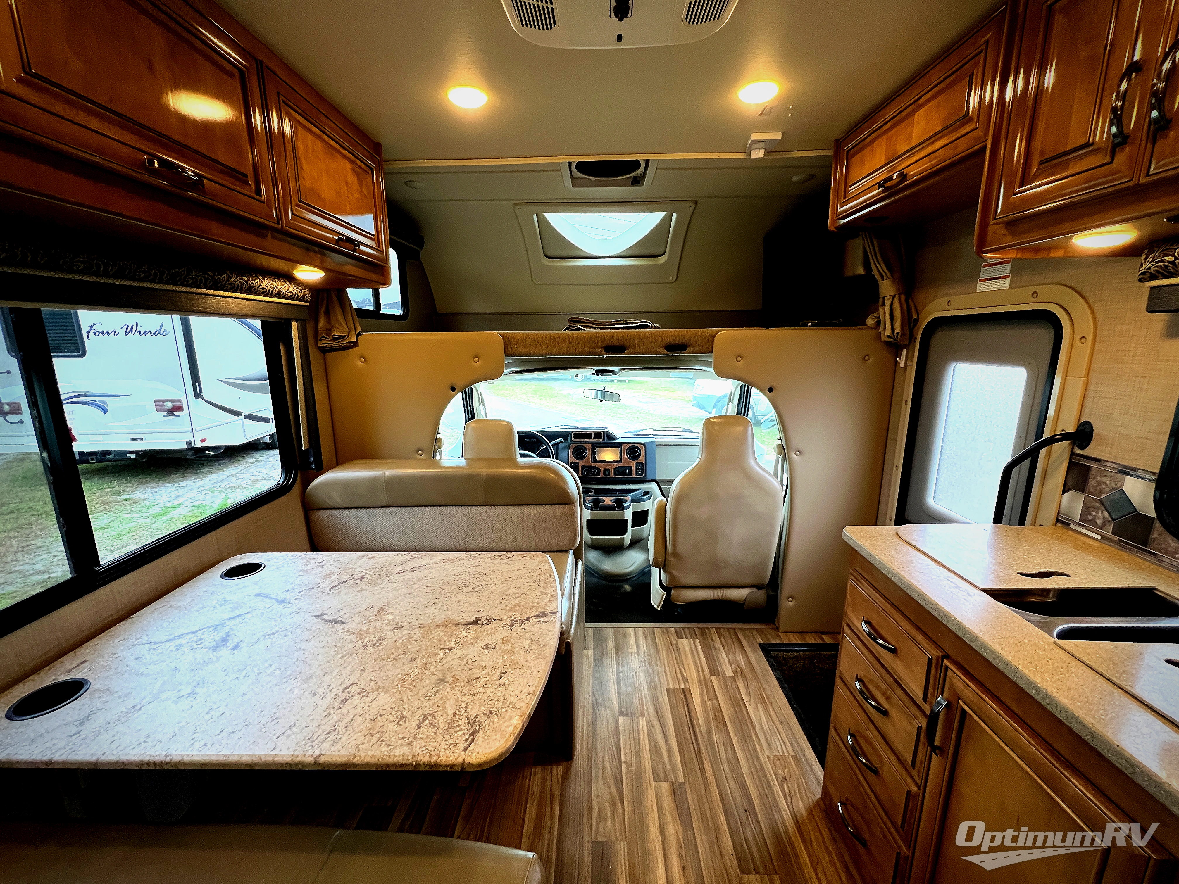 The cab-over bunk will be a favorite of the kids to sleep up top with 54" x 87" of sleeping space. There is also a 32" LED TV on a swivel base for perfect viewing from anywhere in the coach. The built-in skylight allows extra natural light inside that you are sure to enjoy.