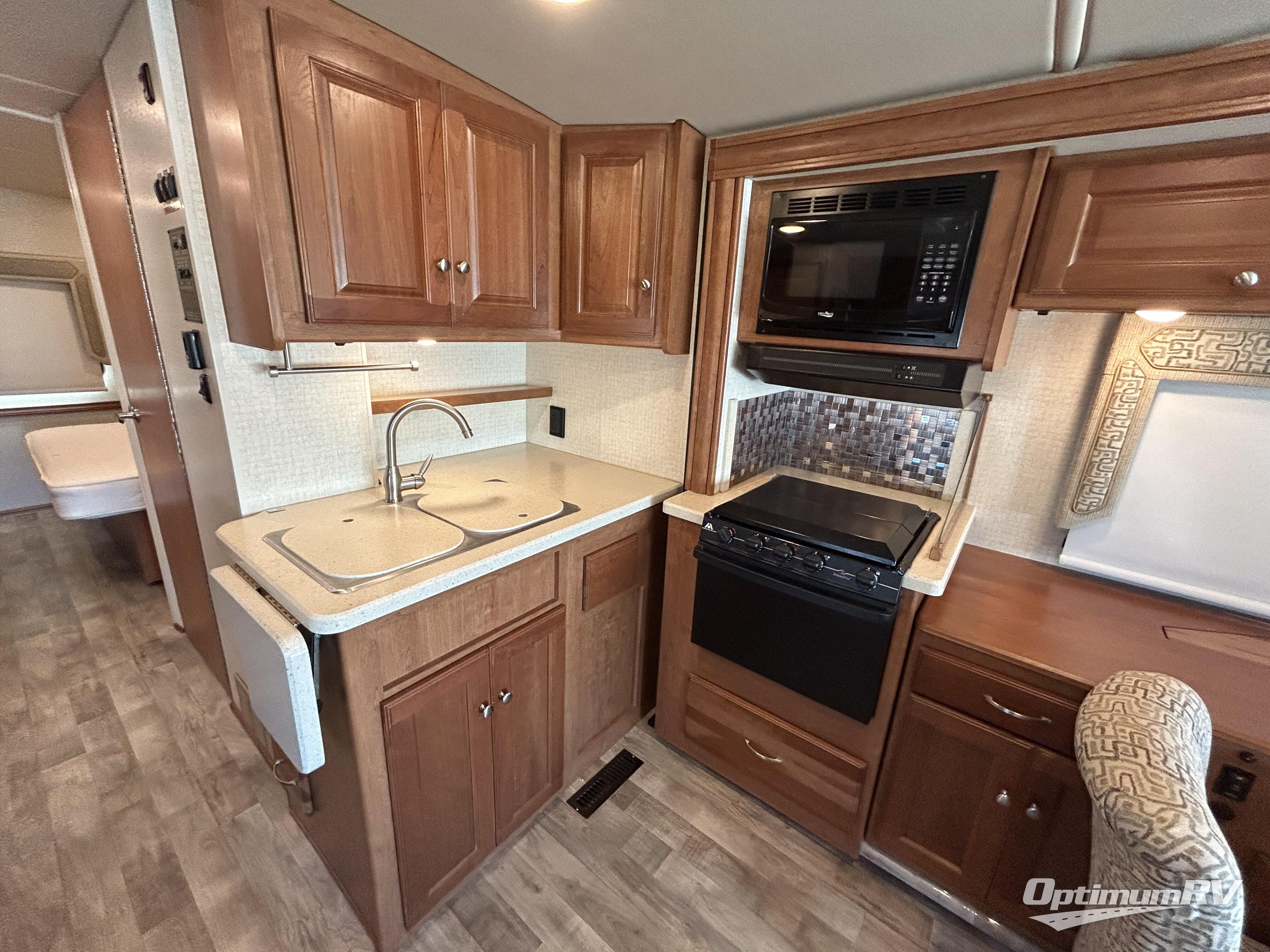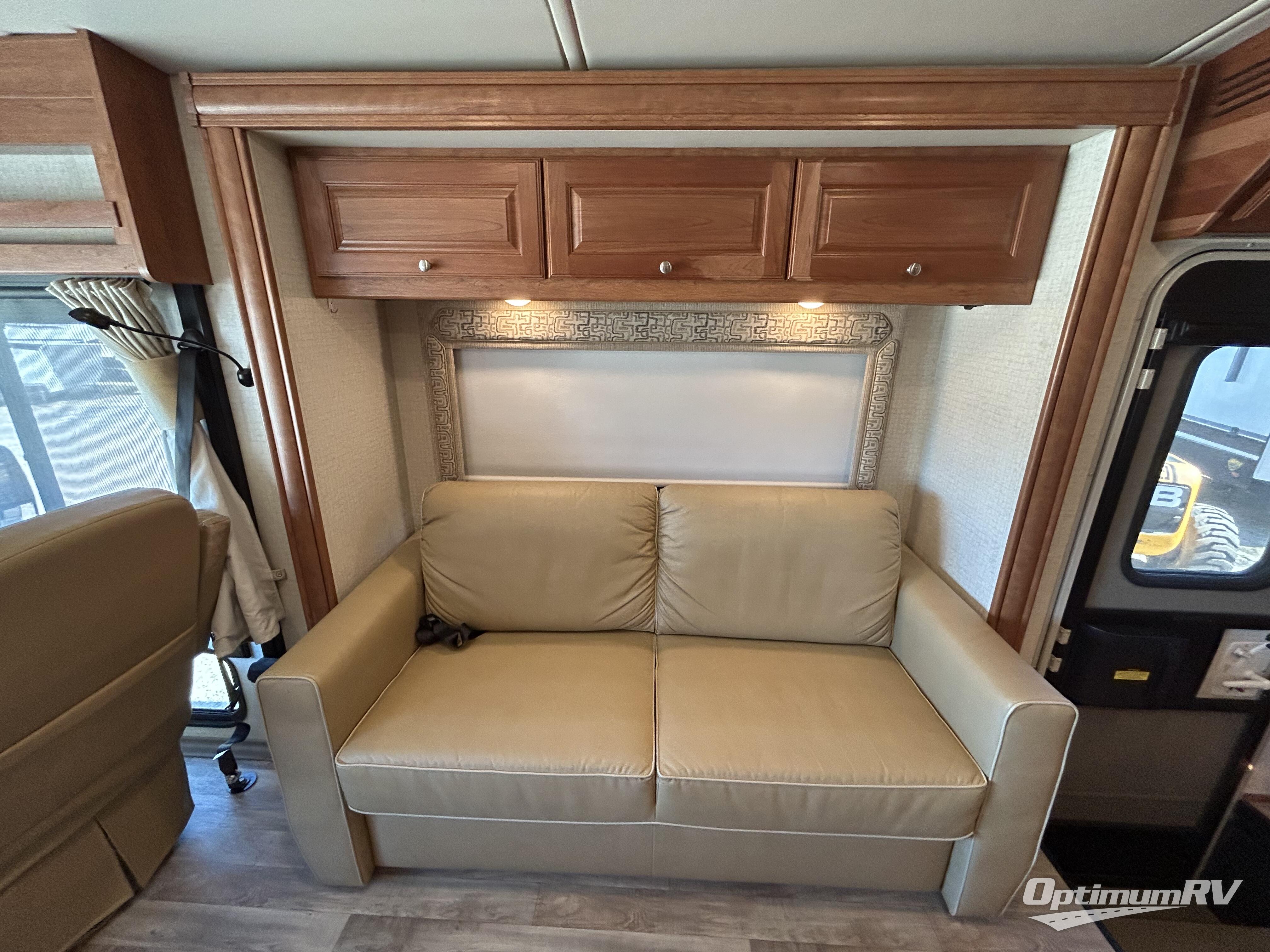 This class A coach features a wide open living area with dual opposing slides just behind the front cab seats that can swivel toward the rear for added seating. Plus there is an optional StudioLoft bed if you need additional sleeping space. The slide to the right of the side entry door features a 48" x 70" sofa bed, or you can choose the 58" x 74" TrueComfort+ sofa instead. On the opposite side there is a slide out three burner range, and a 42" x 74" booth dinette with seat belts. You can also select the optional dining table and chairs with buffet featuring a 32" retractable TV, or a BenchMark Dinette instead. The refrigerator is located to the left of the entry door, along with a pantry for all of your food storage needs. Adjacent to the dinette slide there is a double sink, plus overhead cabinets for all of your dishes and things.