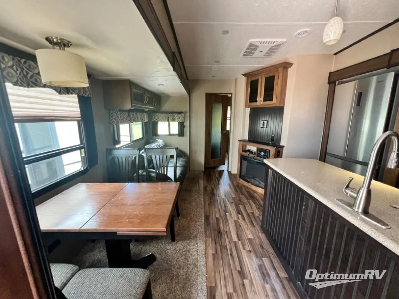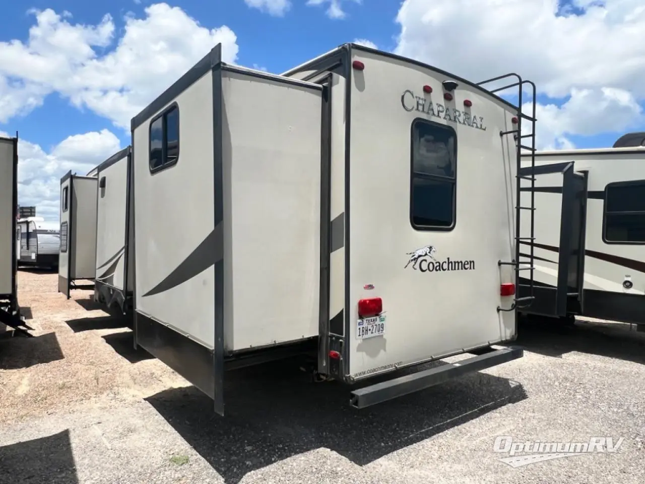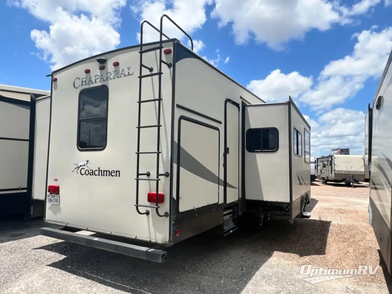 This Coachmen Chaparral model 371MBRB is sure to turn the heads at the camp ground and keep the friends over for a while! Sleeping for eleven, FIVE slides, three bedrooms, a bath and a half, and an outside kitchen are just a few of the highlights of this fifth wheel.