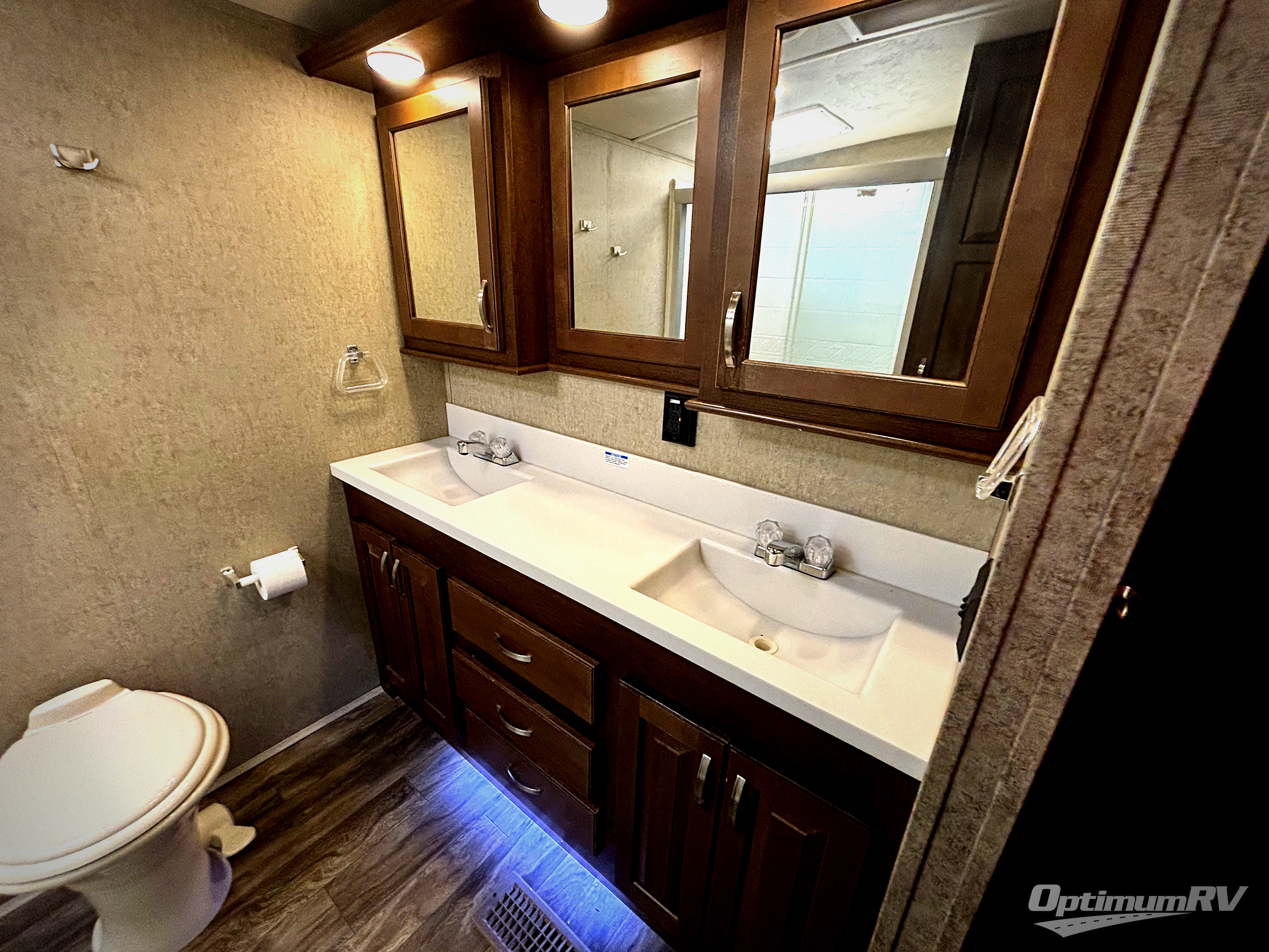 With any Forest River Cedar Creek Silverback Edition fifth wheel you will find cathedral slide rooms in the main and bedroom slides which help to open up the living space throughout each model. You will enjoy a good night’s rest of the Serta residential mattress plus the deluxe blackout roller shades add the privacy you desire. The kitchen is everything that you would expect to find and more from the recessed stove top with glass cover and front, full panel backsplash, to the stainless steel under-mounted sink, you won’t be disappointed! The 36" electric fireplace, Congoleum Designer Carefree plank flooring and Shaw carpeting are just a few of the other comforts you will find throughout each model and more!